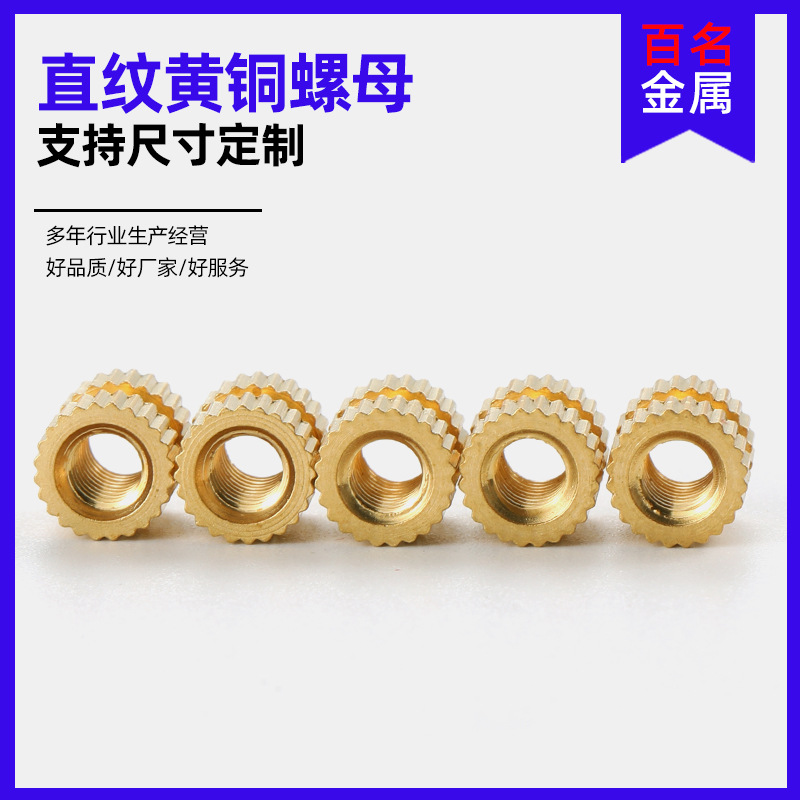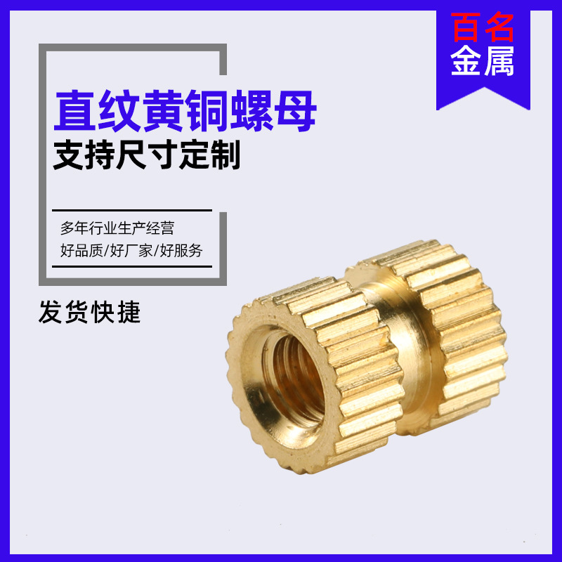 预埋铜螺母 厂家直销 直纹滚花铜螺母 注塑嵌件注塑铜螺母 铜螺丝