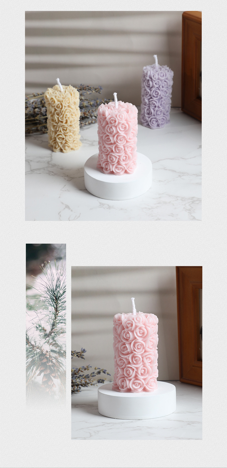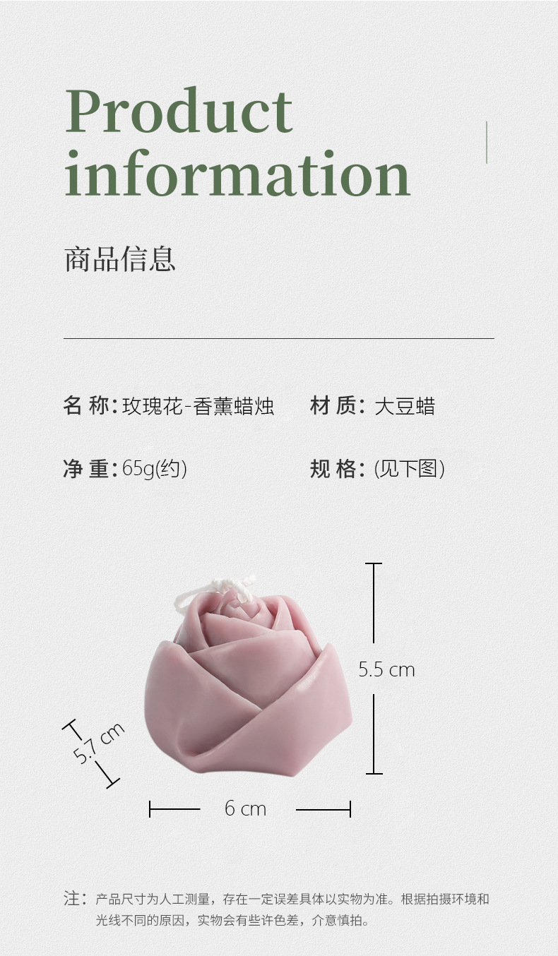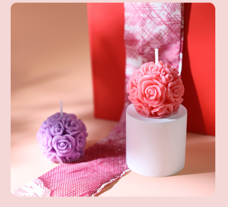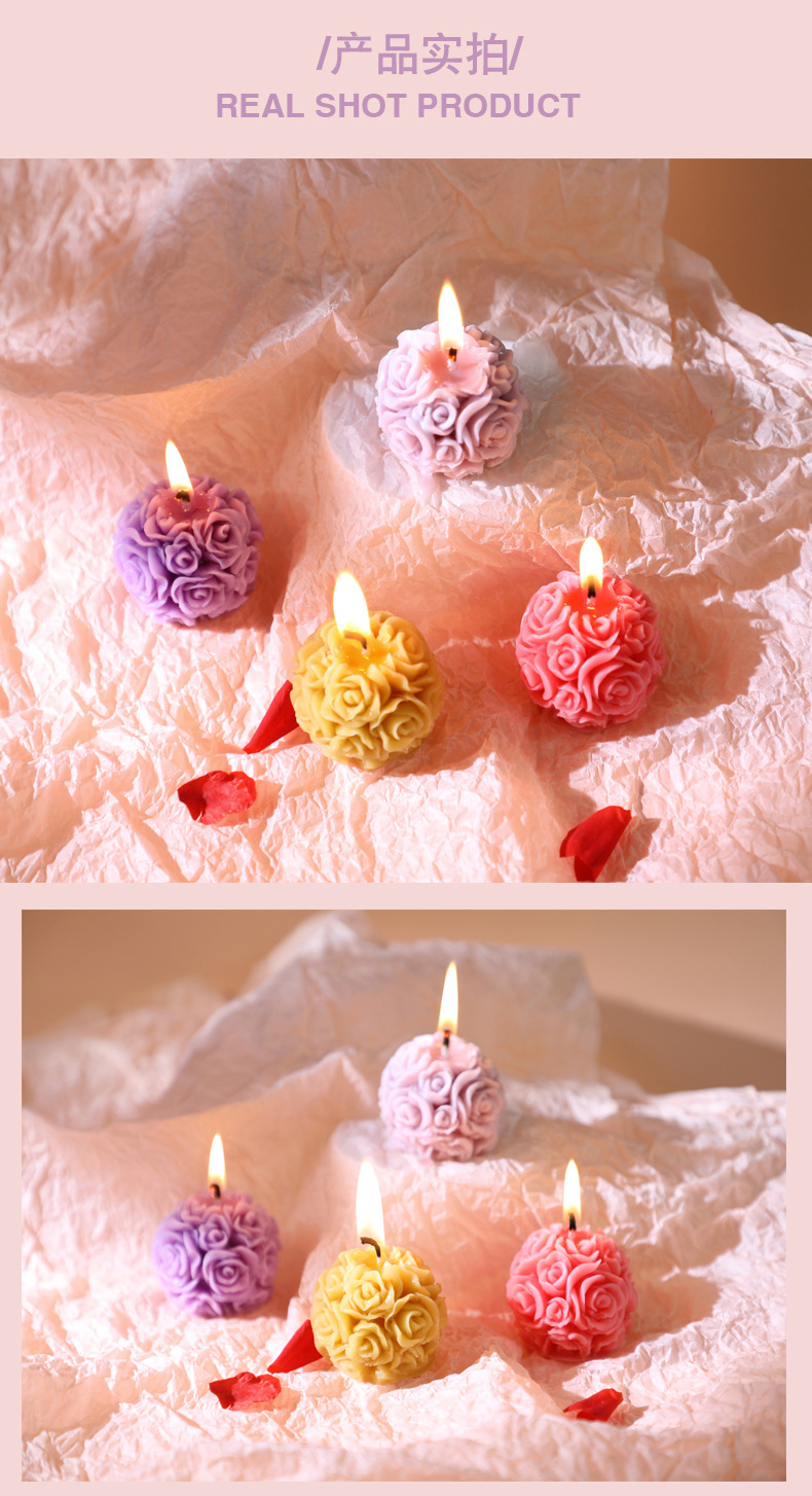 跨境手工玫瑰花柱香薰蜡烛雕花造型香氛无烟烛台摆件生日腊烛礼品
