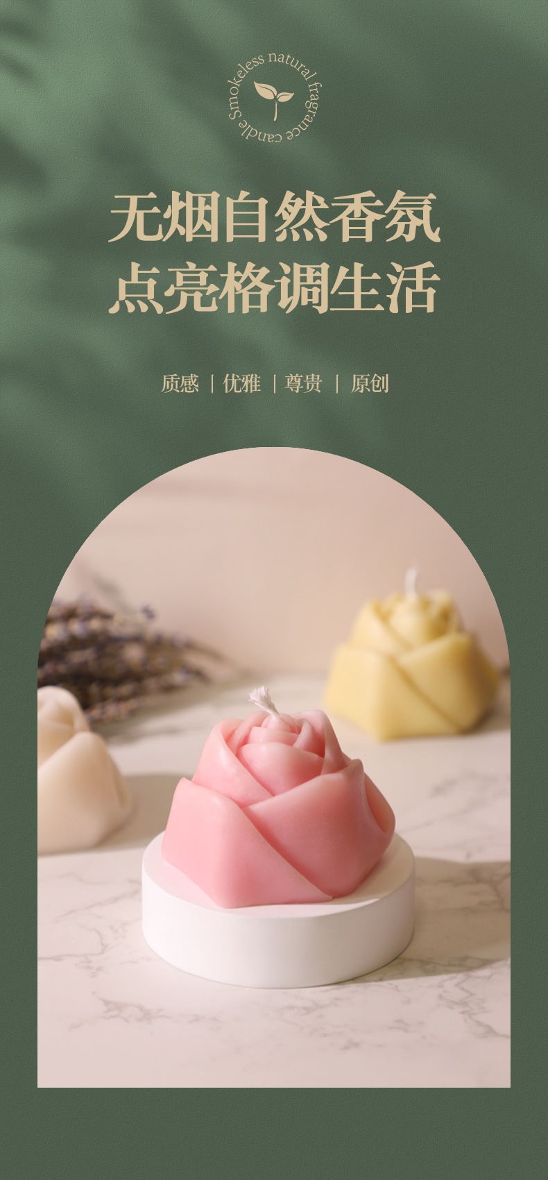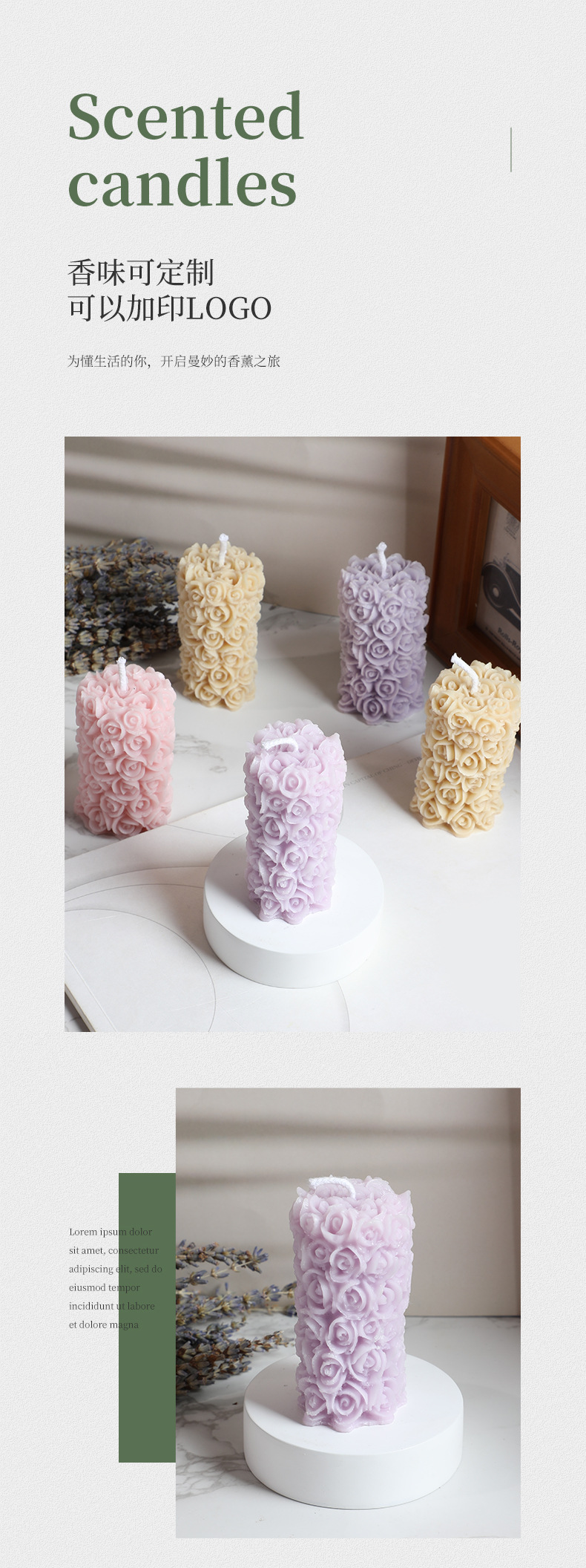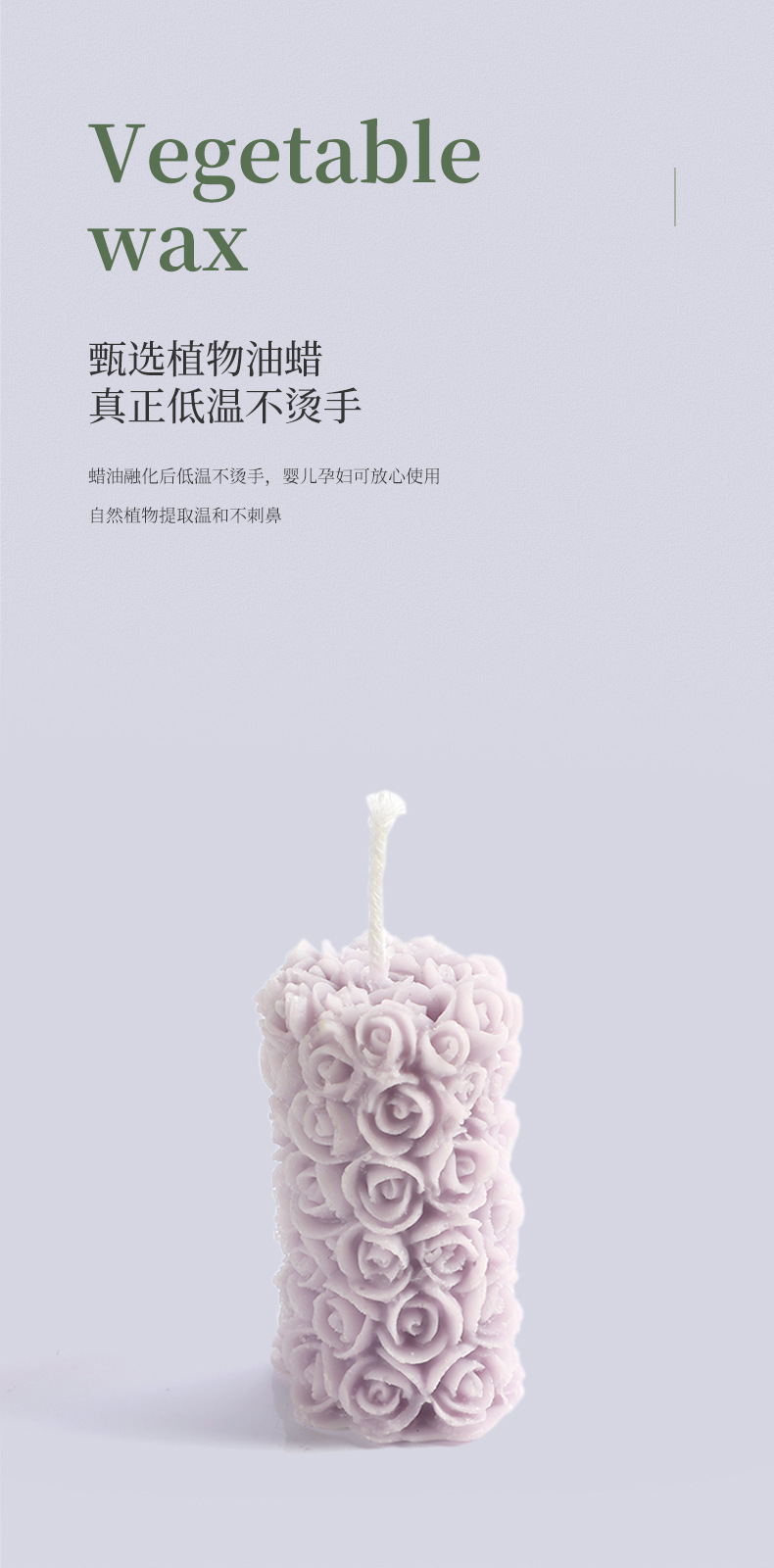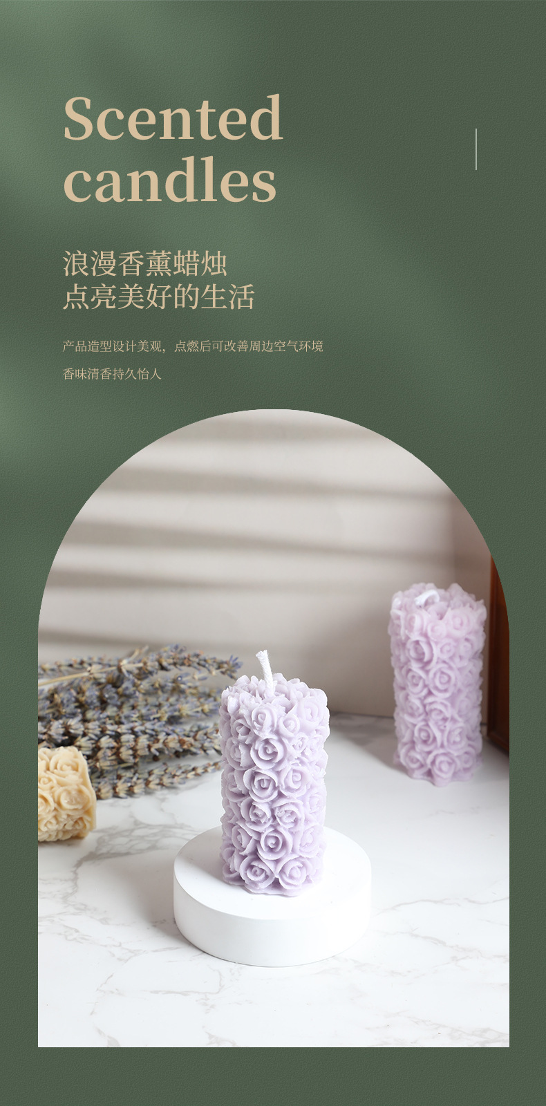 跨境手工玫瑰花柱香薰蜡烛雕花造型香氛无烟烛台摆件生日腊烛礼品
