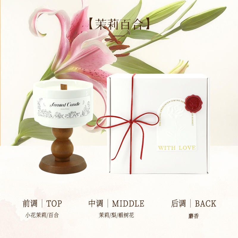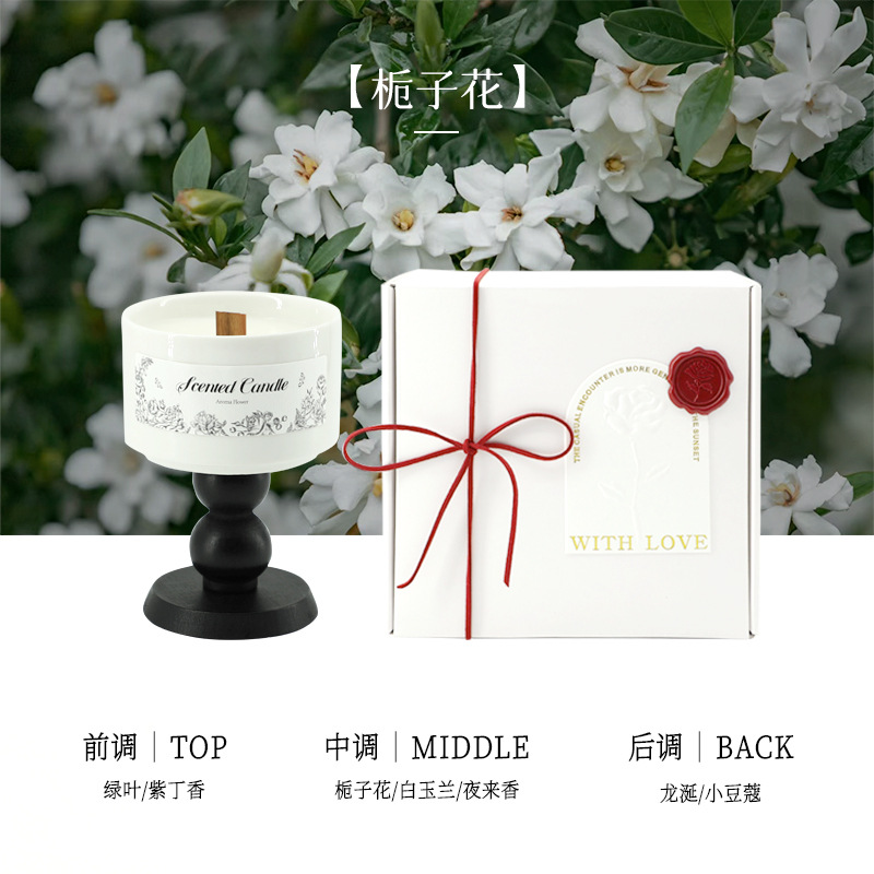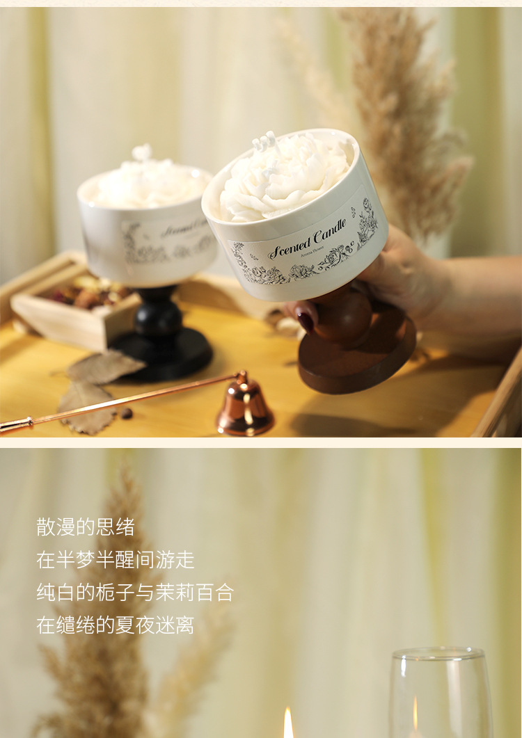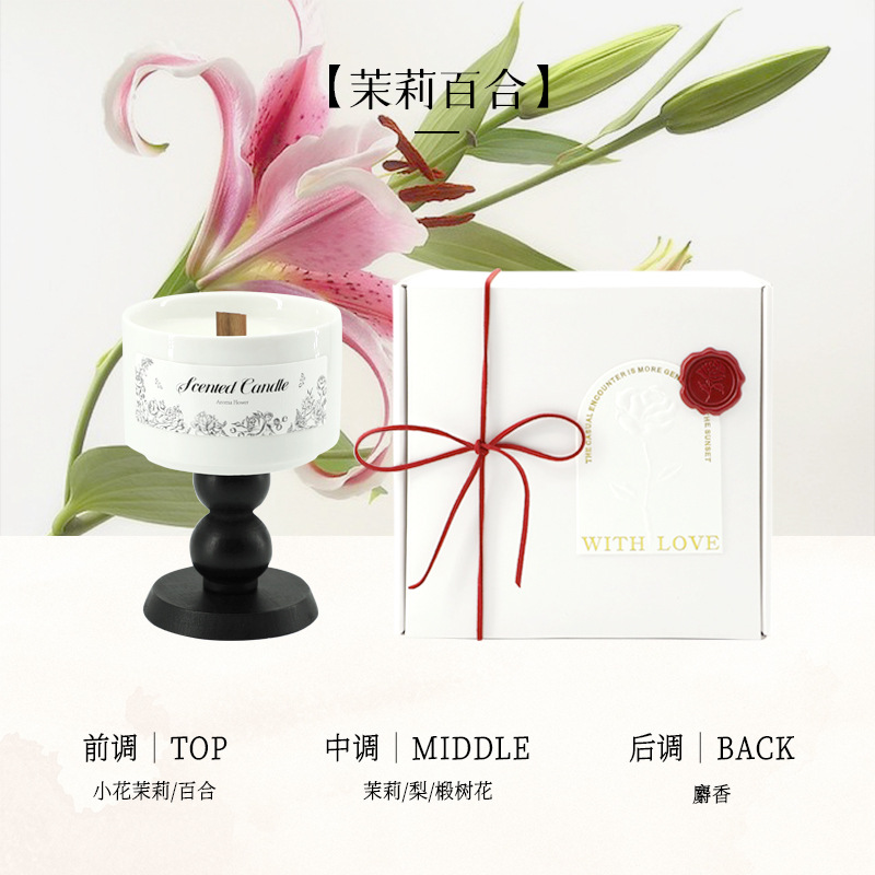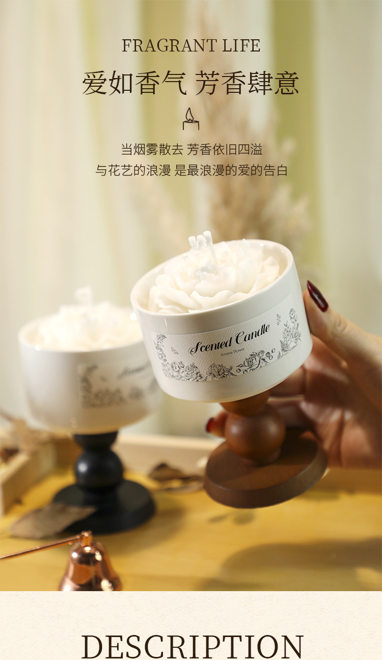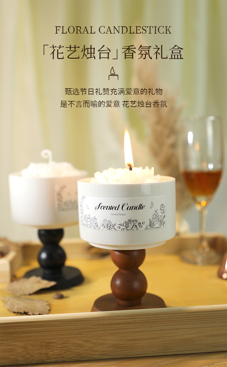 山茶花造型香薰蜡烛礼盒创意陶瓷烛台手工罐装香氛高级感女生礼物