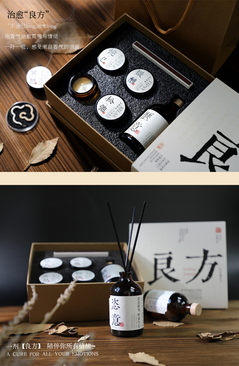 良方香薰蜡烛礼盒套装中式复古风礼品耐烧茶蜡香氛伴手礼女生礼物