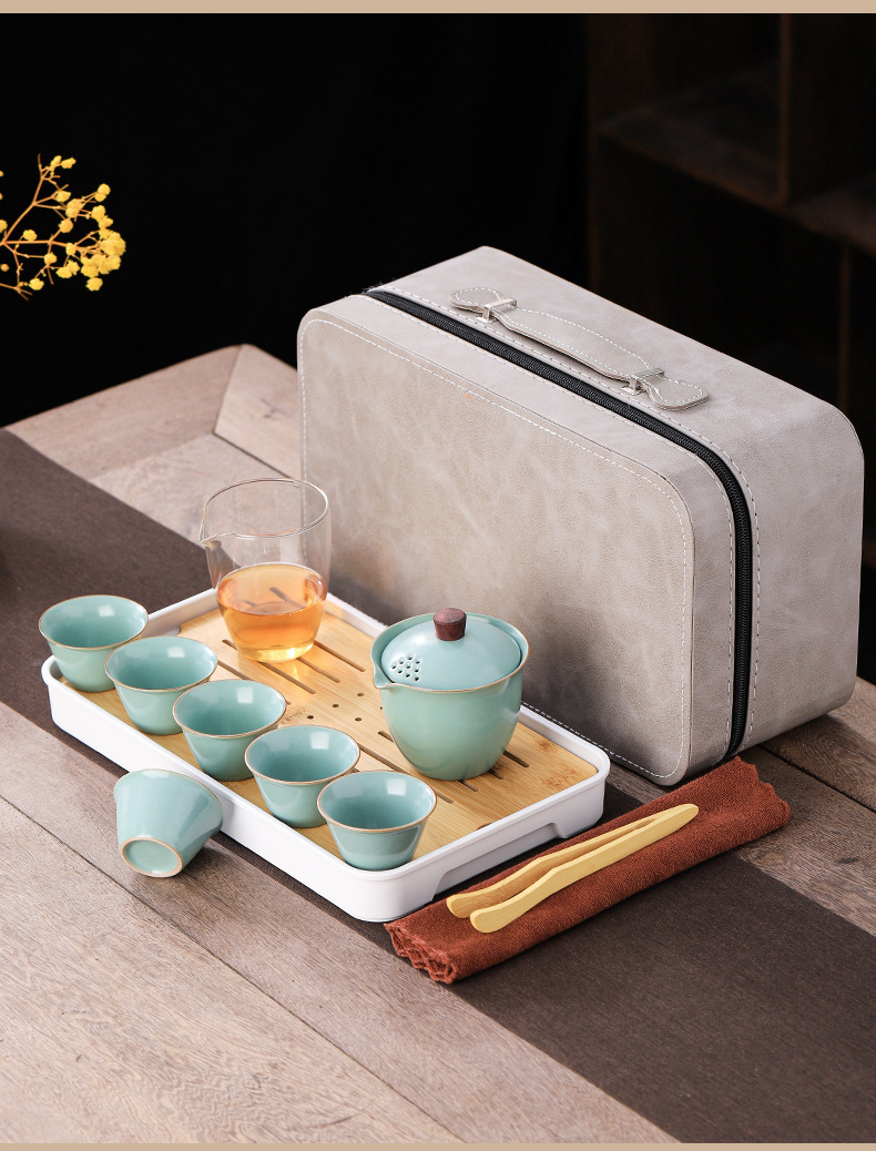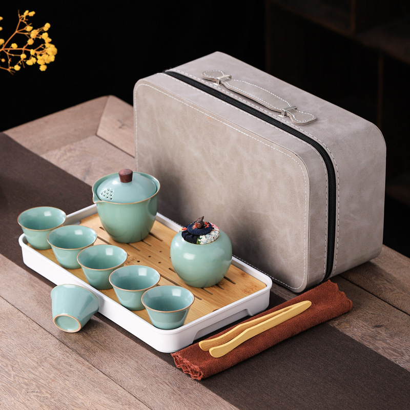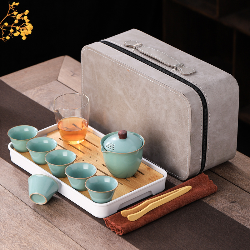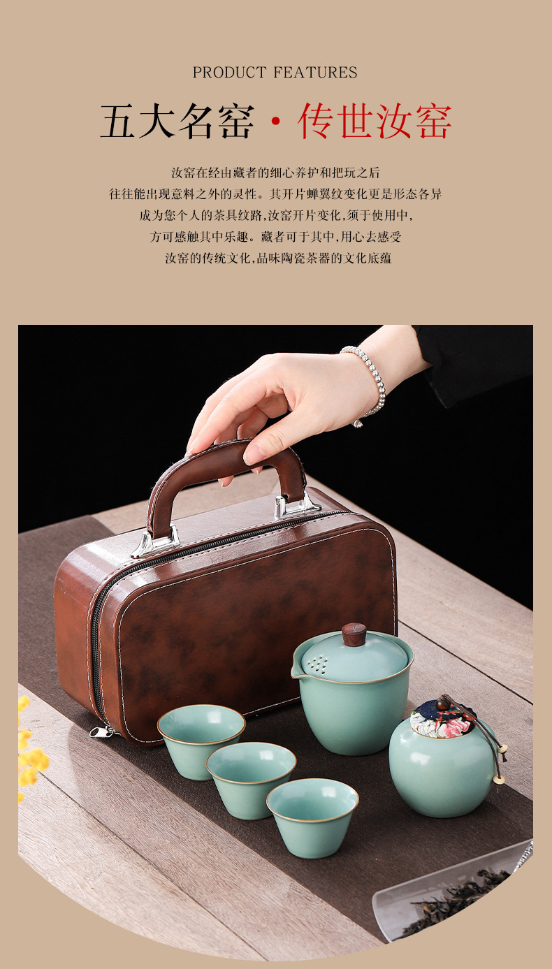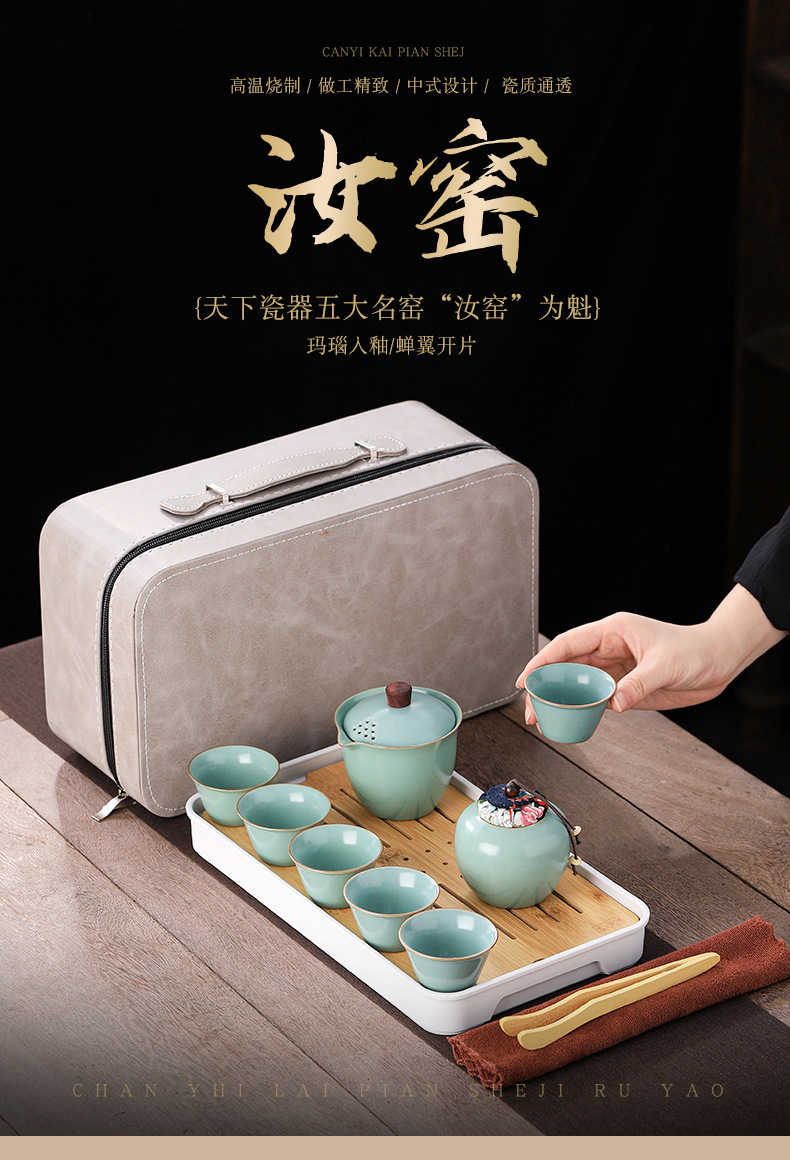 汝窑旅行茶具套装快客杯户外便携式功夫茶具套装商务伴手礼品小套