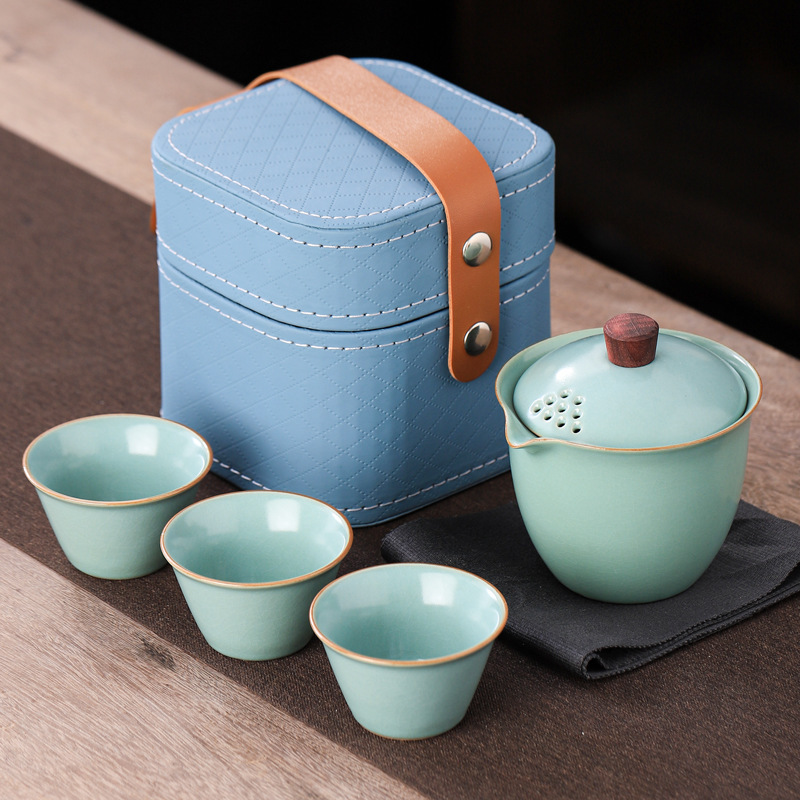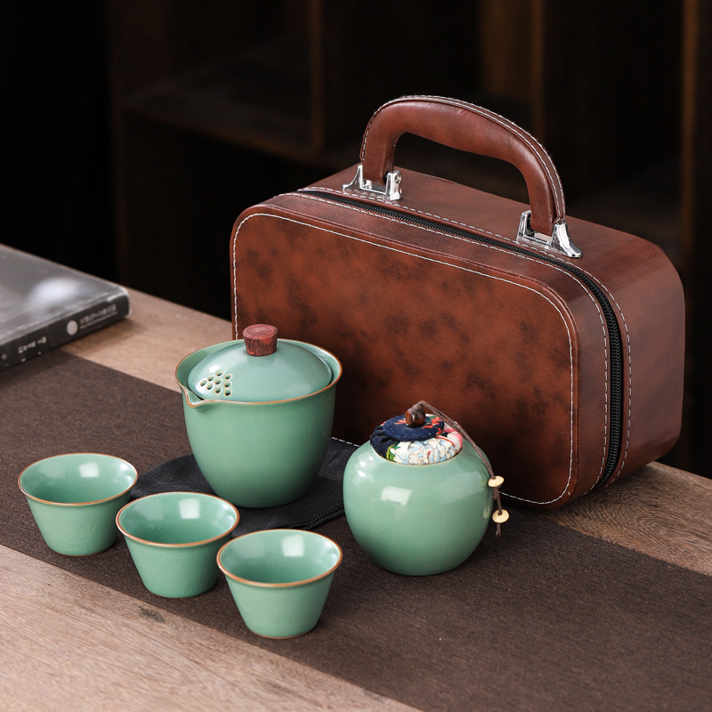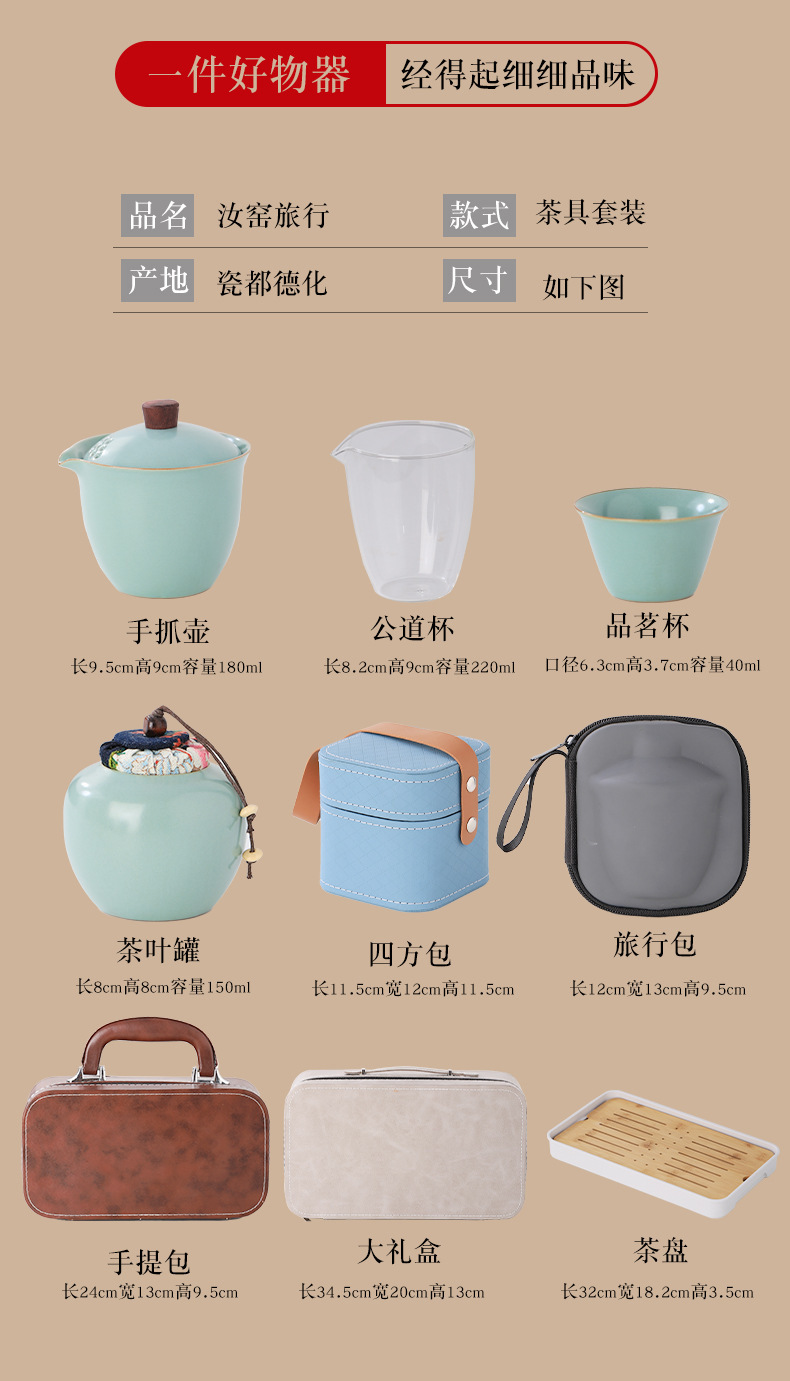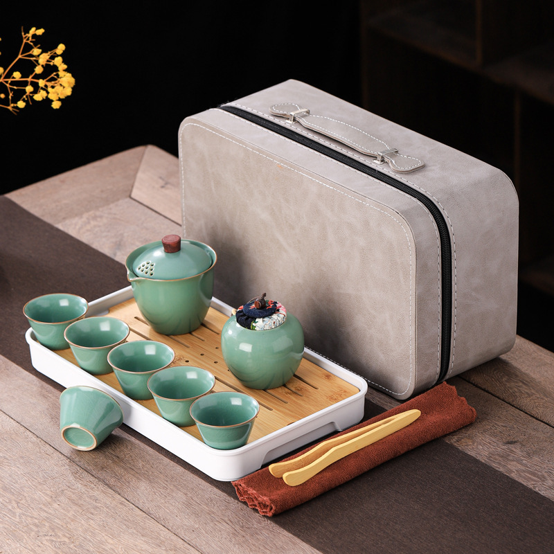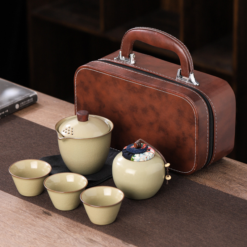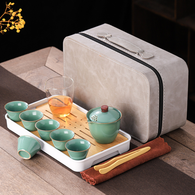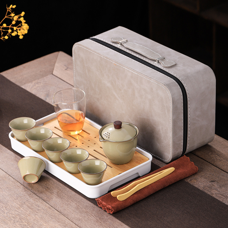 汝窑旅行茶具套装快客杯户外便携式功夫茶具套装商务伴手礼品小套