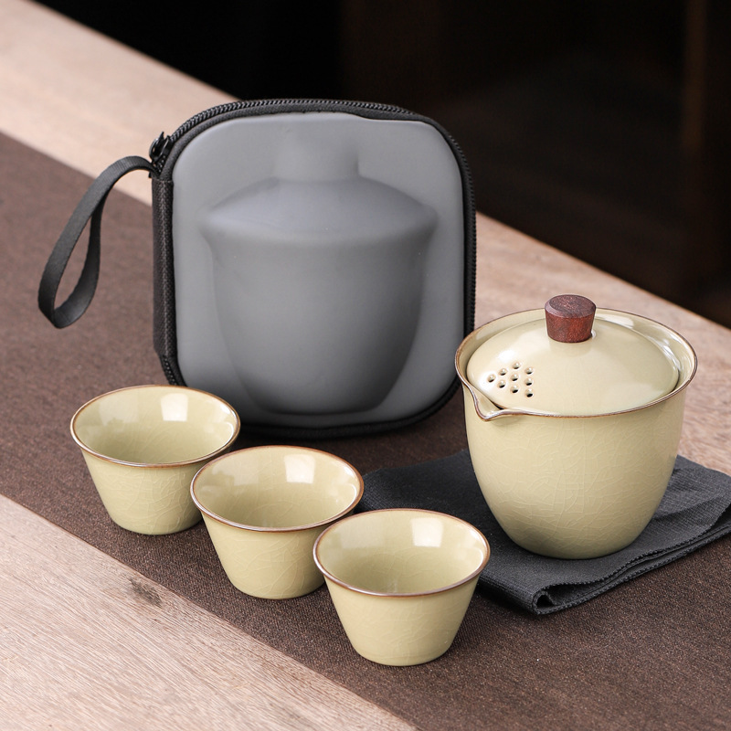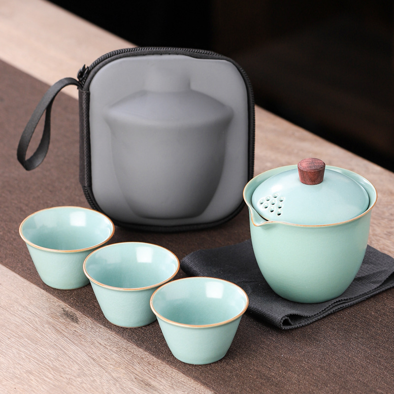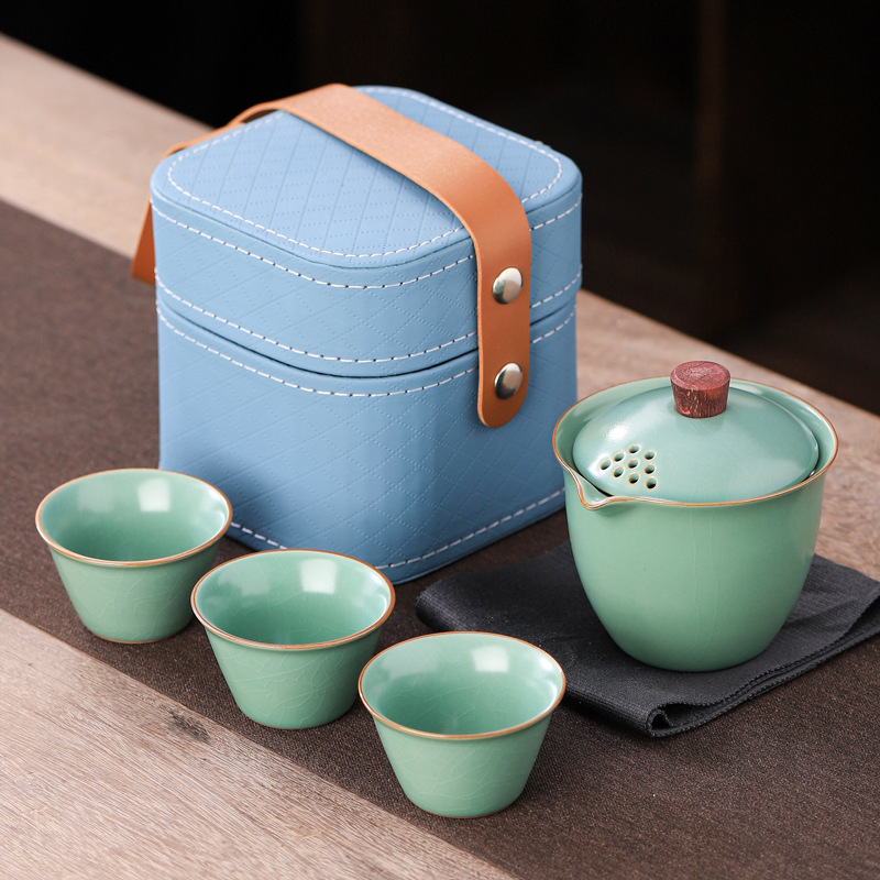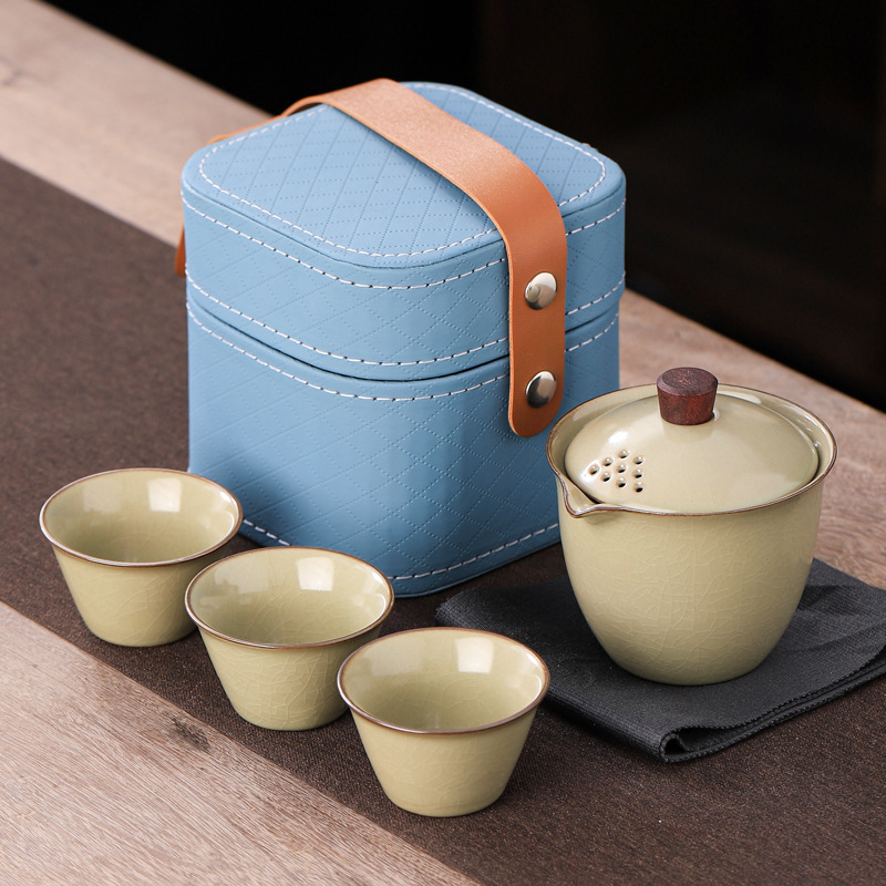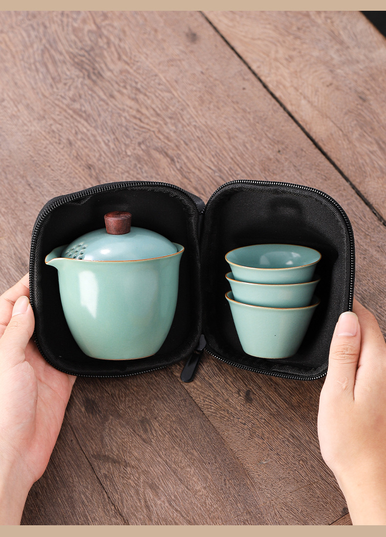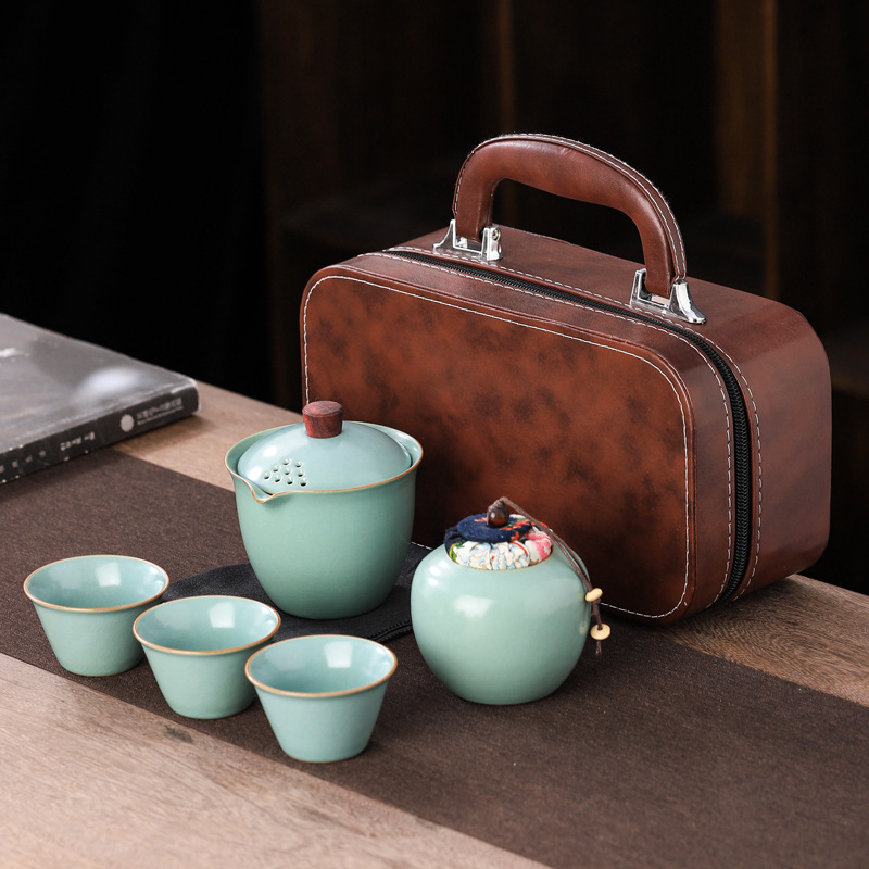 汝窑旅行茶具套装快客杯户外便携式功夫茶具套装商务伴手礼品小套