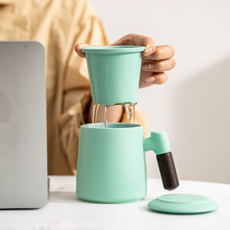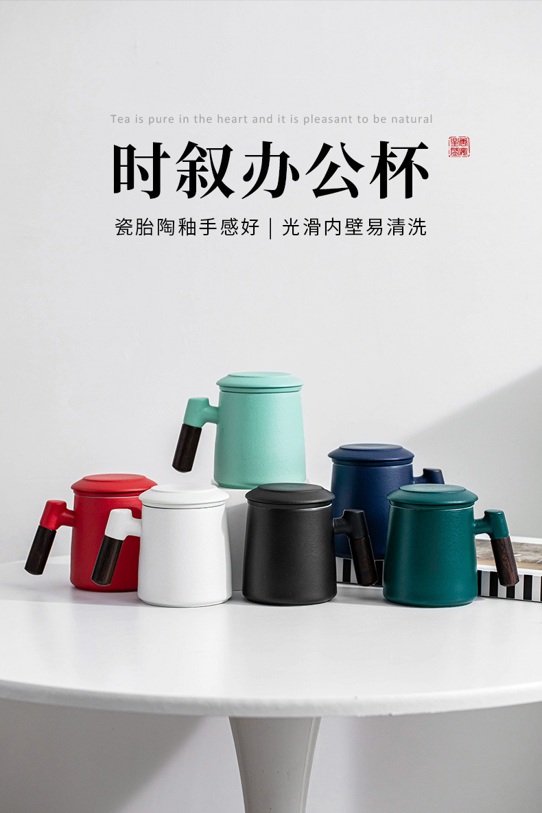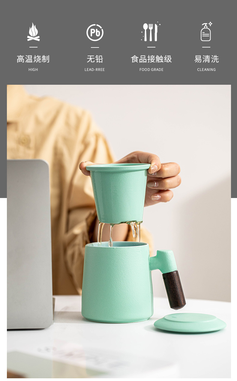茶杯陶瓷杯子茶水分离杯过滤泡茶杯办公马克杯带盖学校庆定制logo