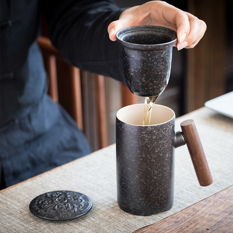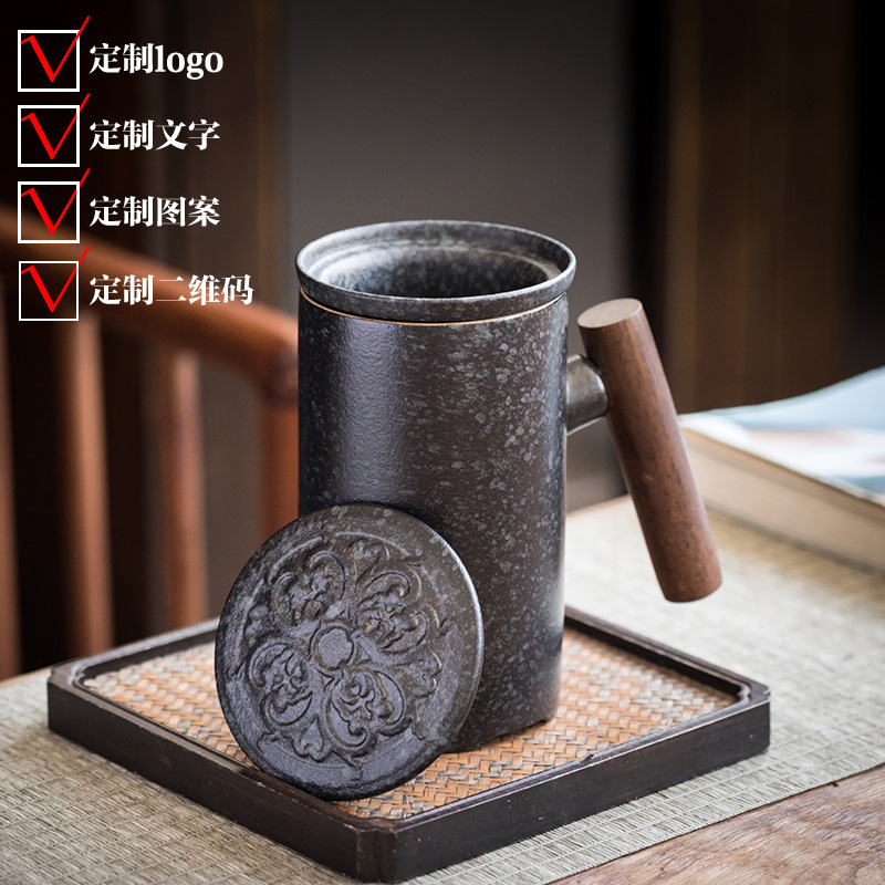茶杯陶瓷杯子茶水分离杯过滤泡茶杯办公马克杯带盖学校庆定制logo