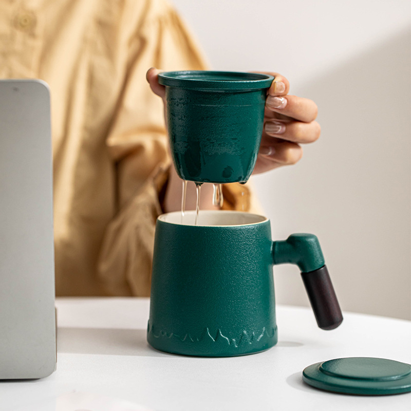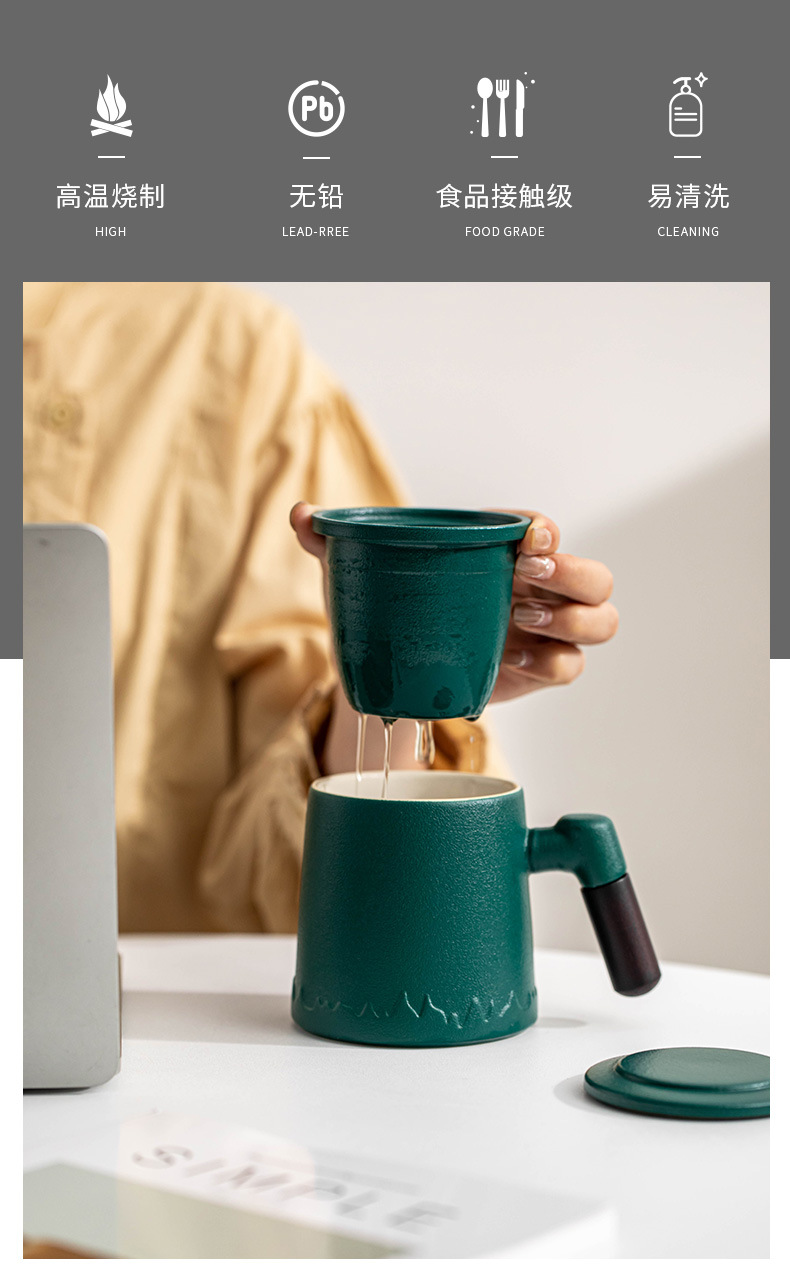 茶杯陶瓷杯子茶水分离杯过滤泡茶杯办公马克杯带盖学校庆定制logo
