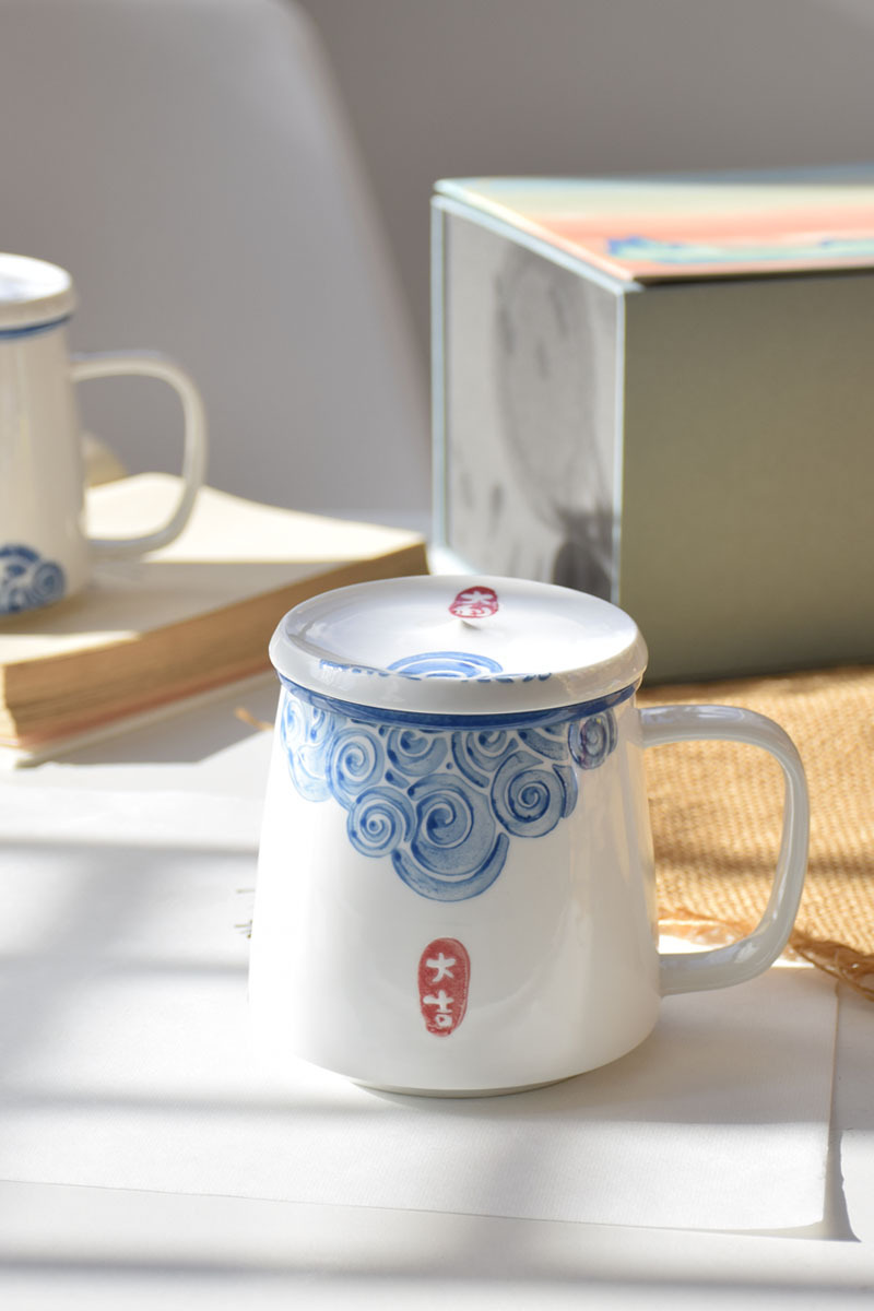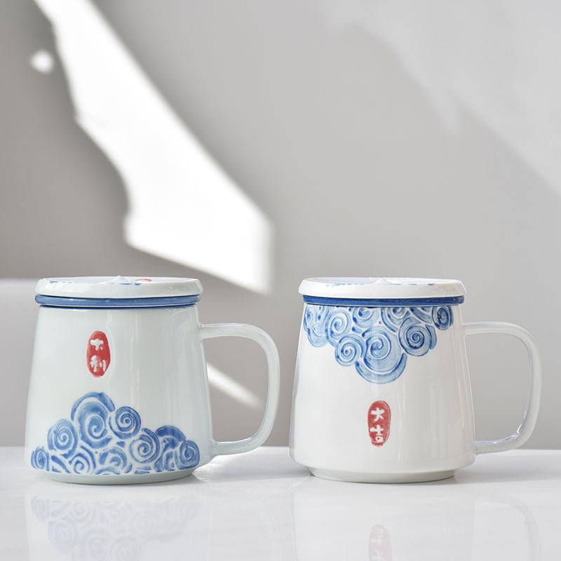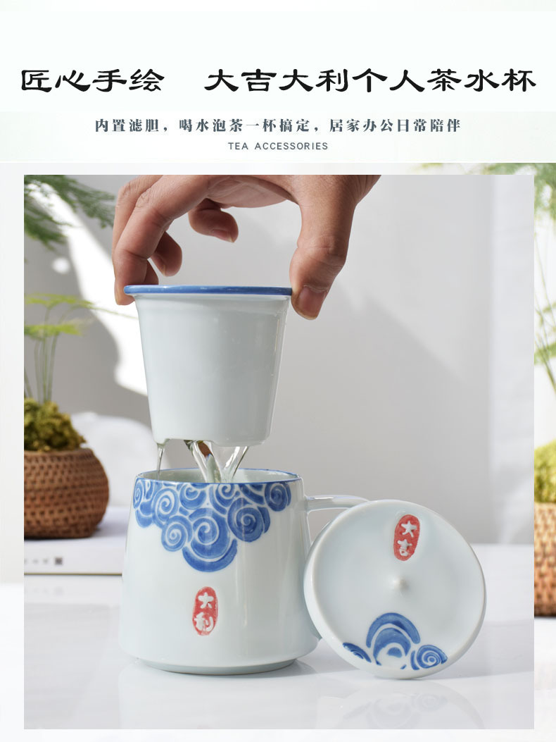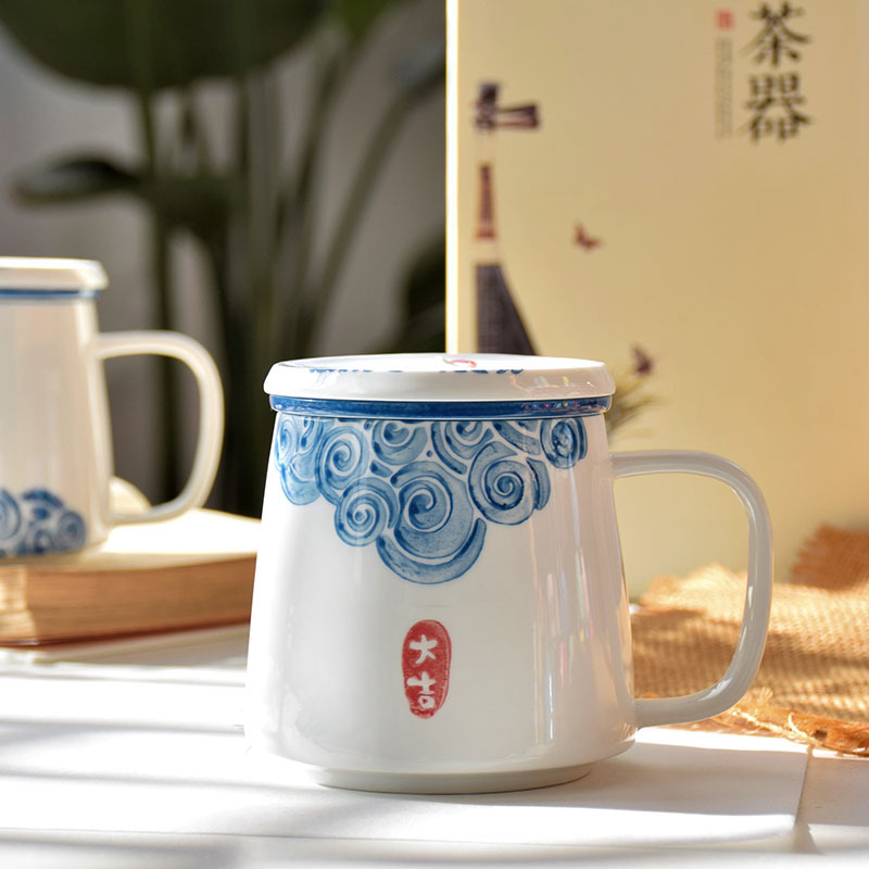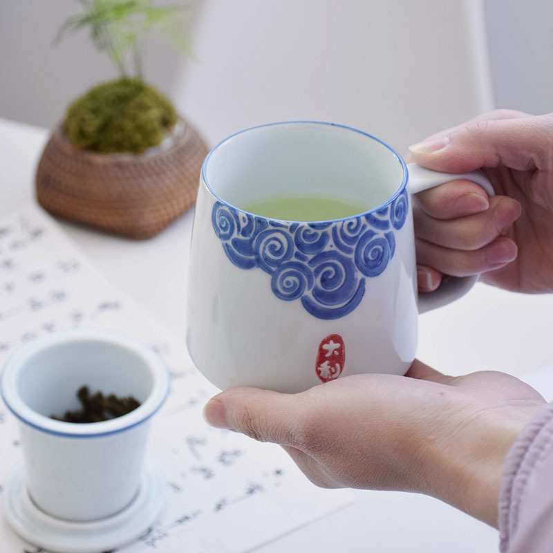 茶杯陶瓷杯子茶水分离杯过滤泡茶杯办公杯手绘批发logo定制伴手礼