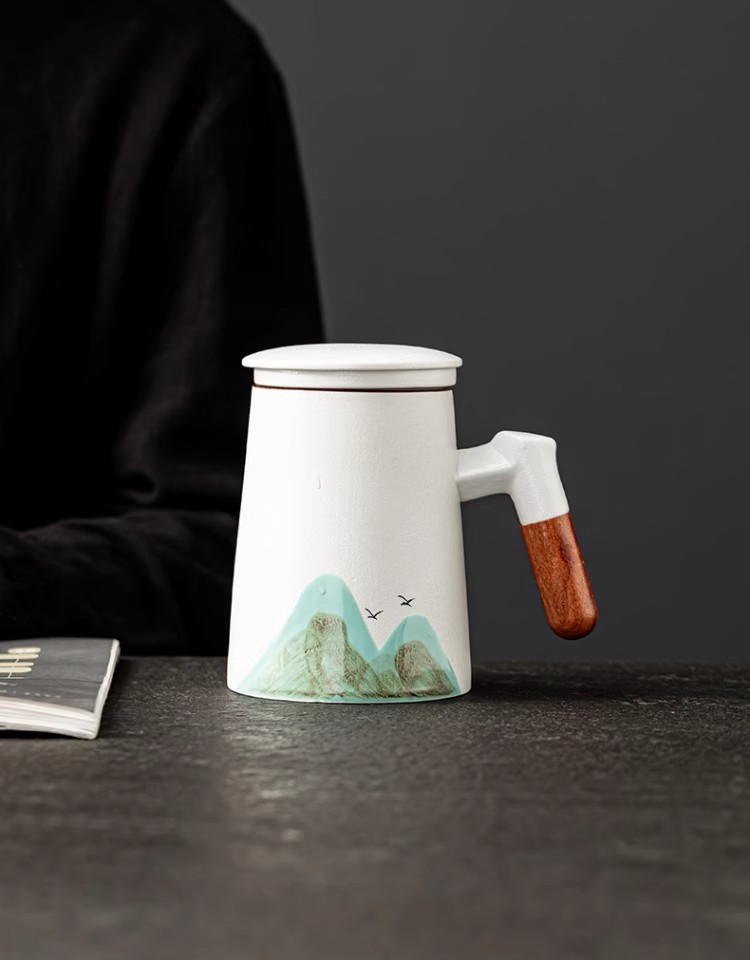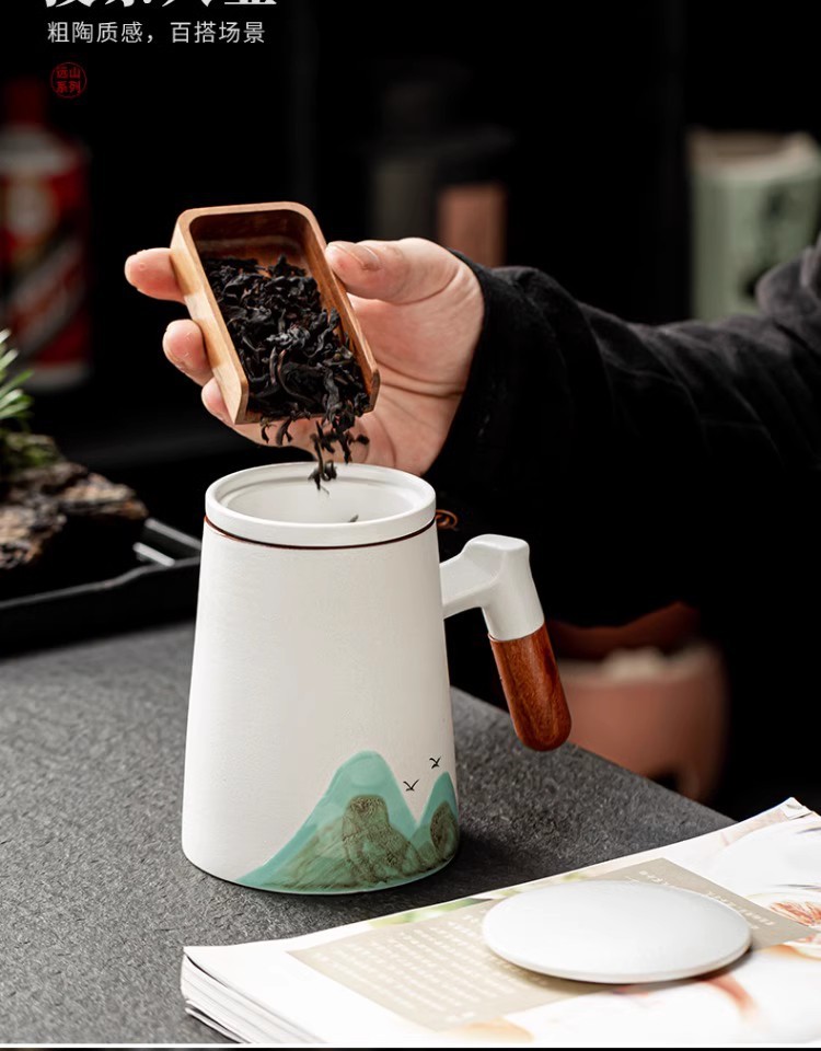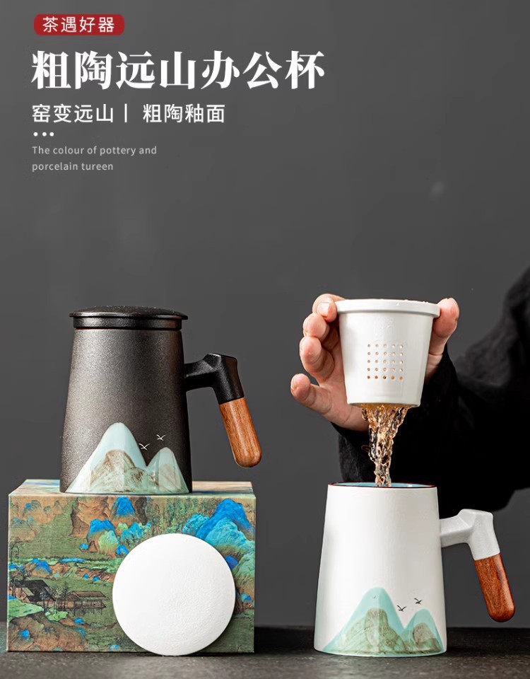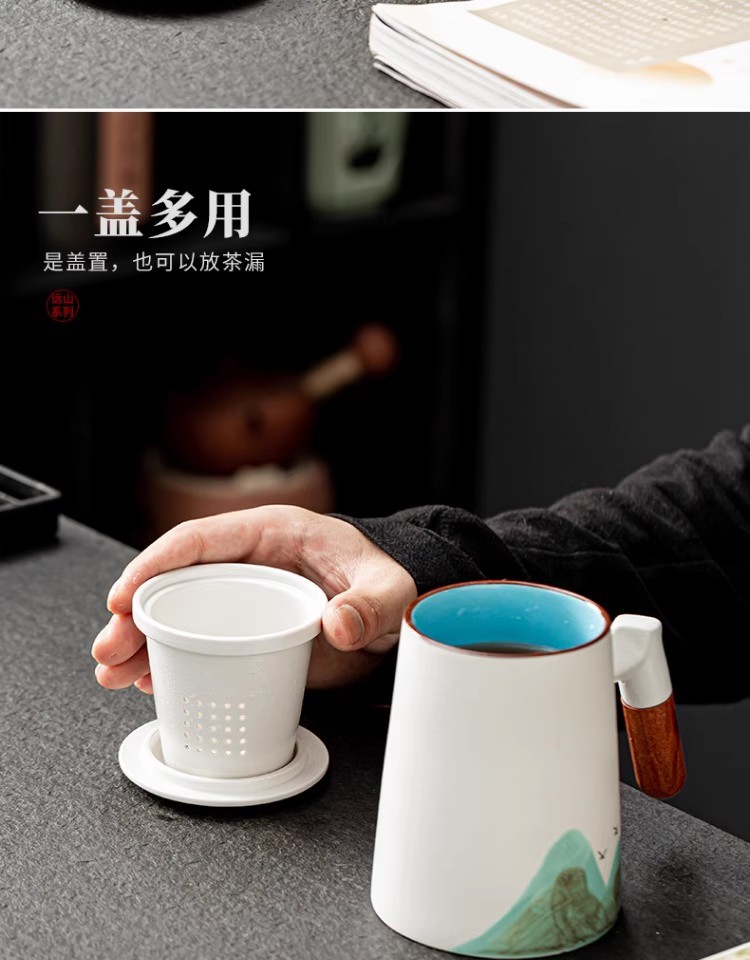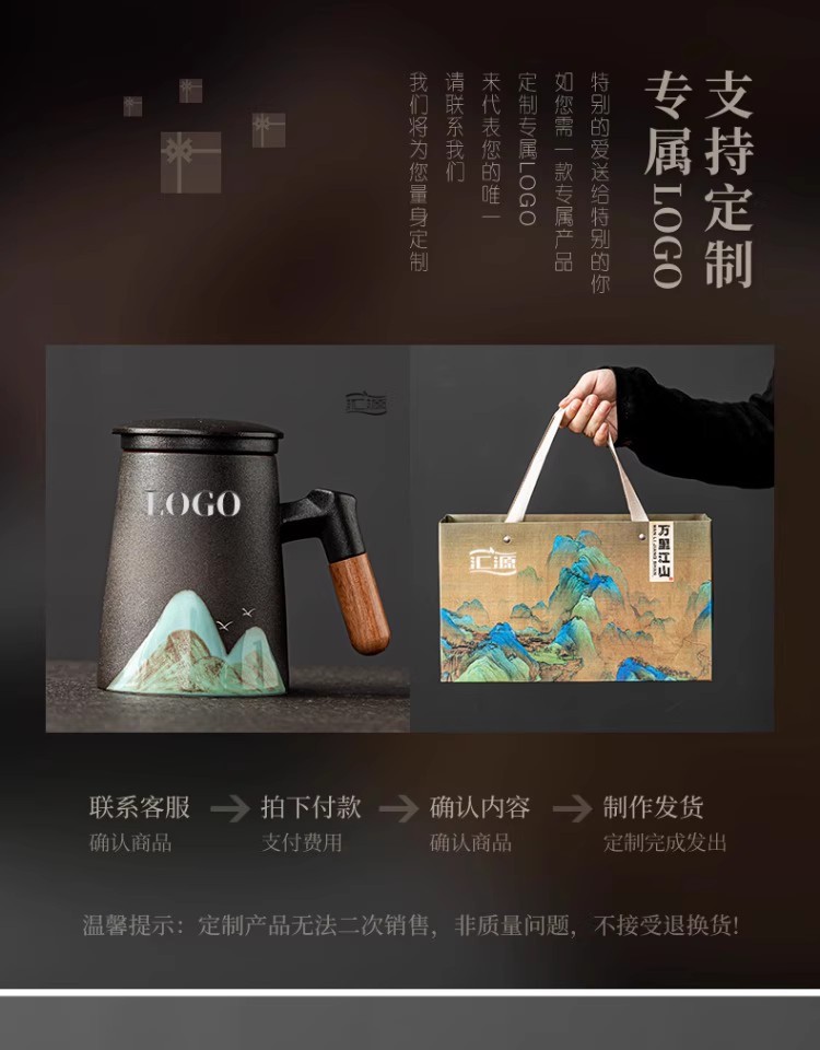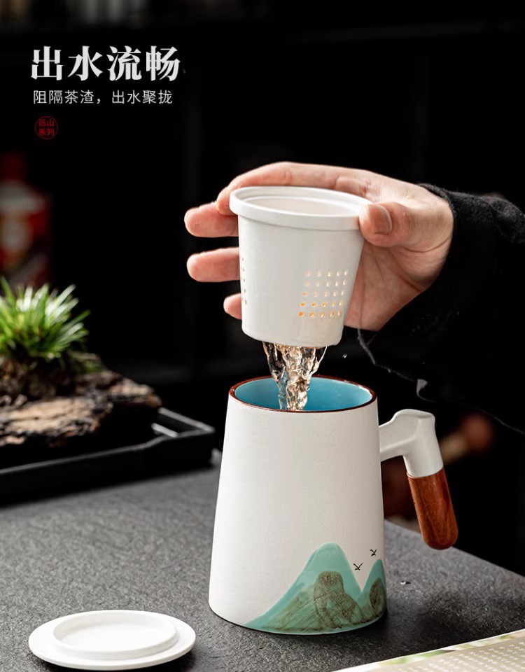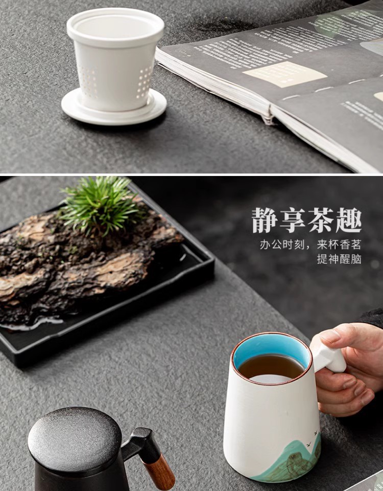 茶杯陶瓷杯子茶水分离杯过滤泡茶杯办公马克杯带盖学校庆定制logo