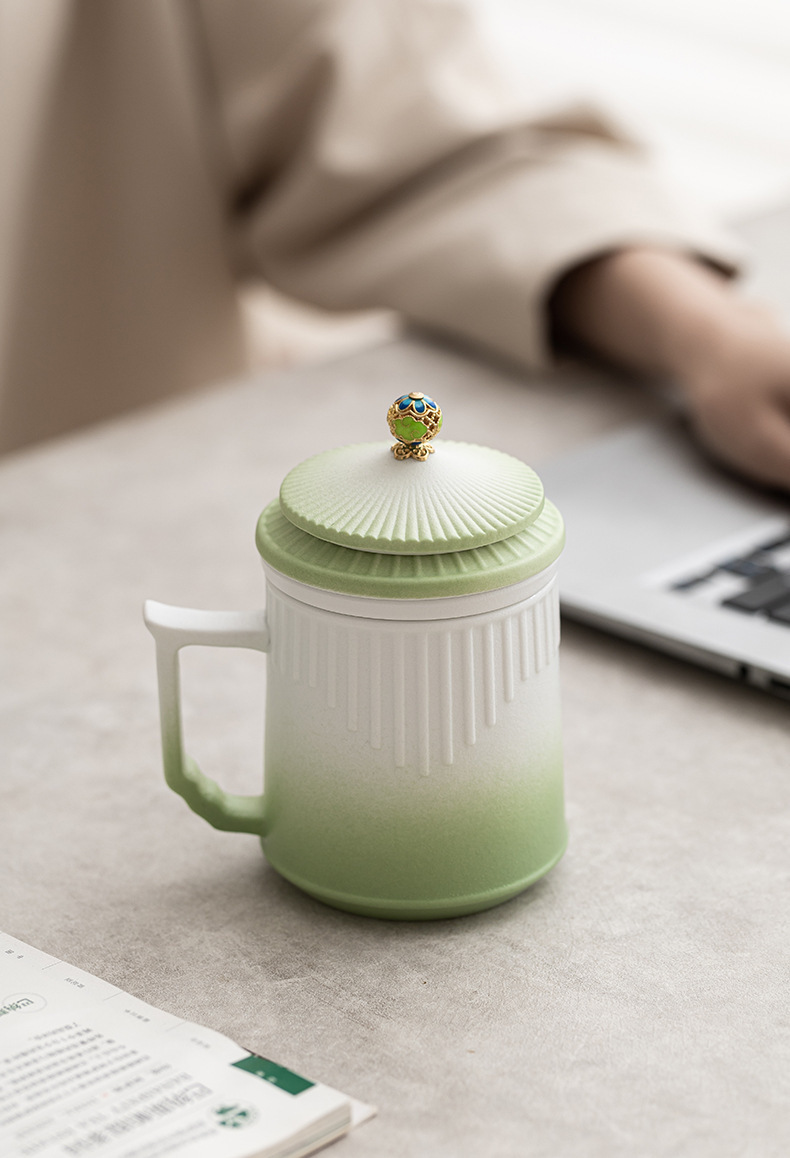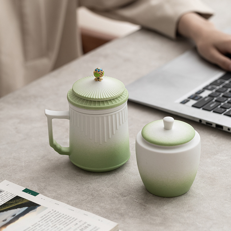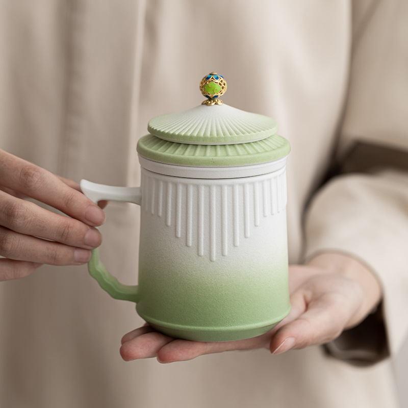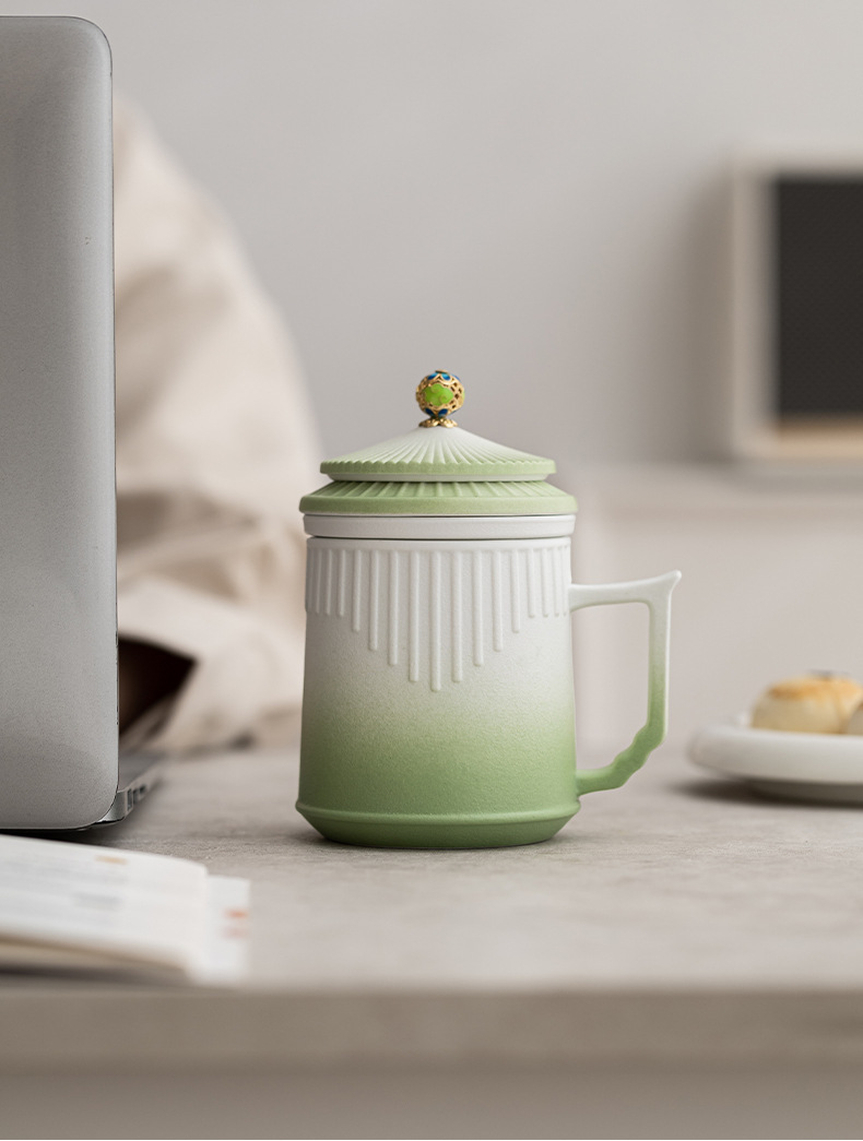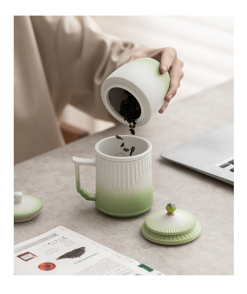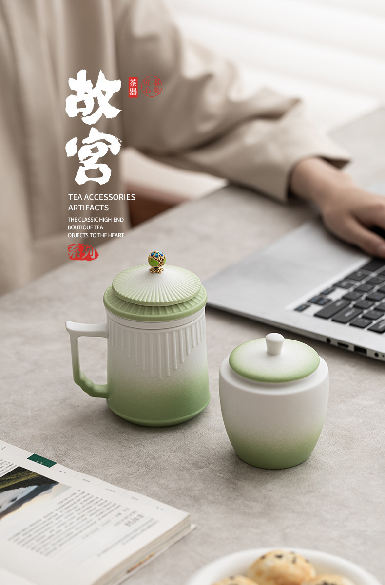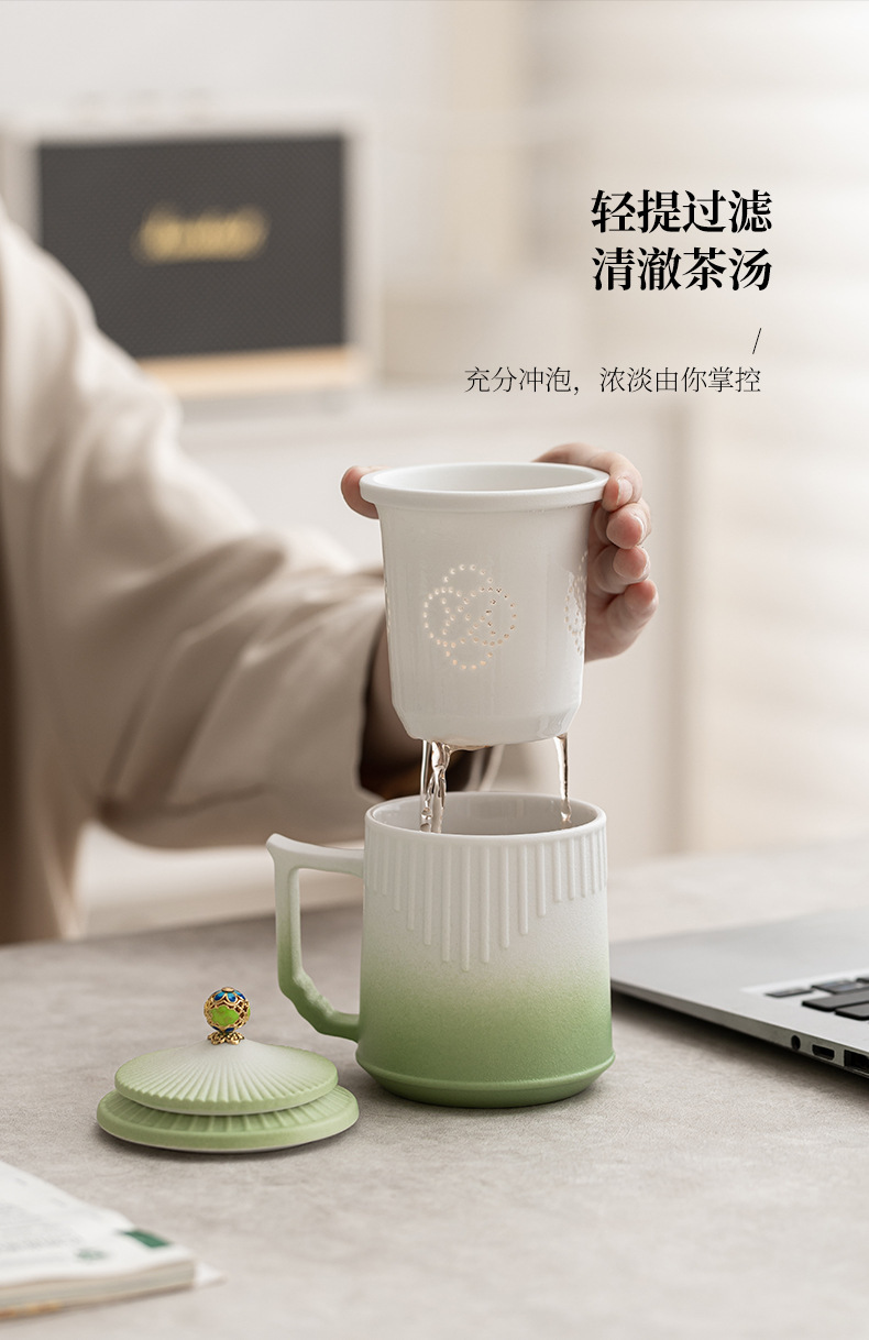 泡茶杯陶瓷杯子马克杯带盖茶水分离杯过滤故宫文创办公定制logo