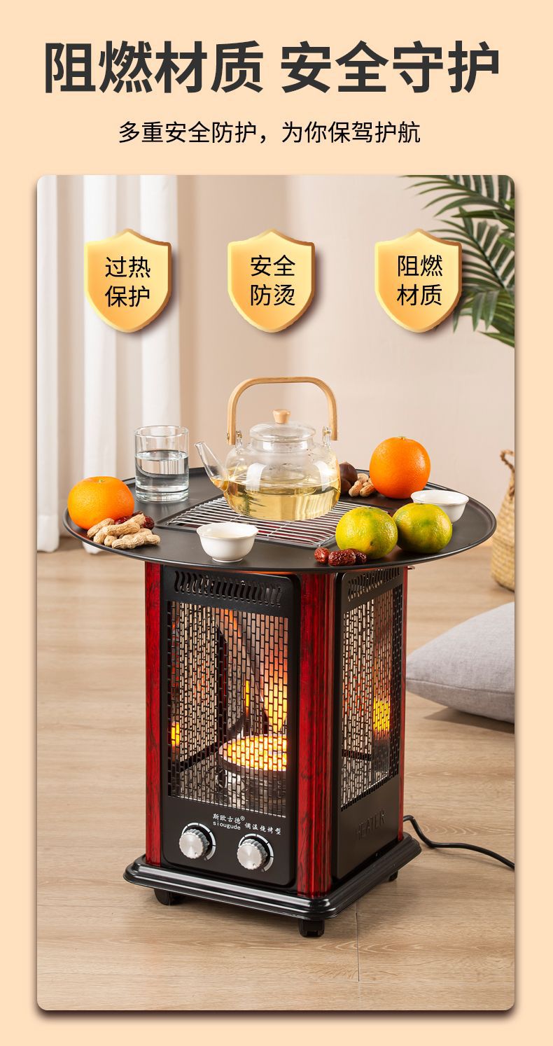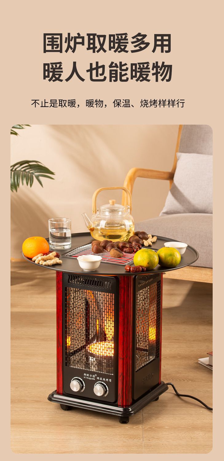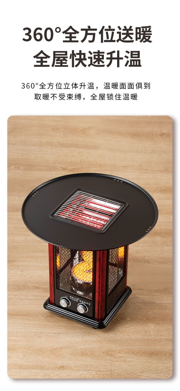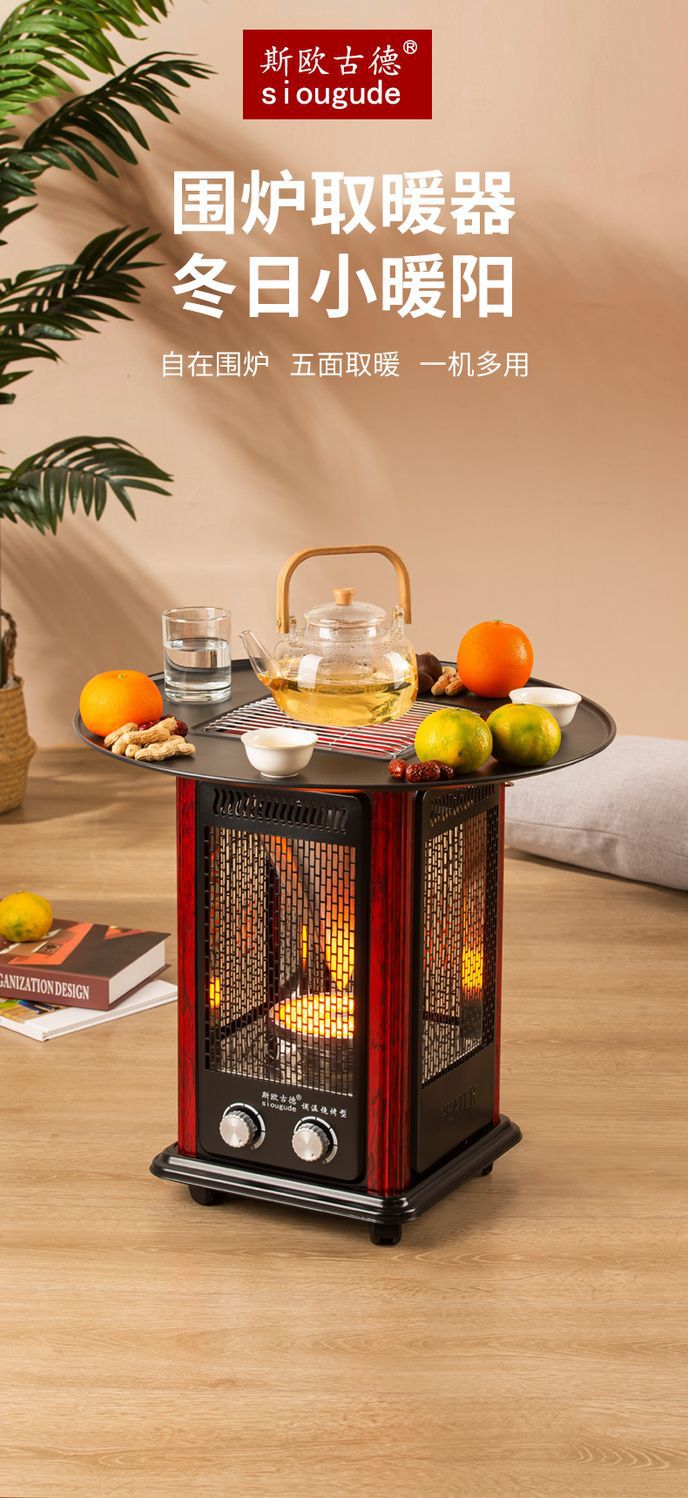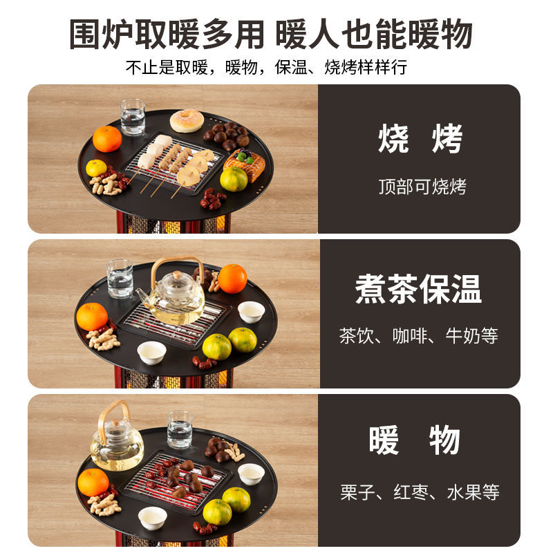 围炉煮茶五面取暖器取暖炉家用室内烤火炉暗光电暖器二合一烤火器