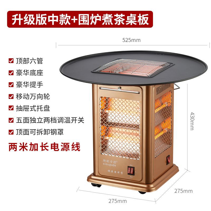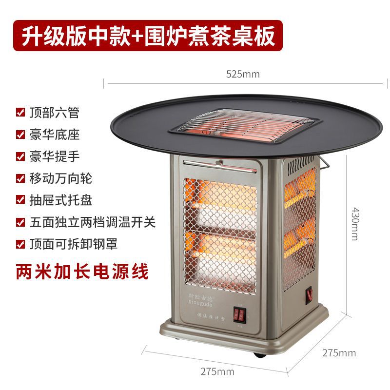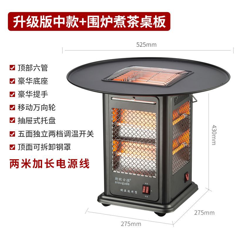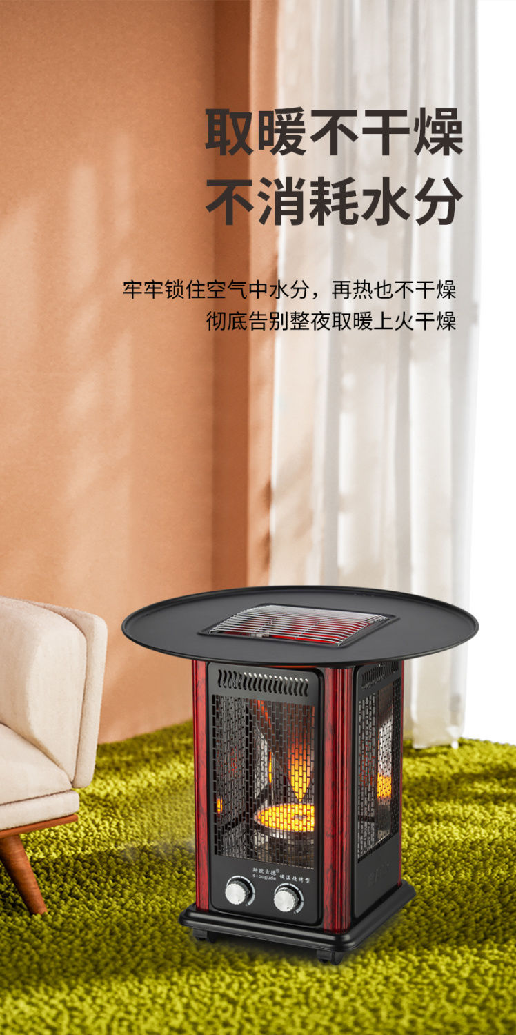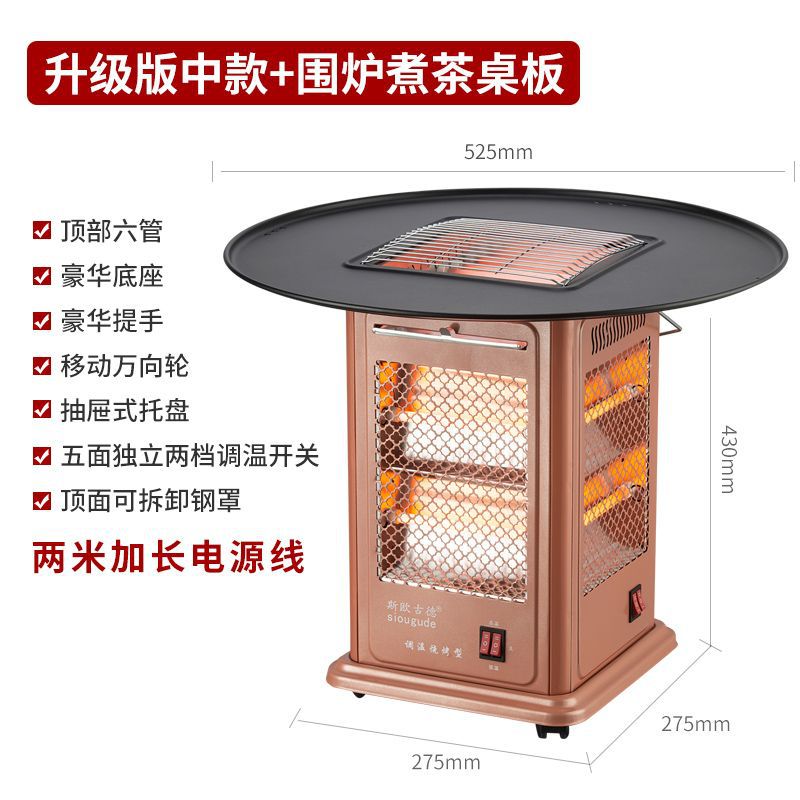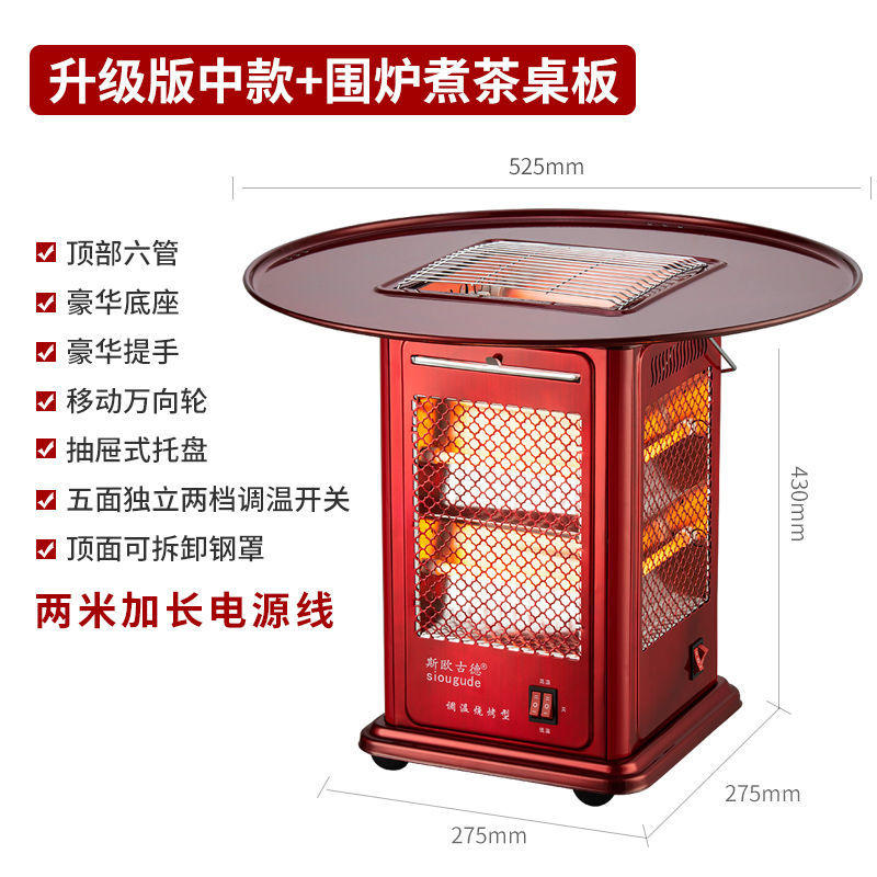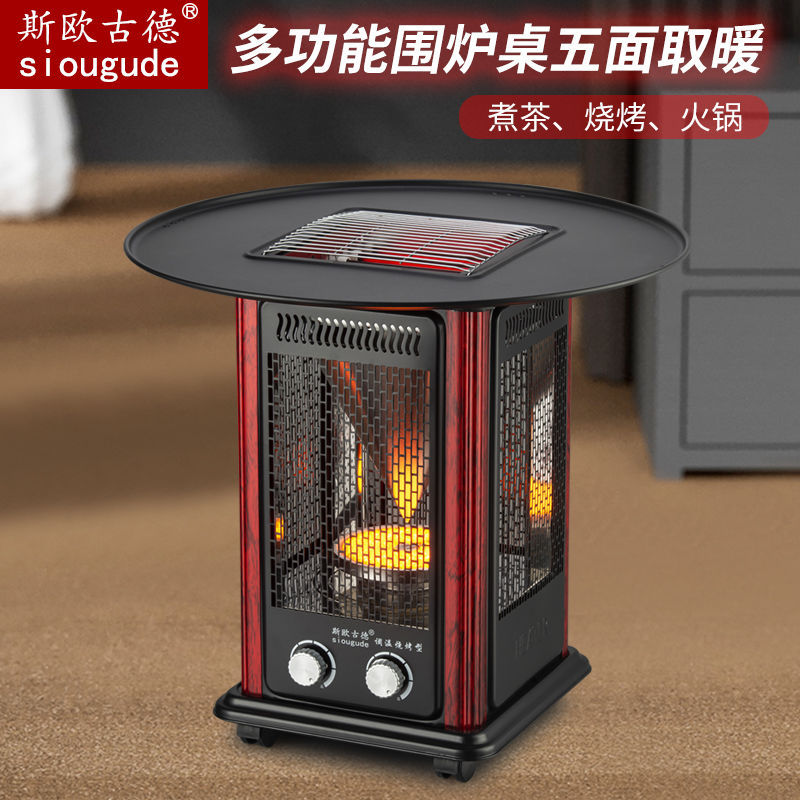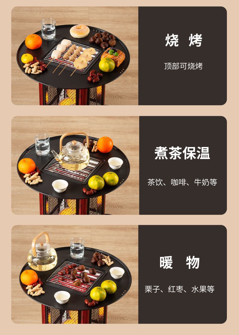 围炉煮茶五面取暖器取暖炉家用室内烤火炉暗光电暖器二合一烤火器