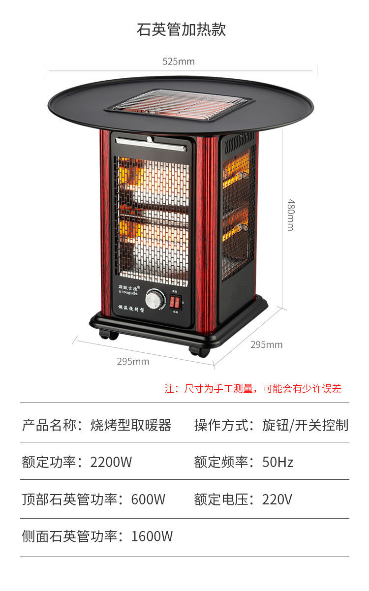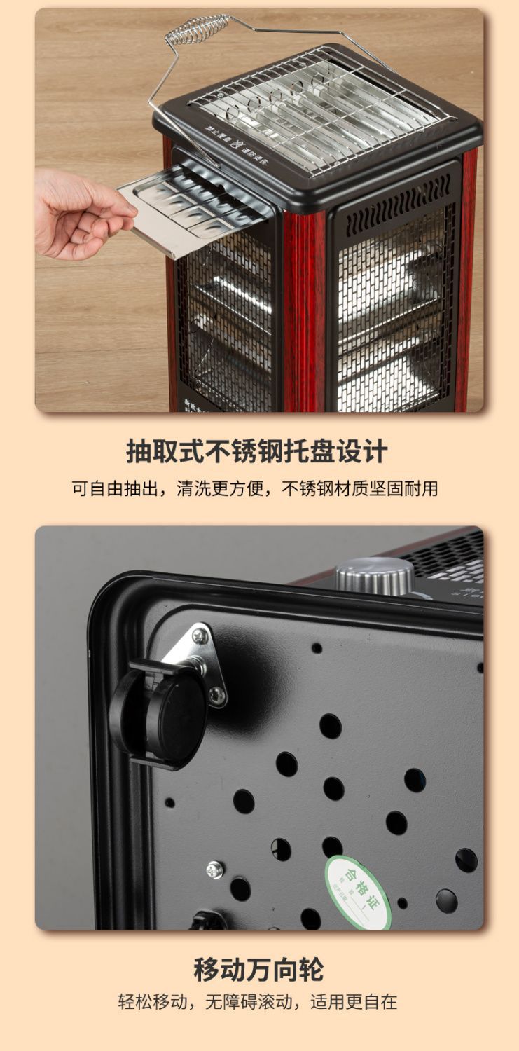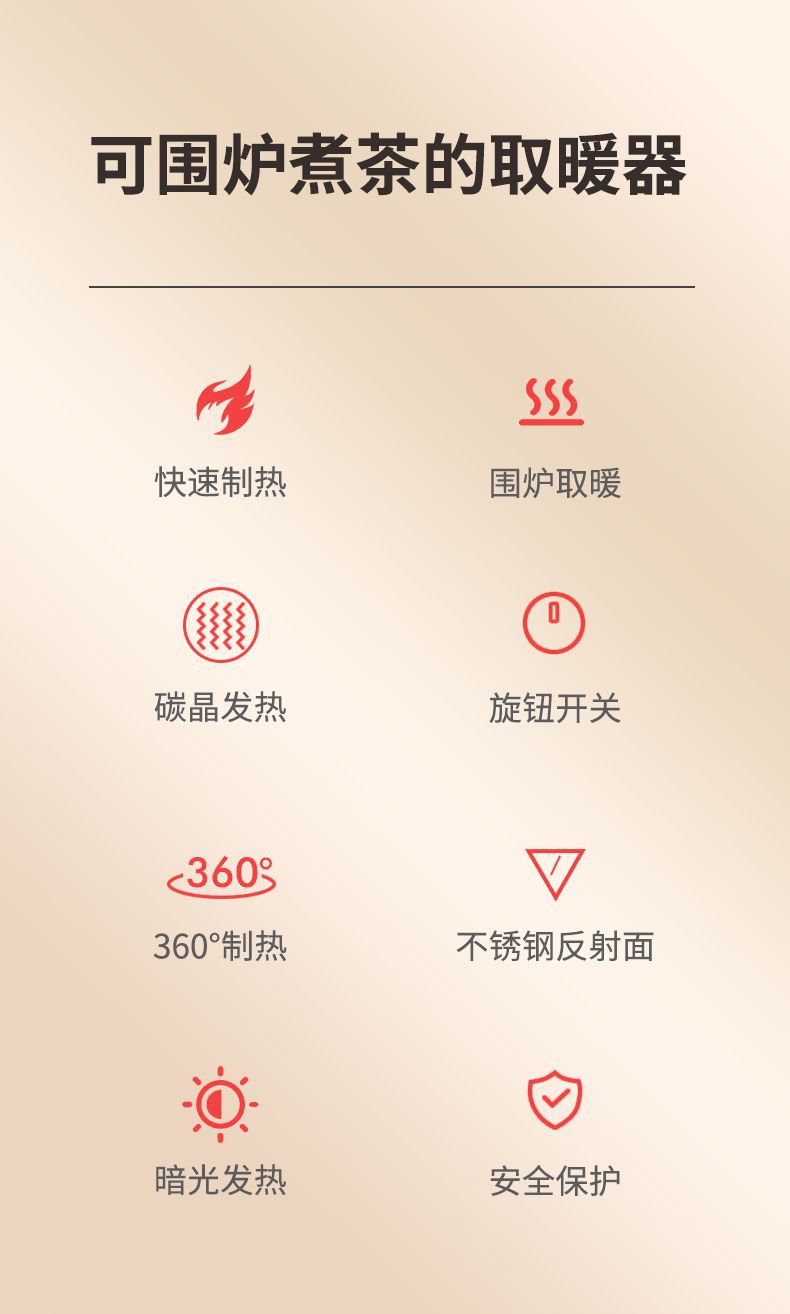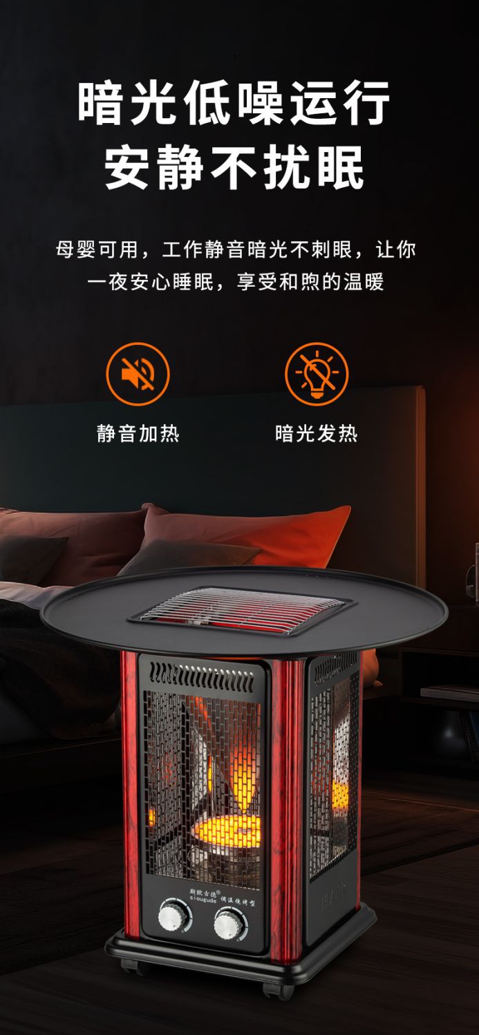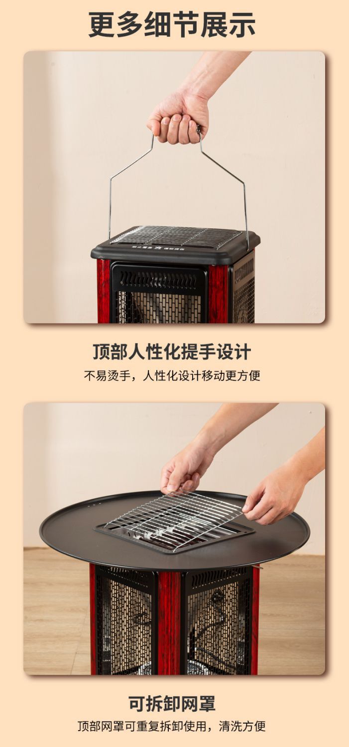 围炉煮茶五面取暖器取暖炉家用室内烤火炉暗光电暖器二合一烤火器