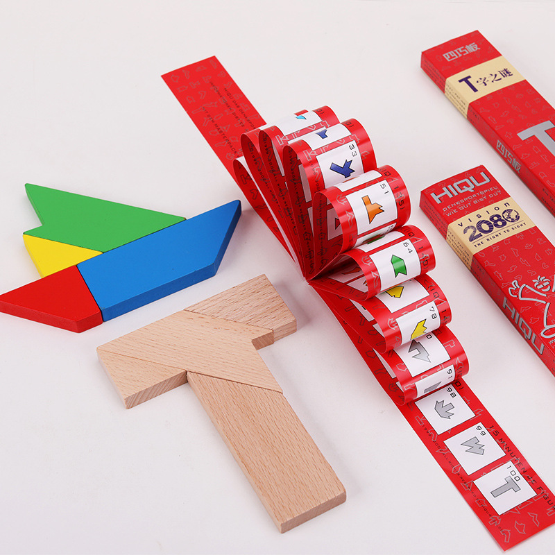 长条T字之谜学生教具四巧板智力玩具积木2-6岁儿童智力拼图跨境