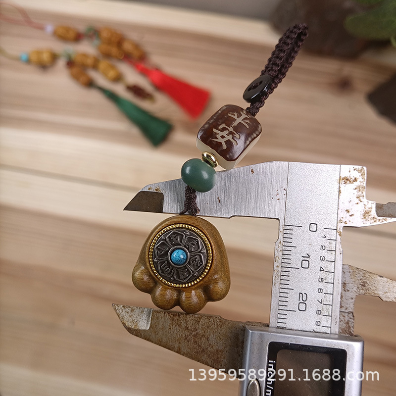 赚钱紫檀木猫爪汽车钥匙扣挂件绿檀木手机链挂绳包包挂饰批发