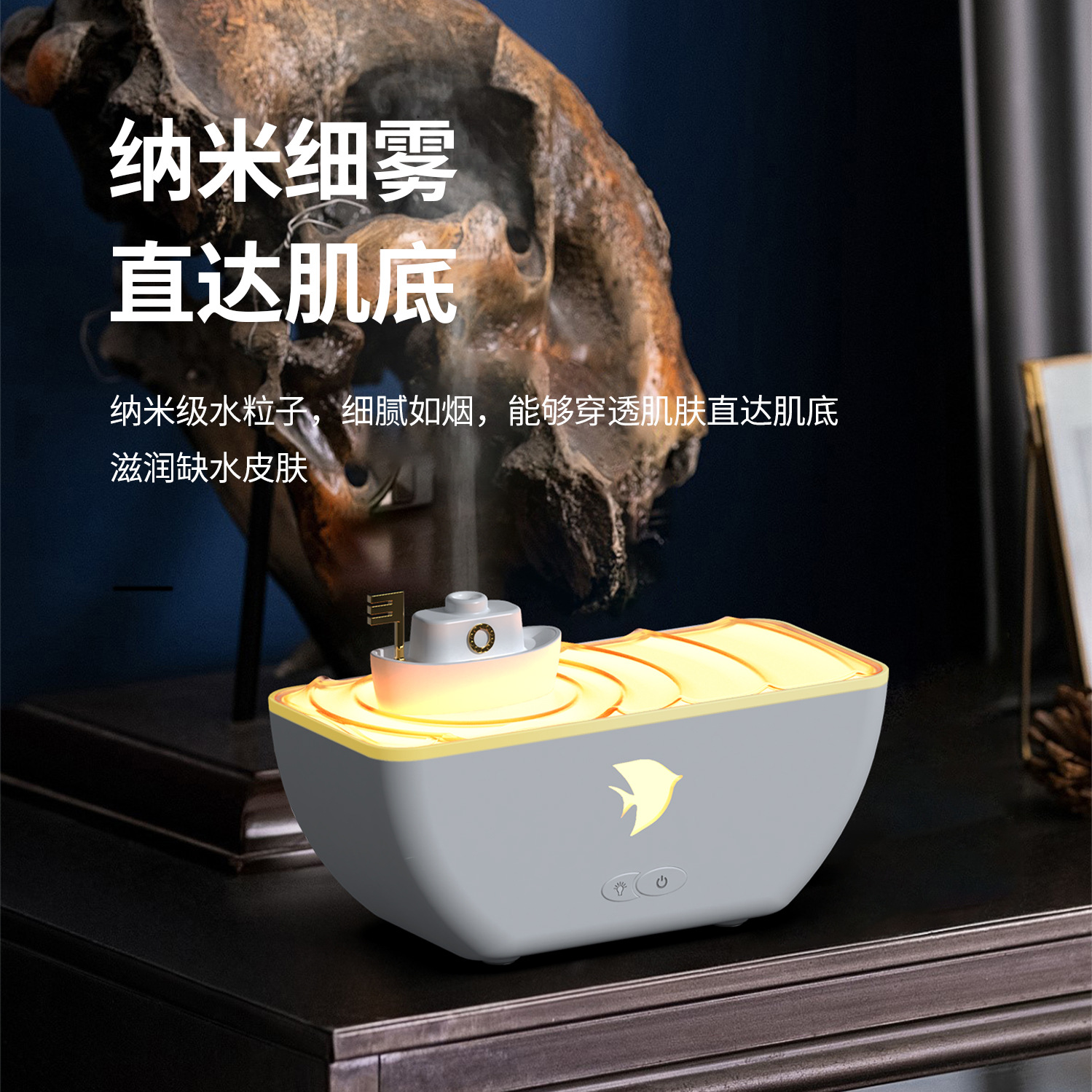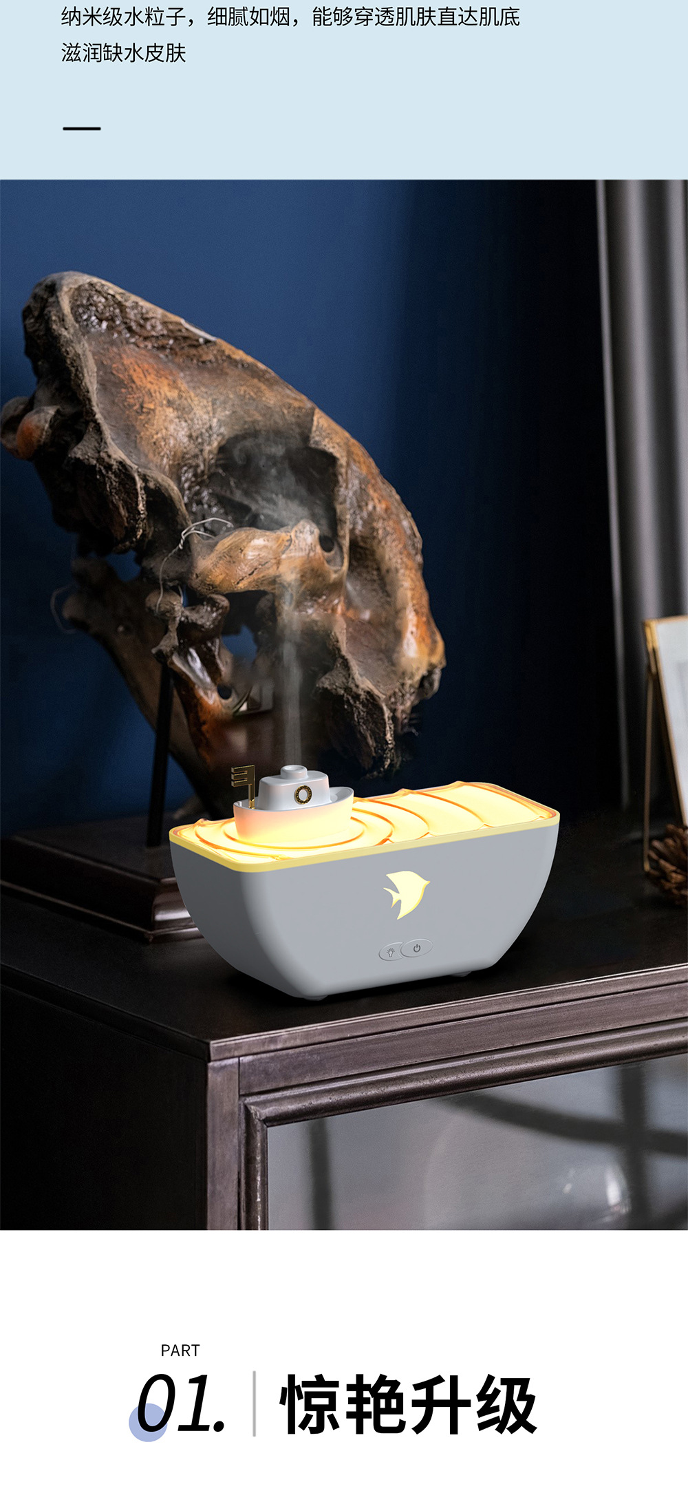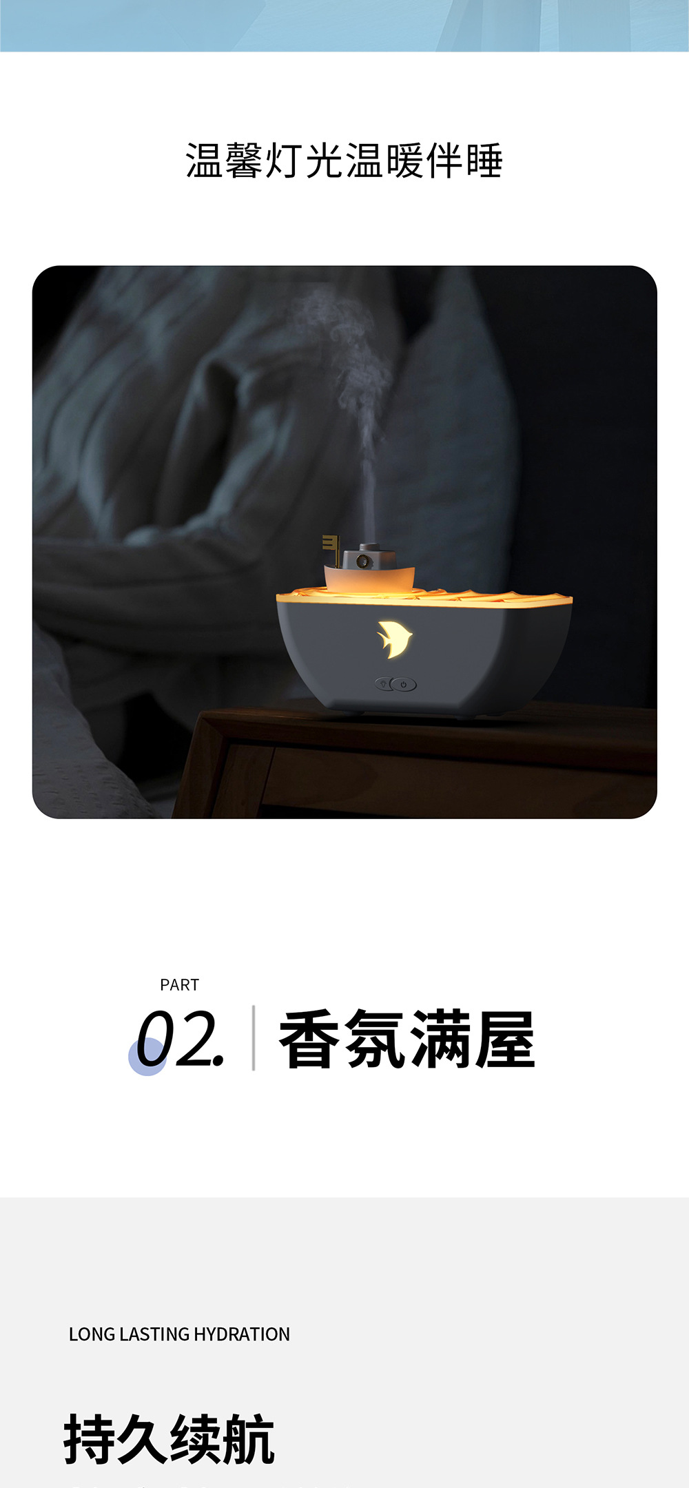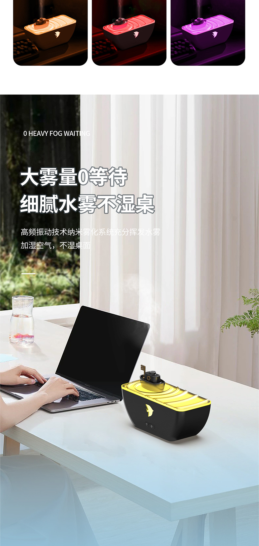 跨境轮船香薰机渐变七彩夜灯氛围感创意礼品补水加湿器卧室用小型