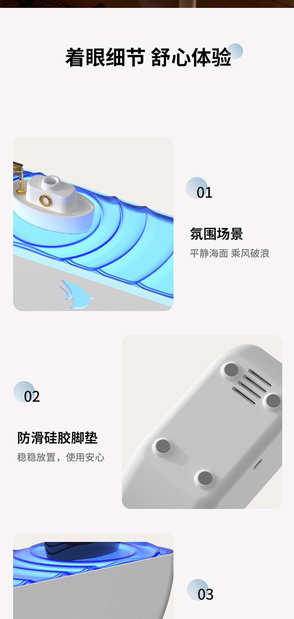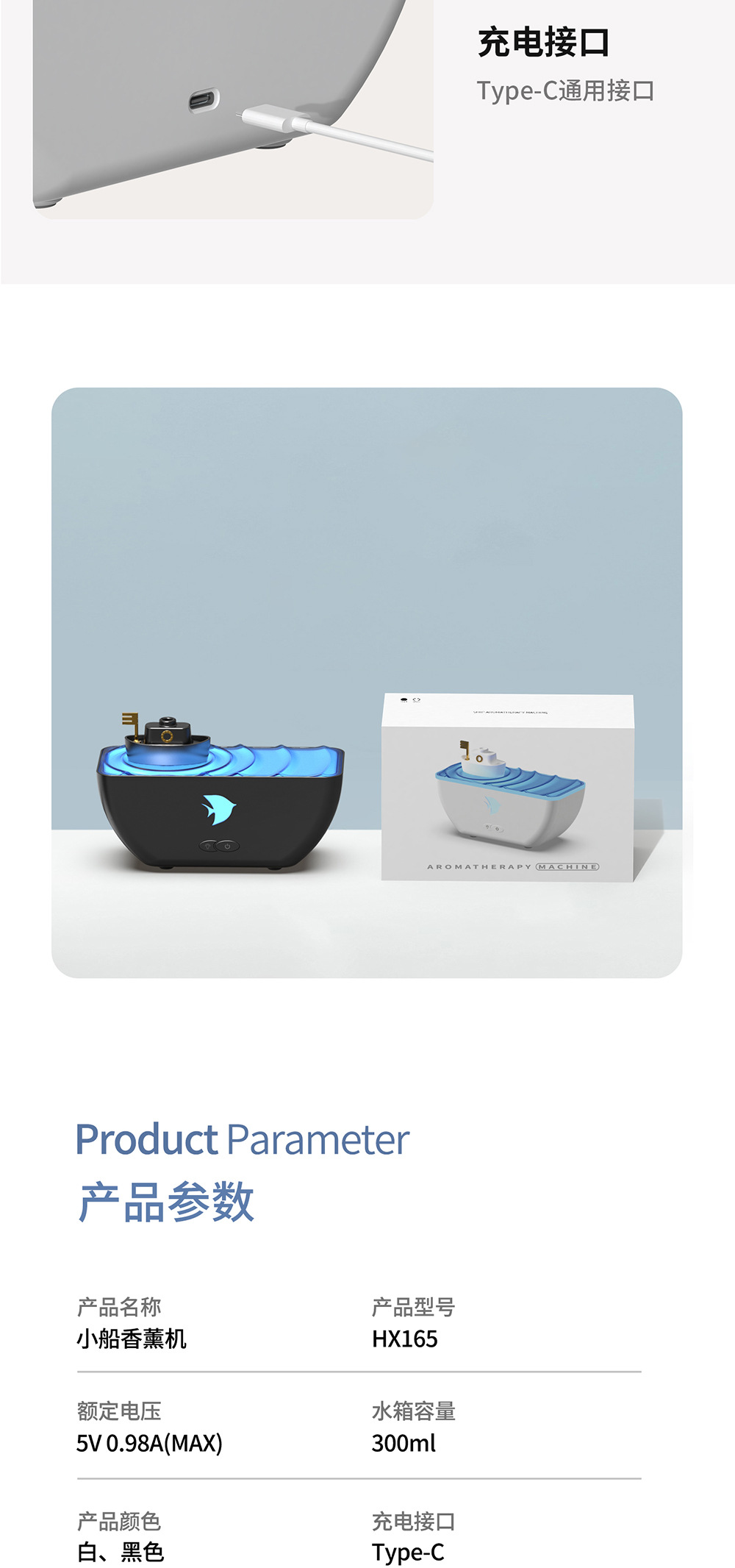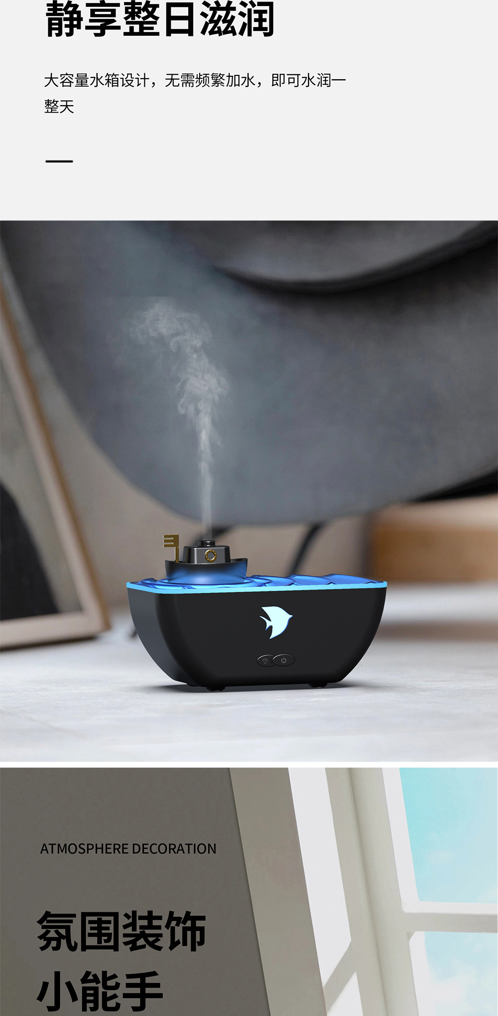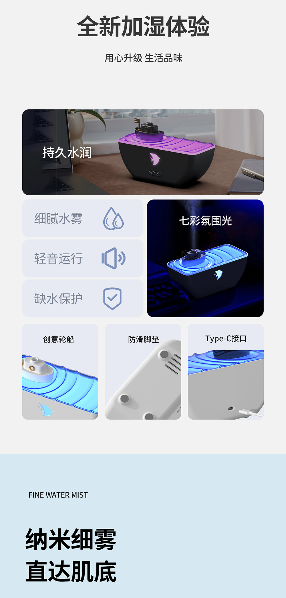 跨境轮船香薰机渐变七彩夜灯氛围感创意礼品补水加湿器卧室用小型