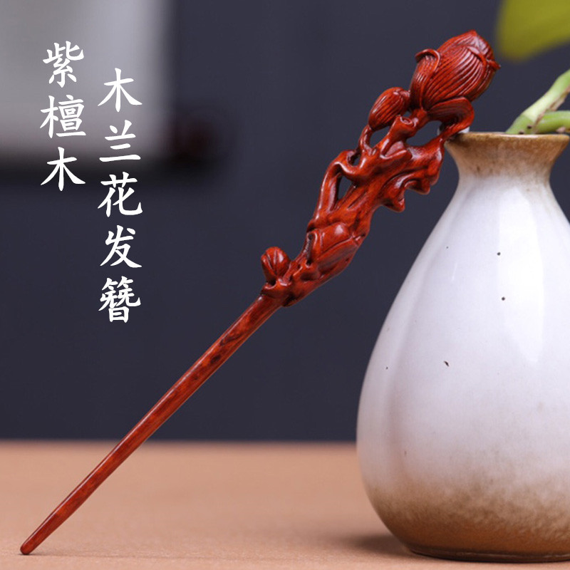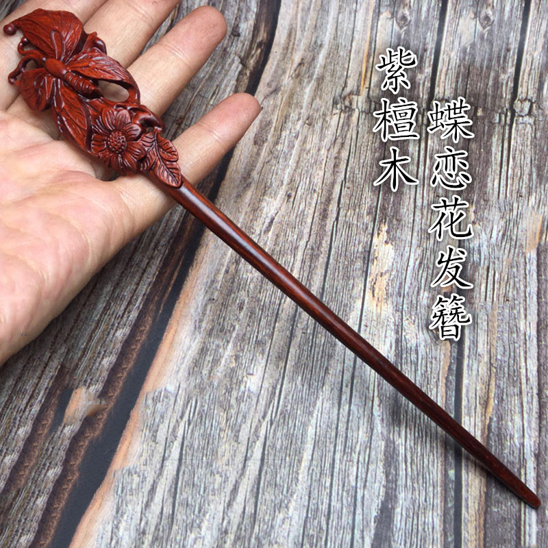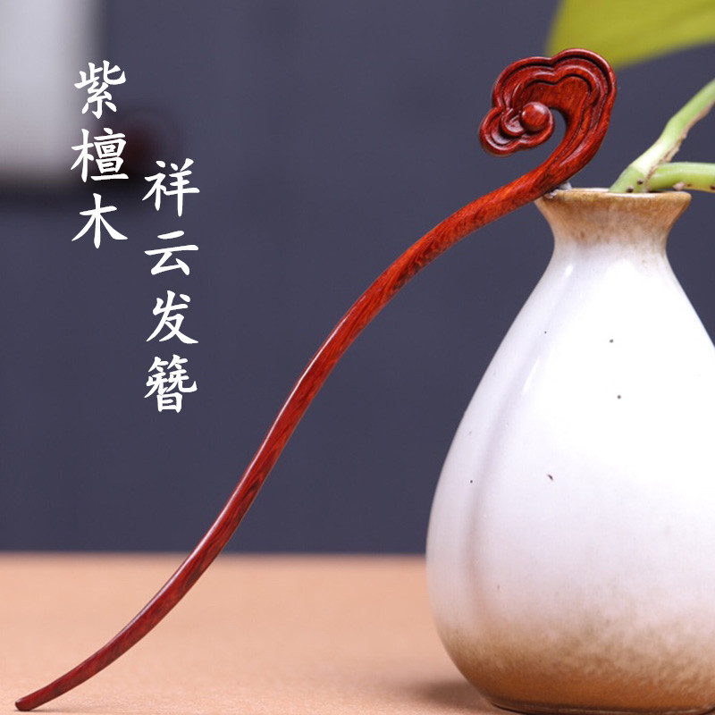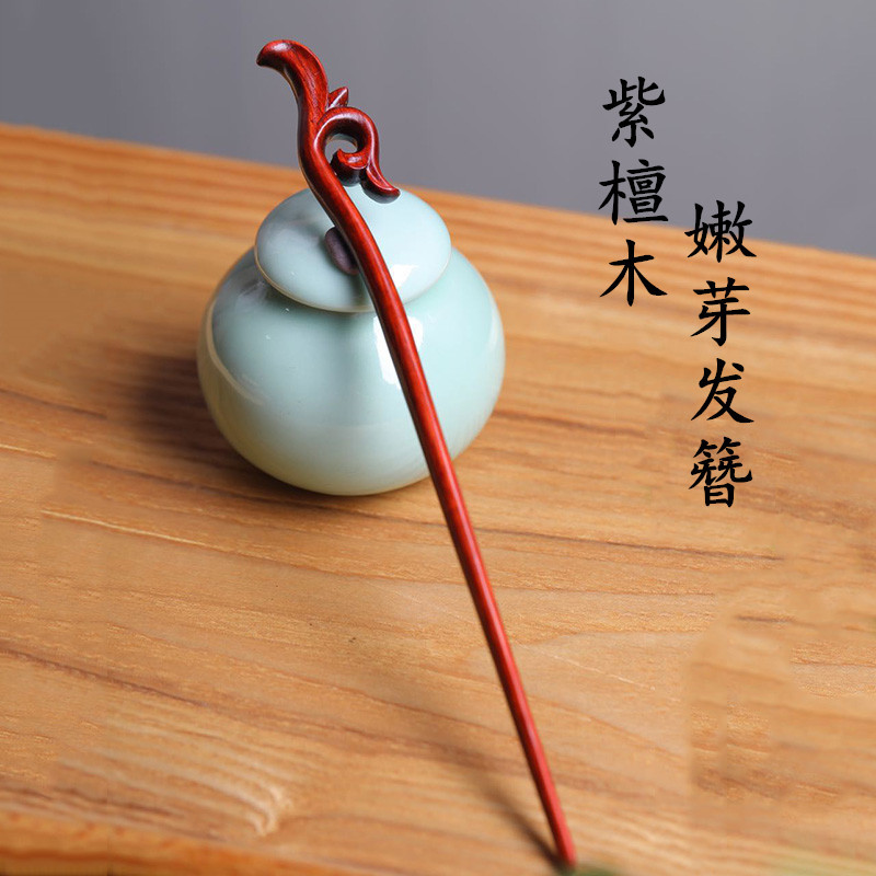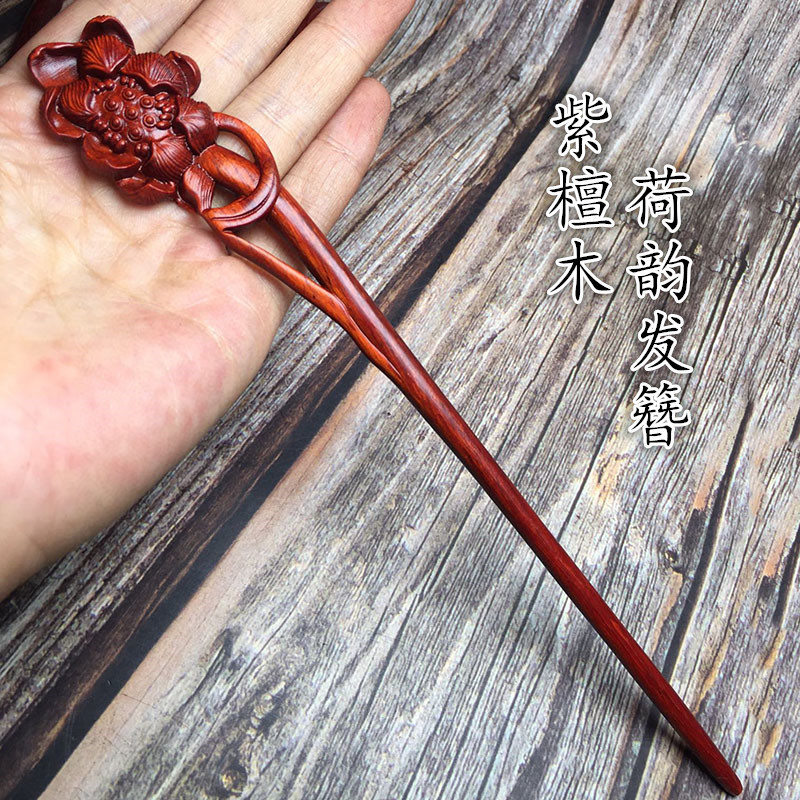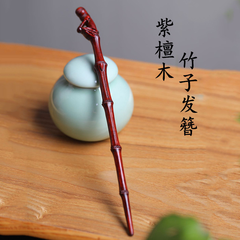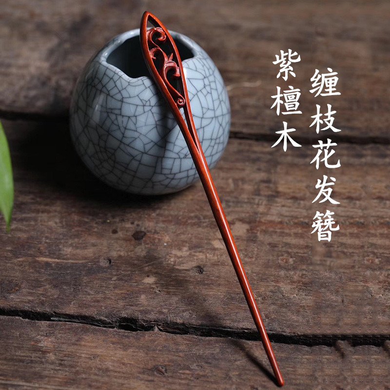 小叶紫檀木红木个性木质发簪 diy复古风盘发簪杆女士头饰直播货源