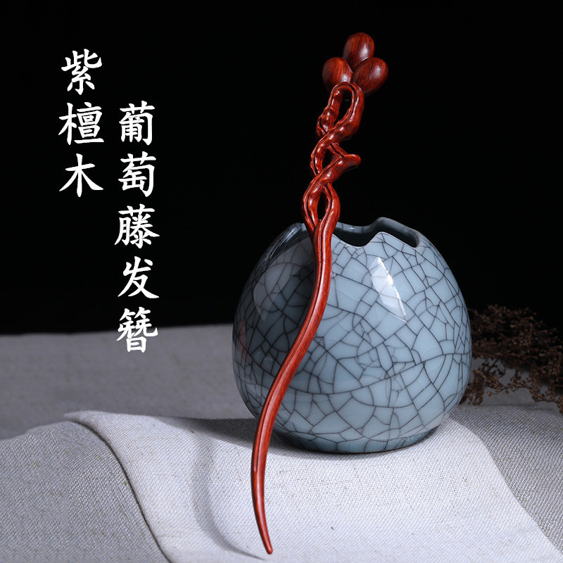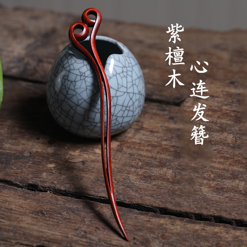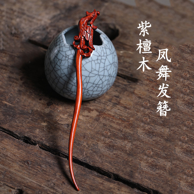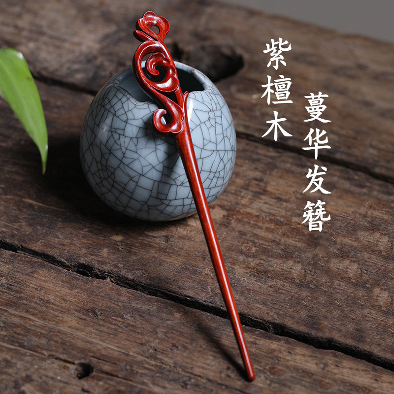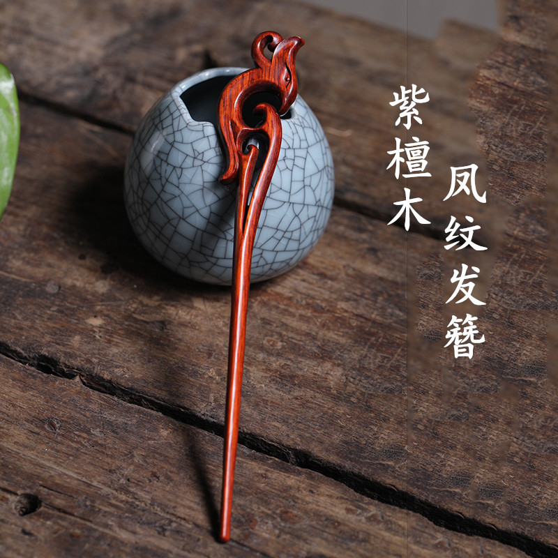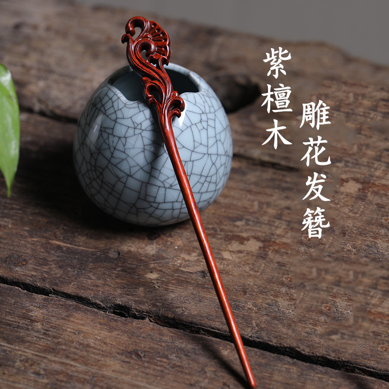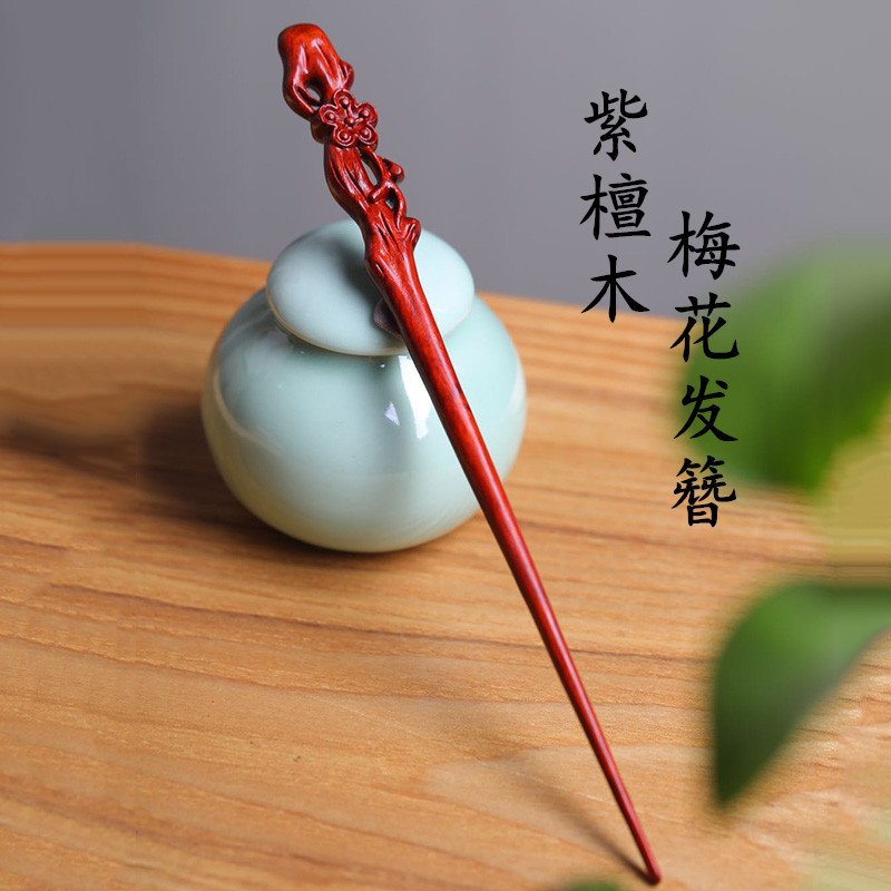 小叶紫檀木红木个性木质发簪 diy复古风盘发簪杆女士头饰直播货源