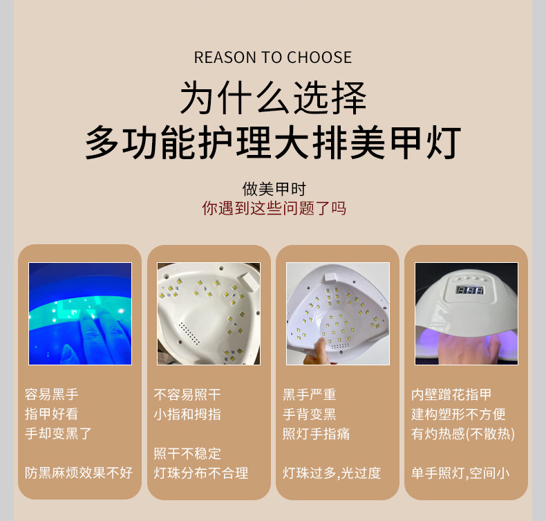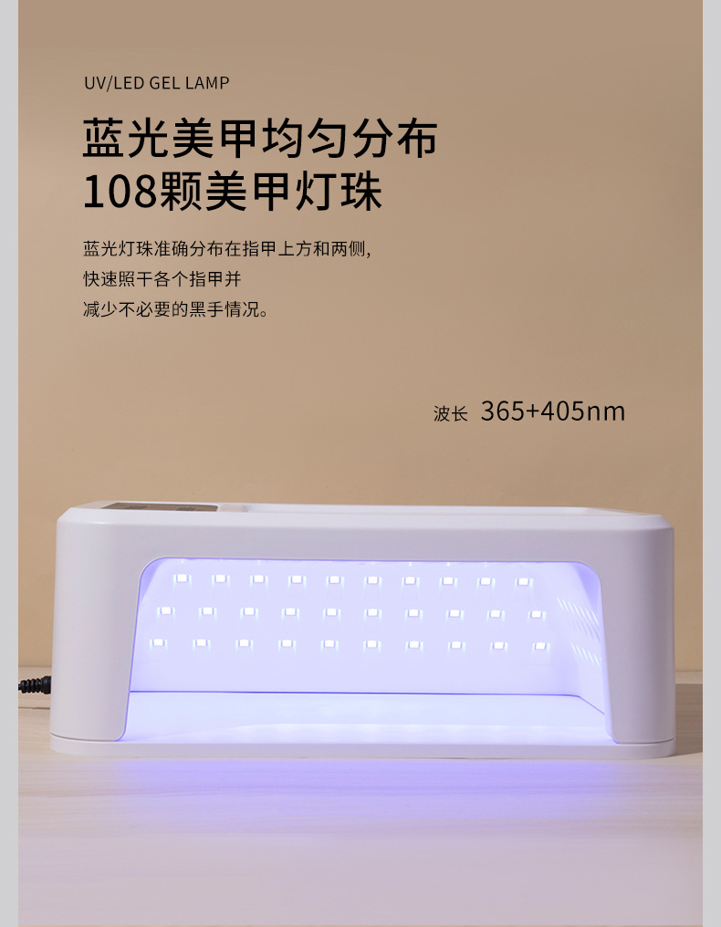 新款208W大空间双手美甲灯智能感应可卸底盘甲油胶速干不黑手