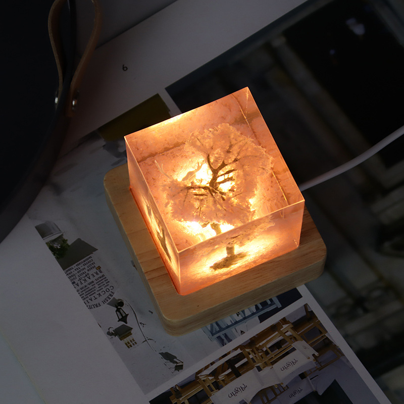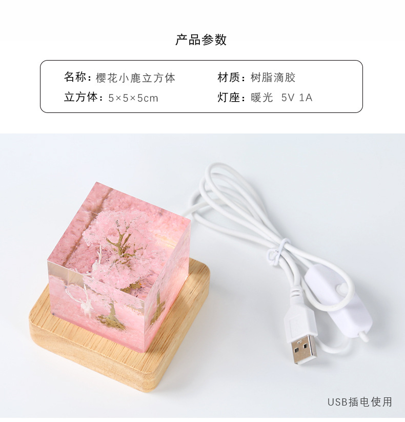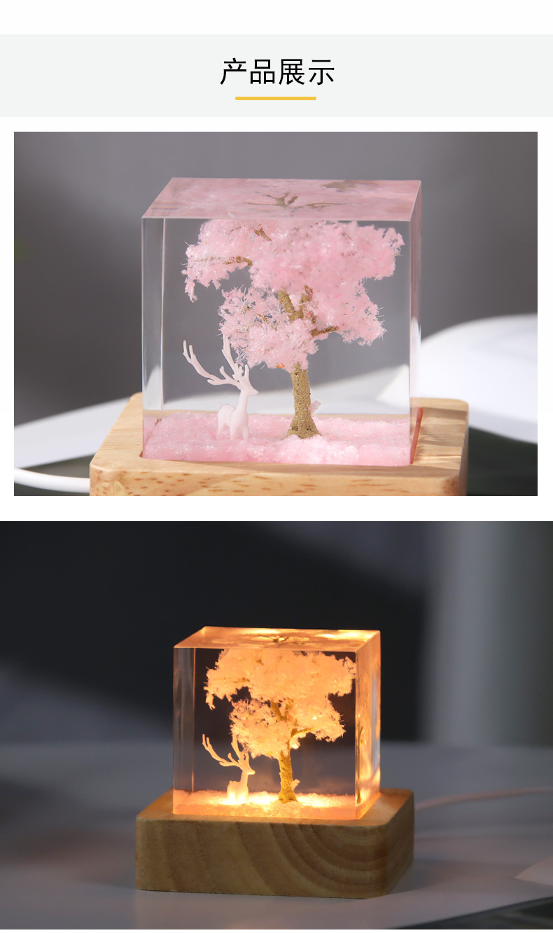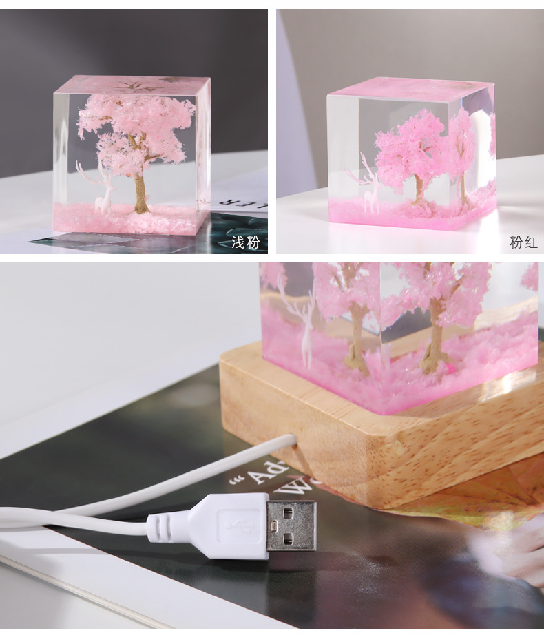 外贸专供七彩白鹿樱花小夜灯创意桌面树脂饰品摆件床头小夜灯