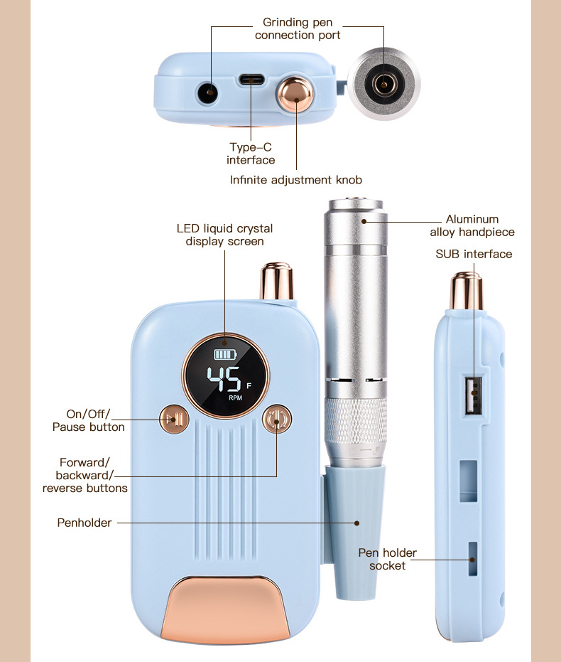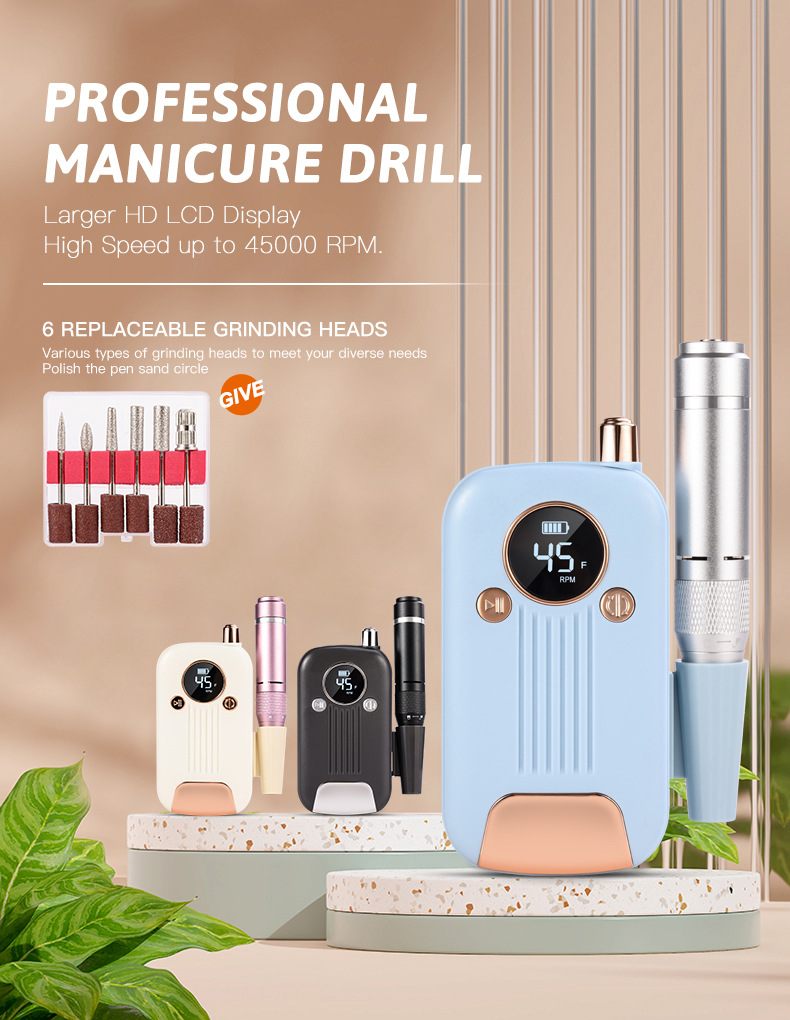 新款美甲打磨机便携式卸甲磨甲器美甲卸甲充电打磨机