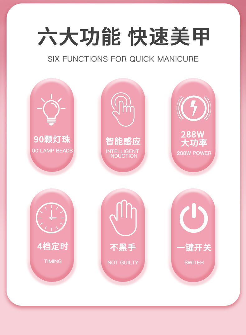 新品288W美甲穿戴甲光疗灯大功率带手枕速干甲油胶烤灯美甲店跨境