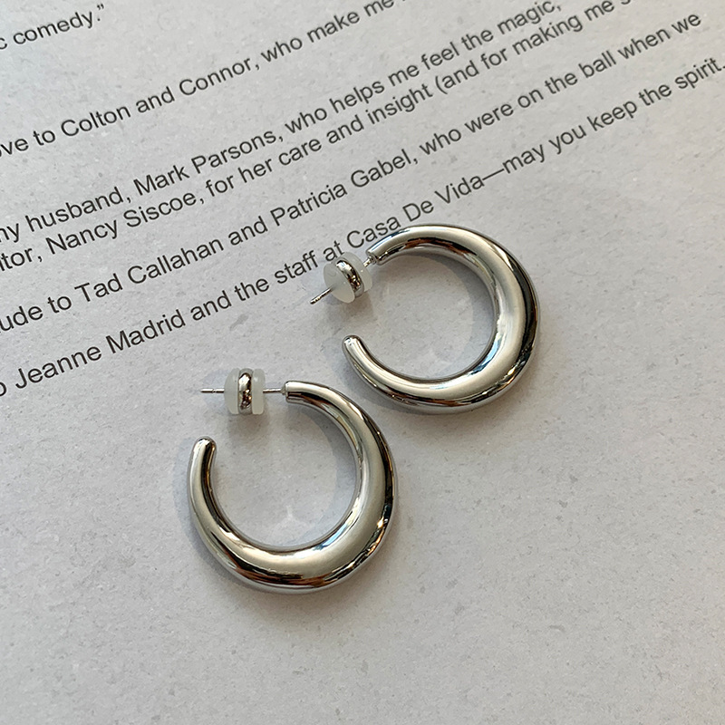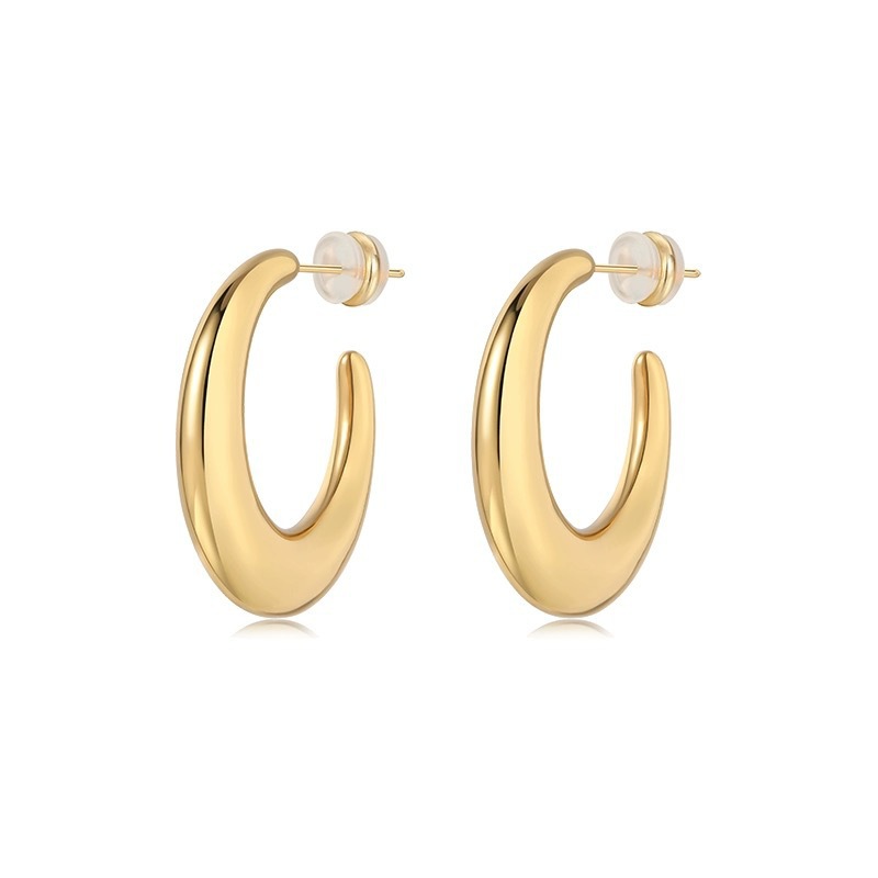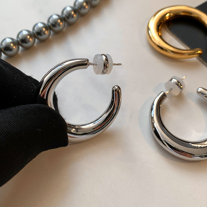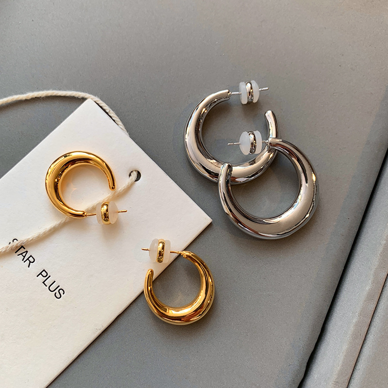 轻奢小众简约高级感大圆圈耳钉真金电镀5个厚素圈C形耳圈耳环女