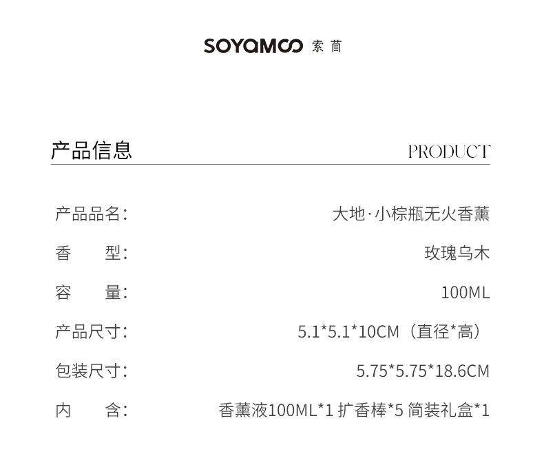 索苜大地系列无火香薰摆件卧室卫生间酒店藤条香薰精油持久散香