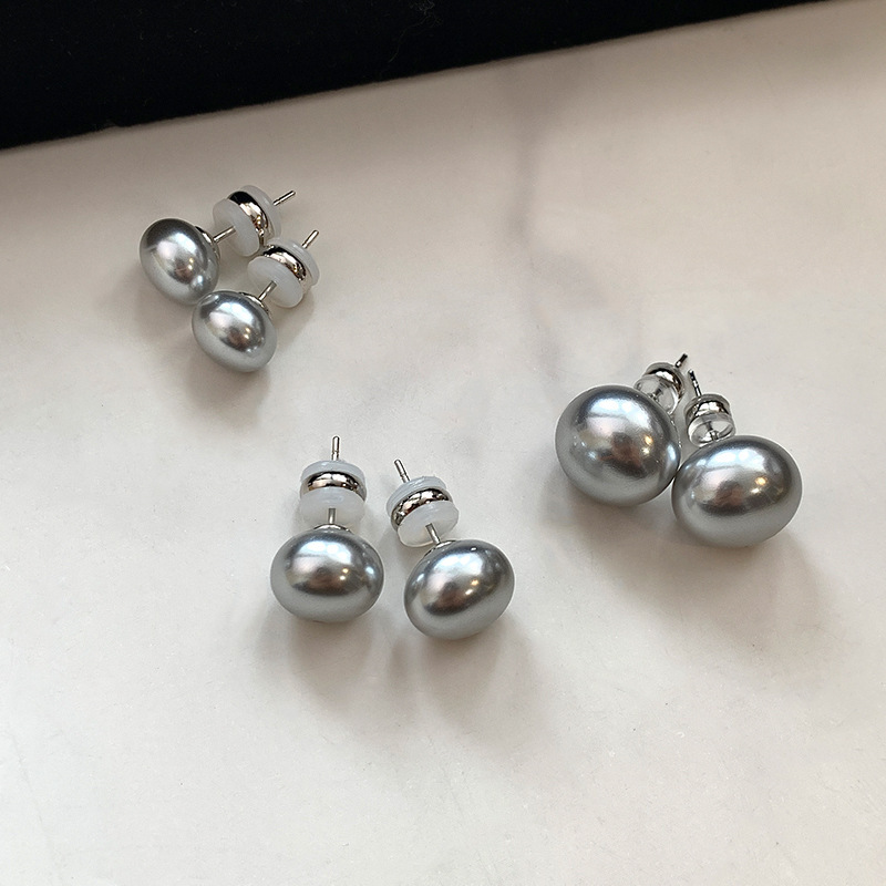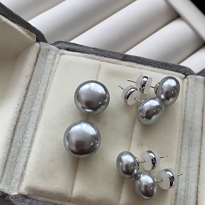 简约时尚气质高级感耳环纯银针施家真多麻银灰色扁圆馒头珍珠耳钉