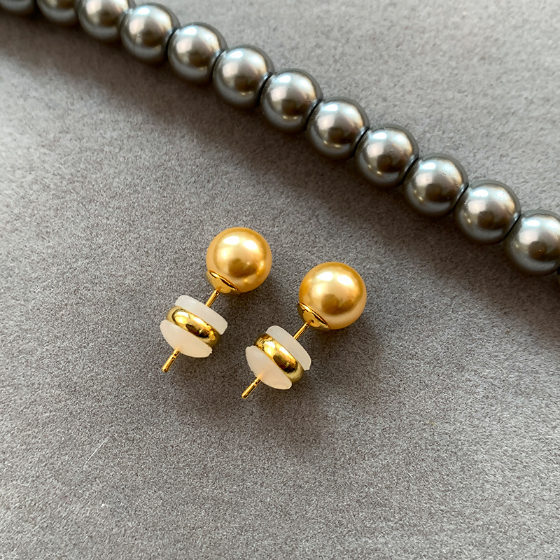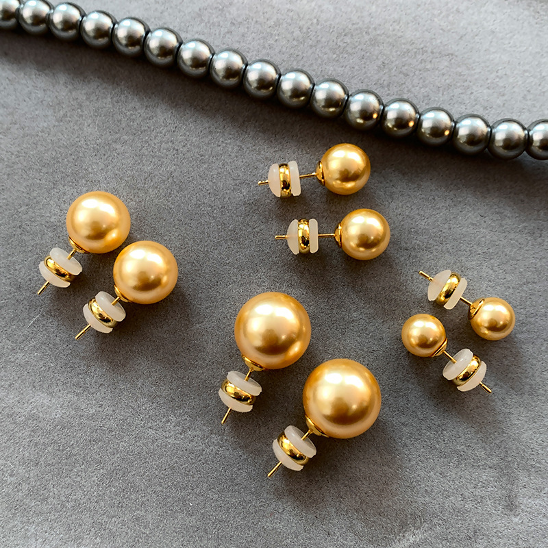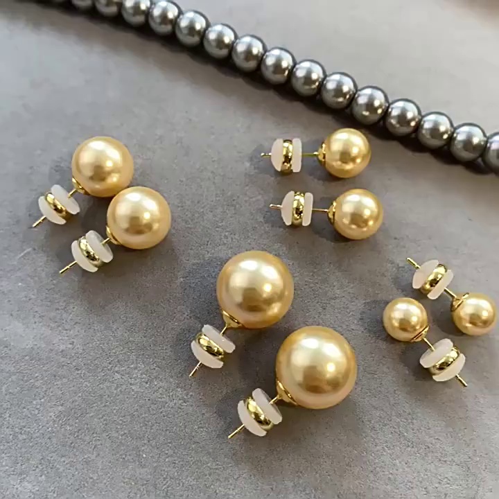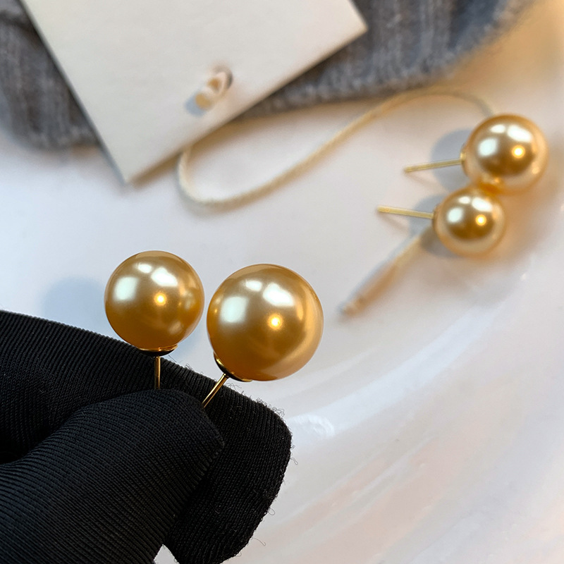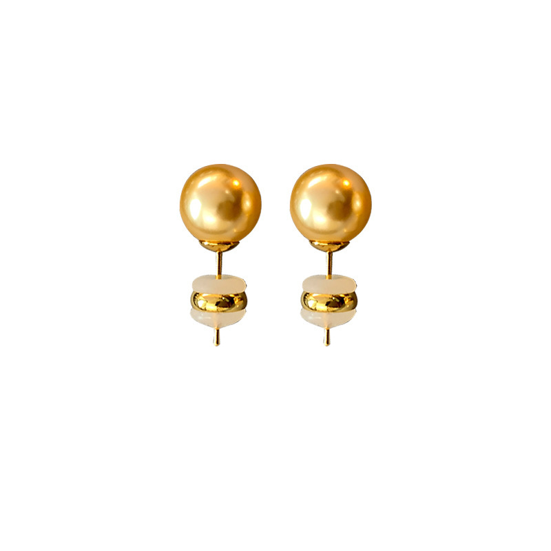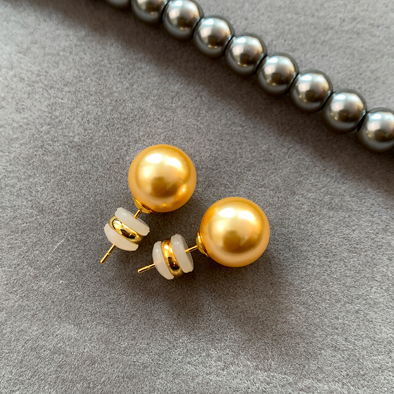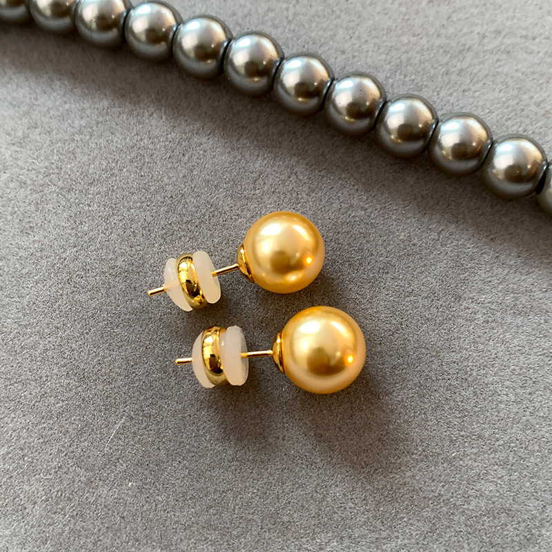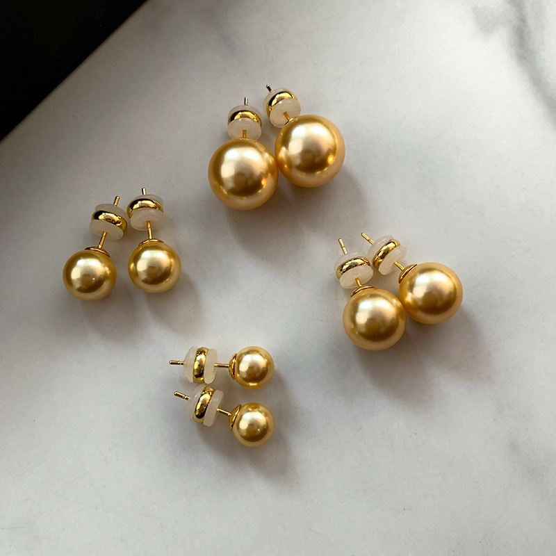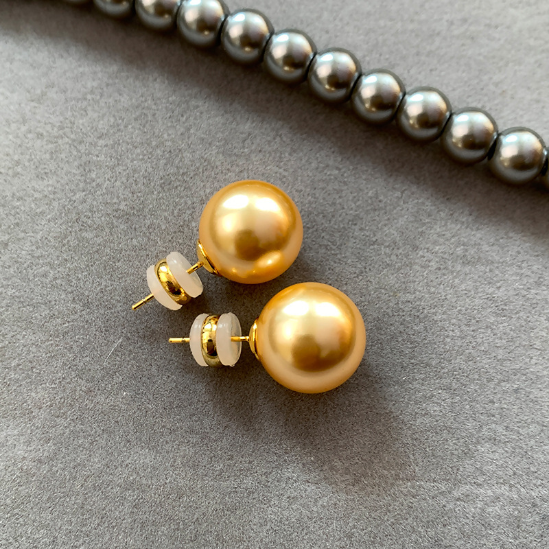南洋茶金色耳钉女轻奢小众高级感耳饰925纯银针施家极光珍珠耳环