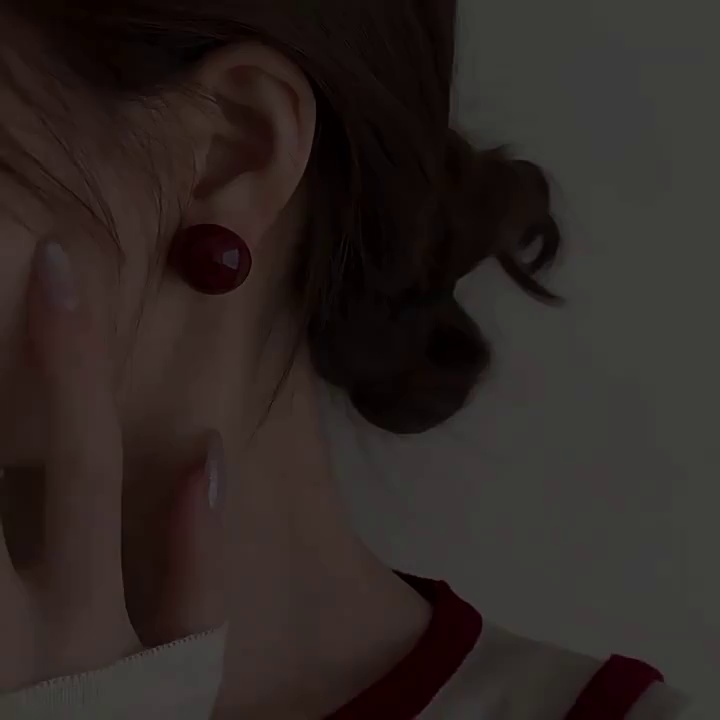 耳环港风复古酒红色几何形耳环网红同款耳饰安可拉红色小豆豆耳钉