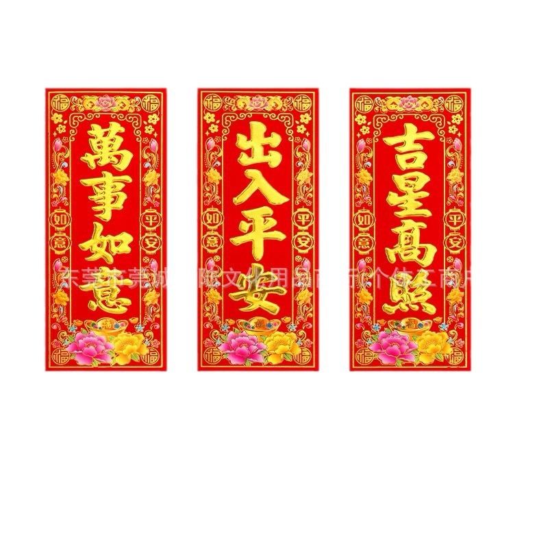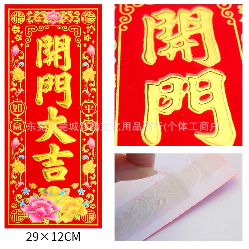 春节用品植绒金字背胶四字小对联门头挥春贴纸自粘新款竖版珲春