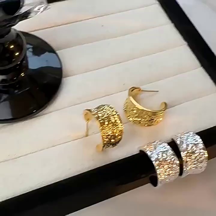 耳环小众高级感时尚气质耳钉欧美耳饰真金电镀请冷风褶皱C形耳环