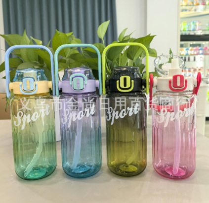 多巴胺双色渐变水杯大容量耐摔带吸管手提网红塑料杯便携式太空杯