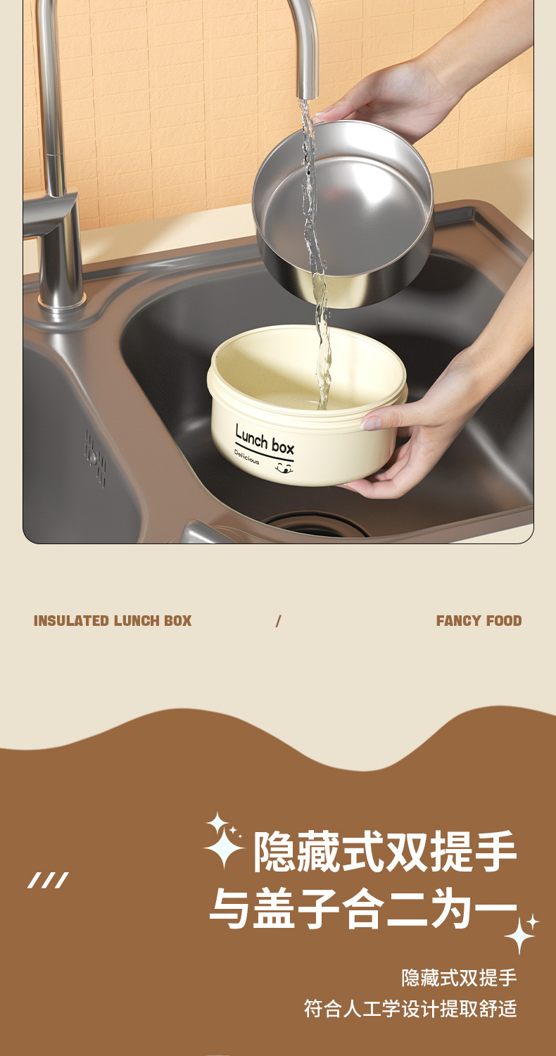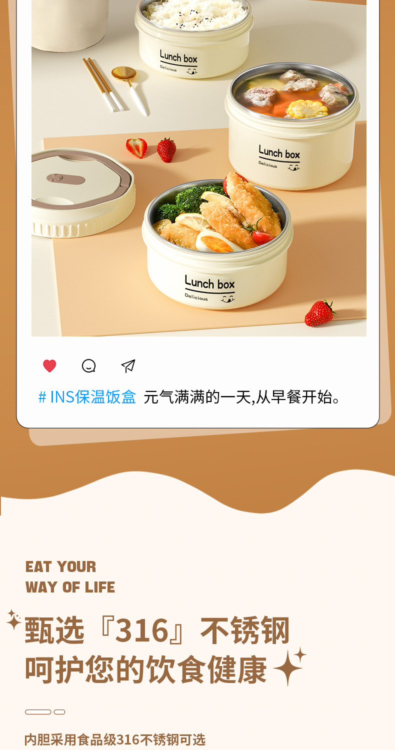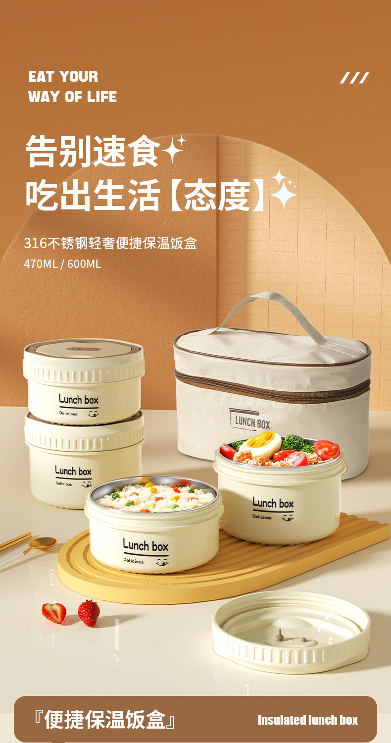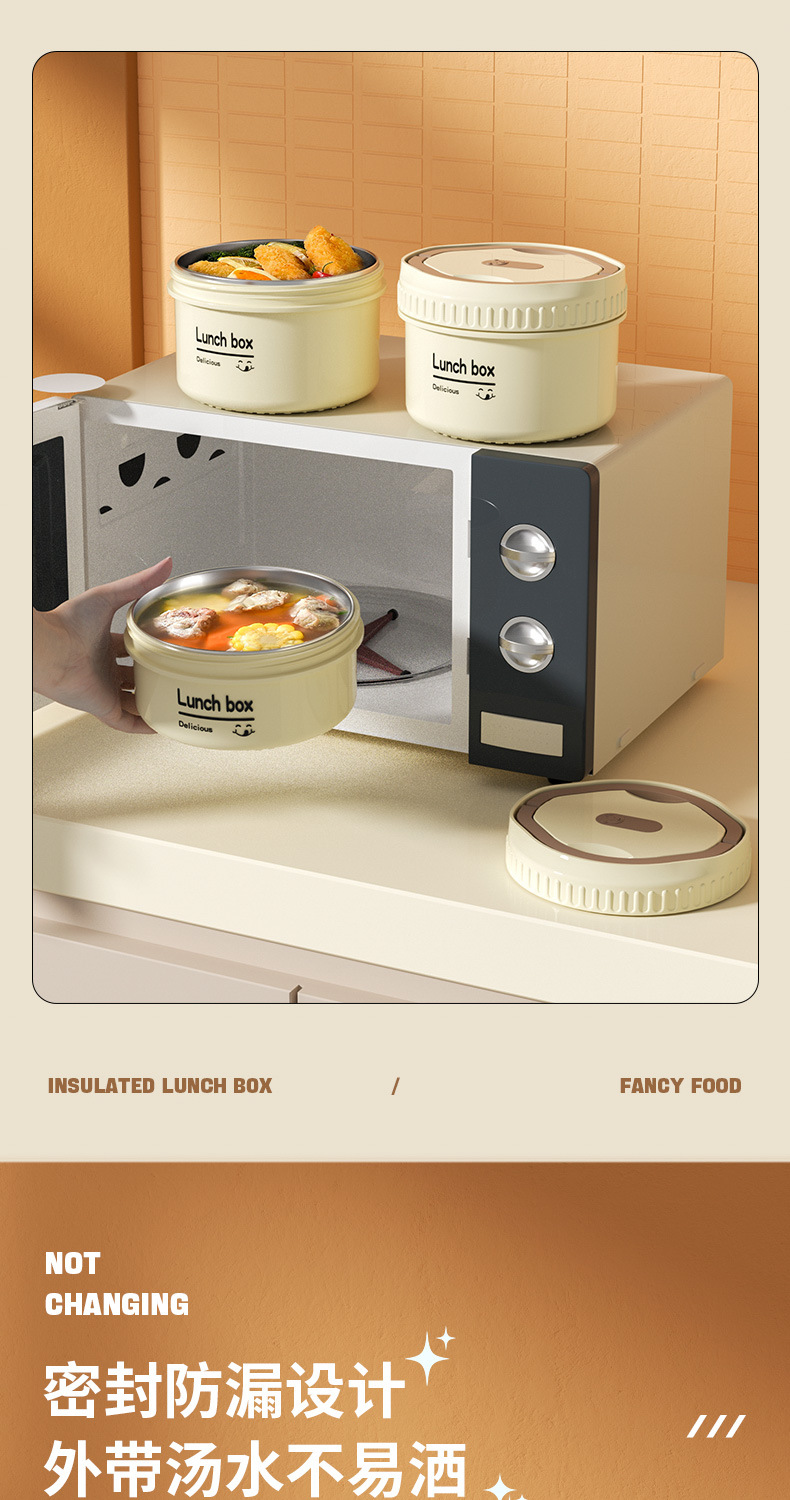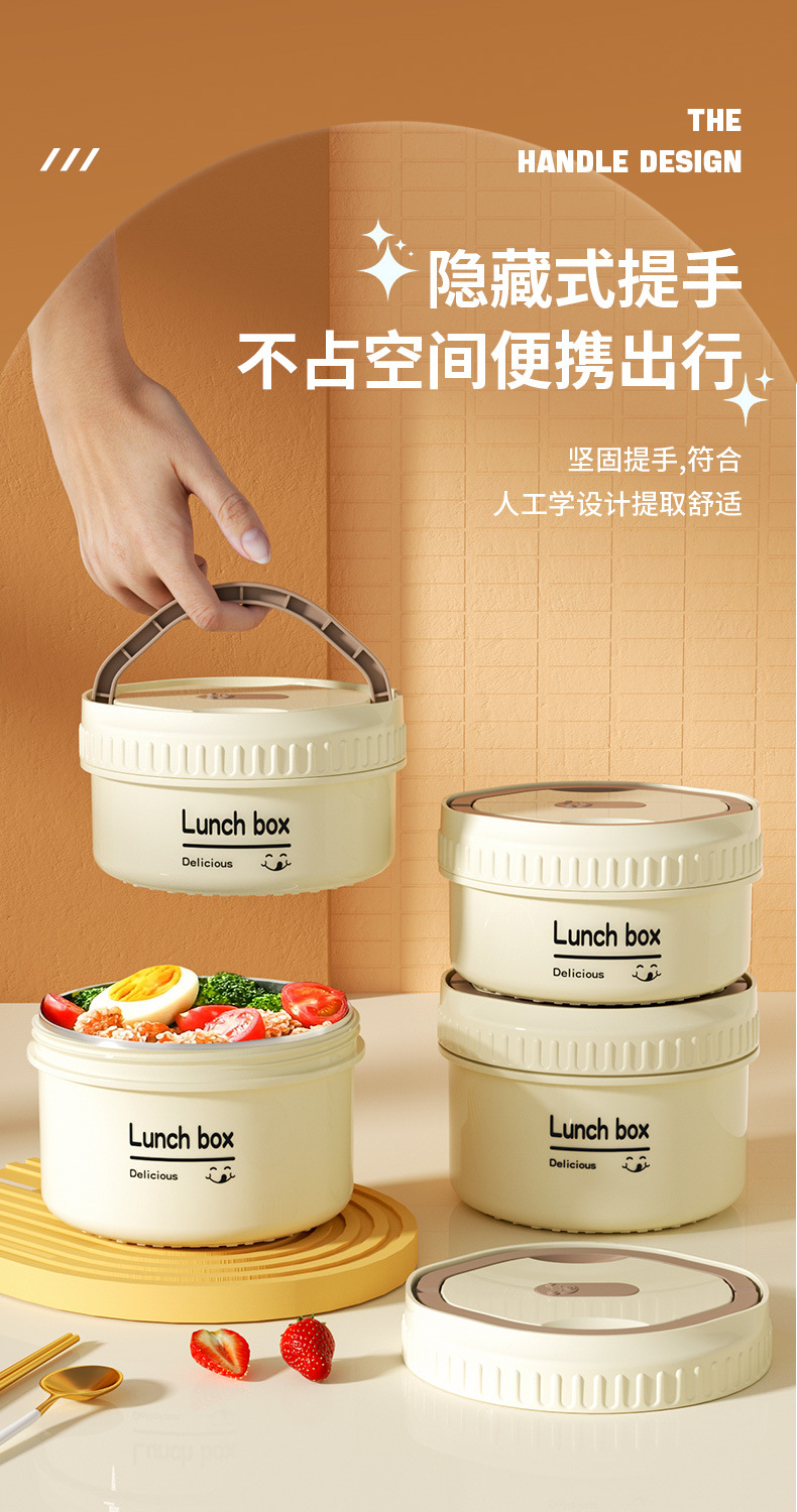 家用不锈钢保温饭盒双层便携餐盒圆形多层上班学生带盖密封便当盒
