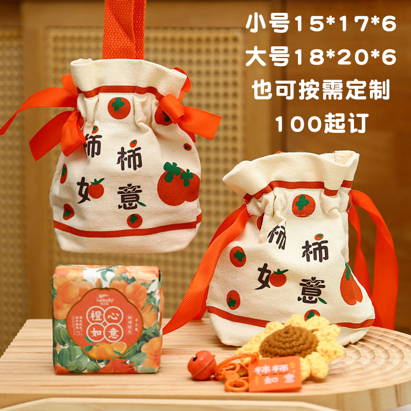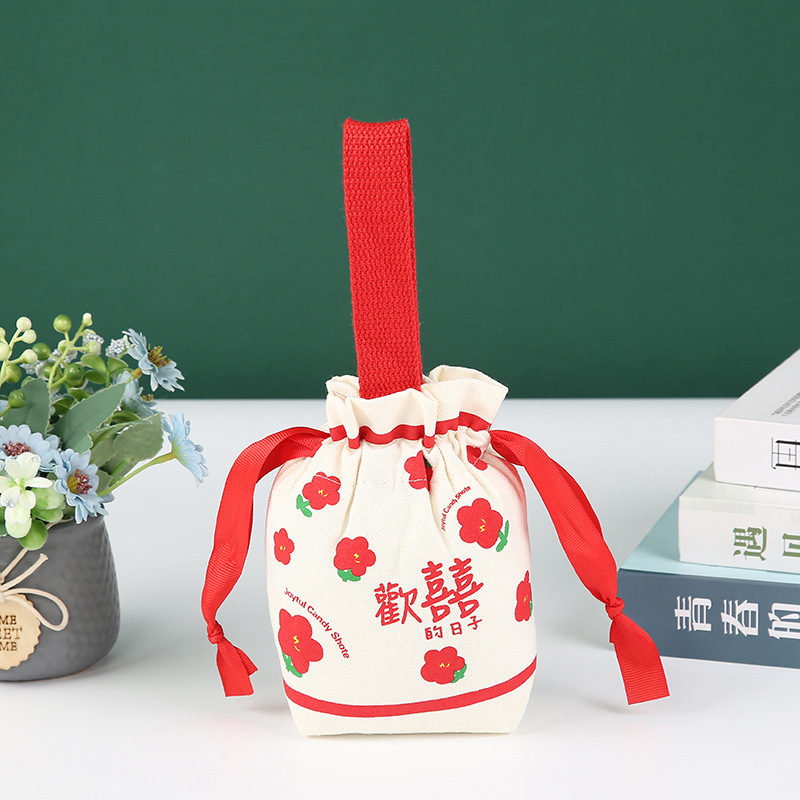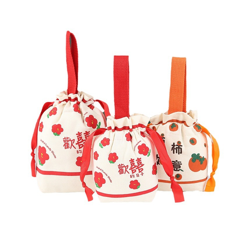 帆布袋定制创意礼品新年婚礼喜糖布袋高级感伴手礼手提抽绳束口袋