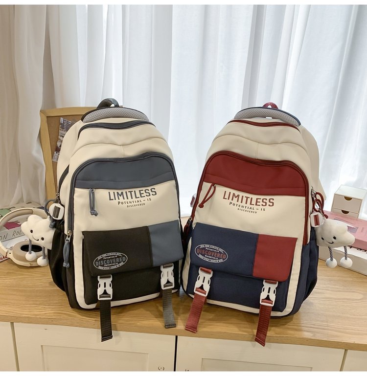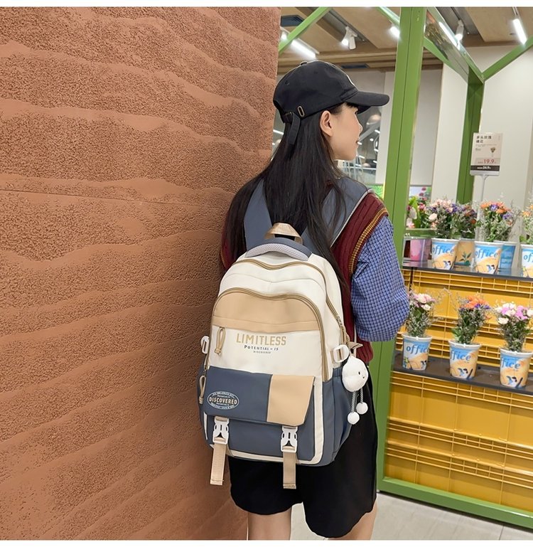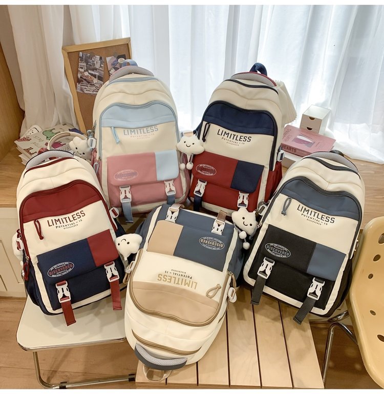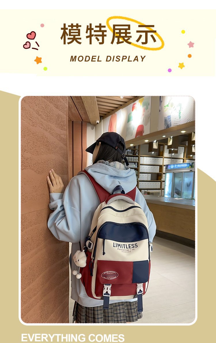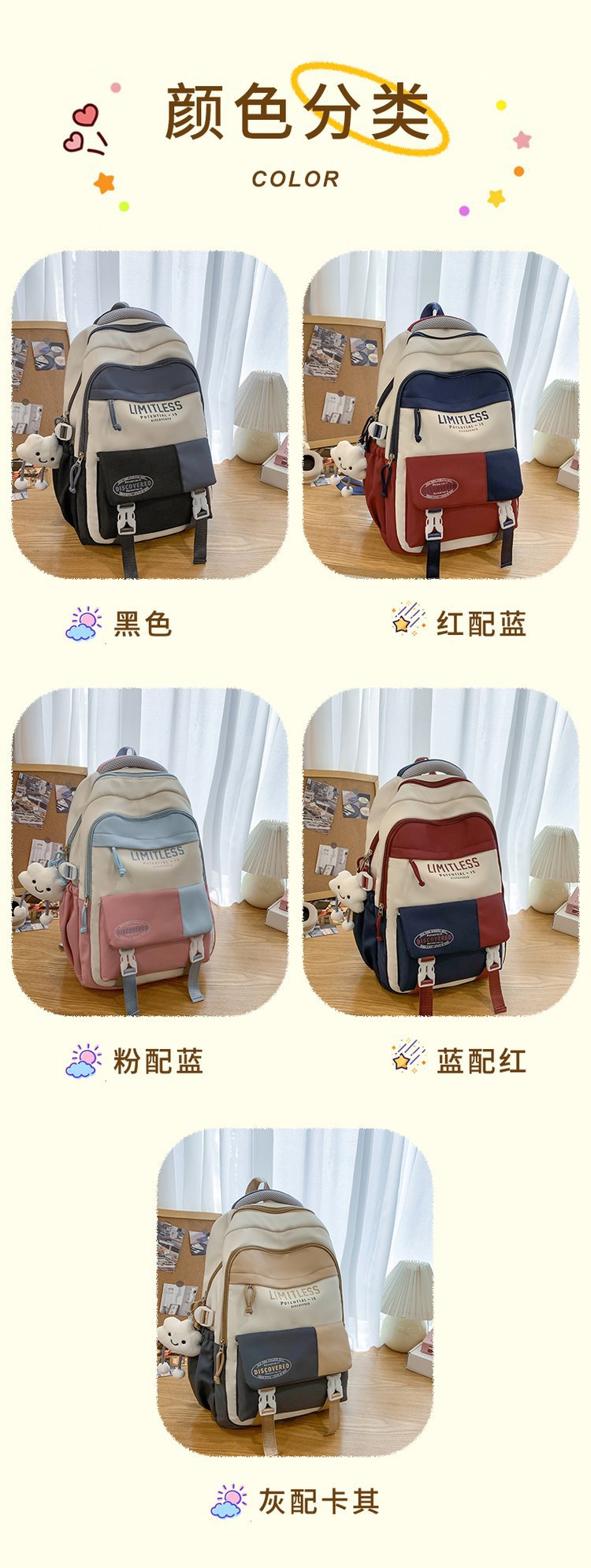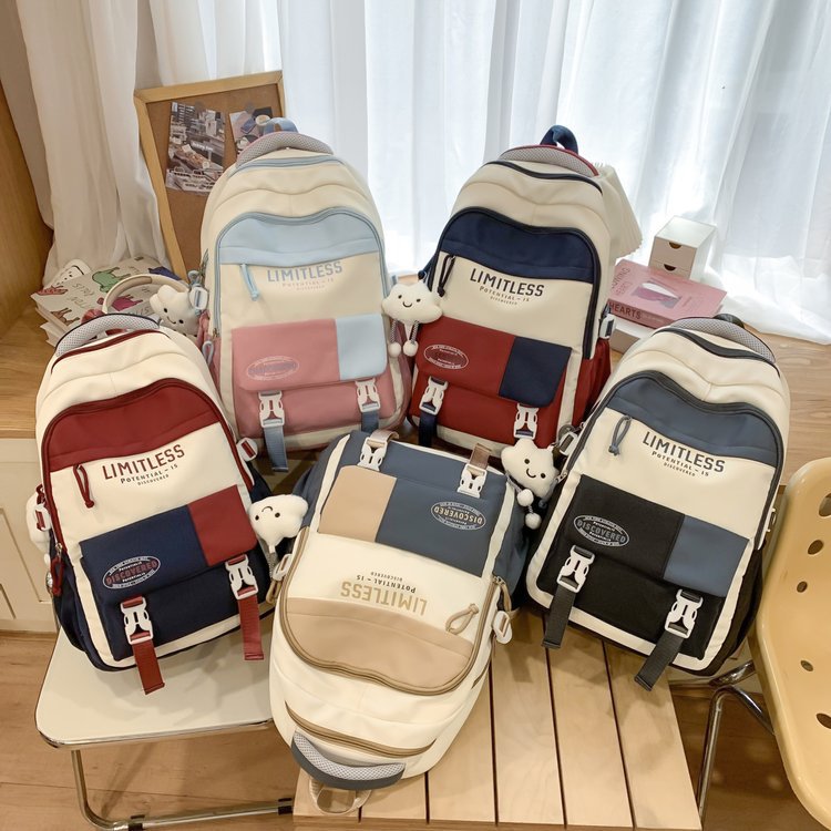 书包女ins风大学生背包高中森系学院风旅行撞色双肩包