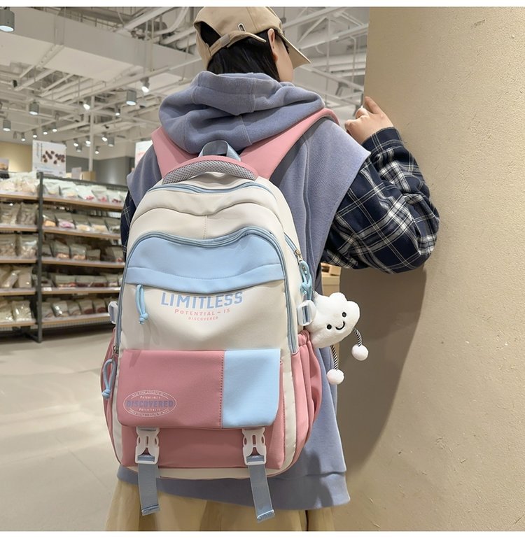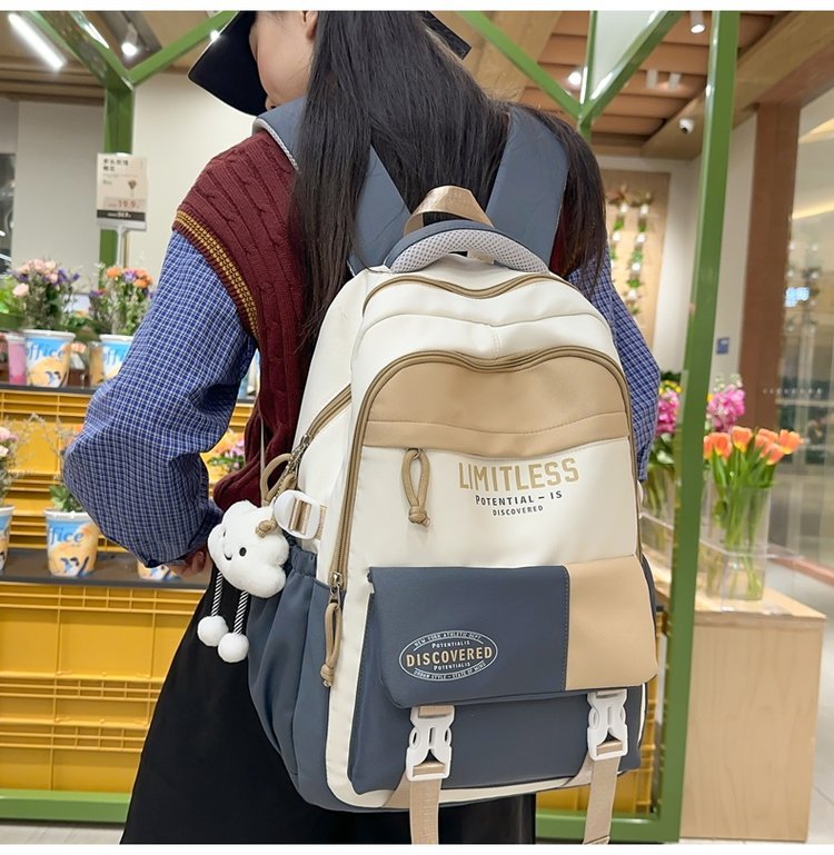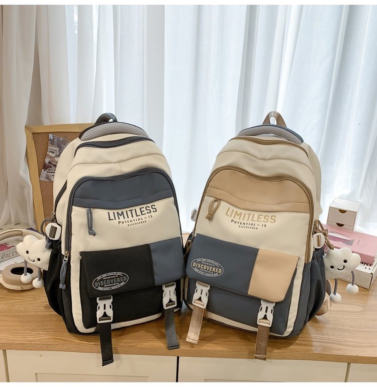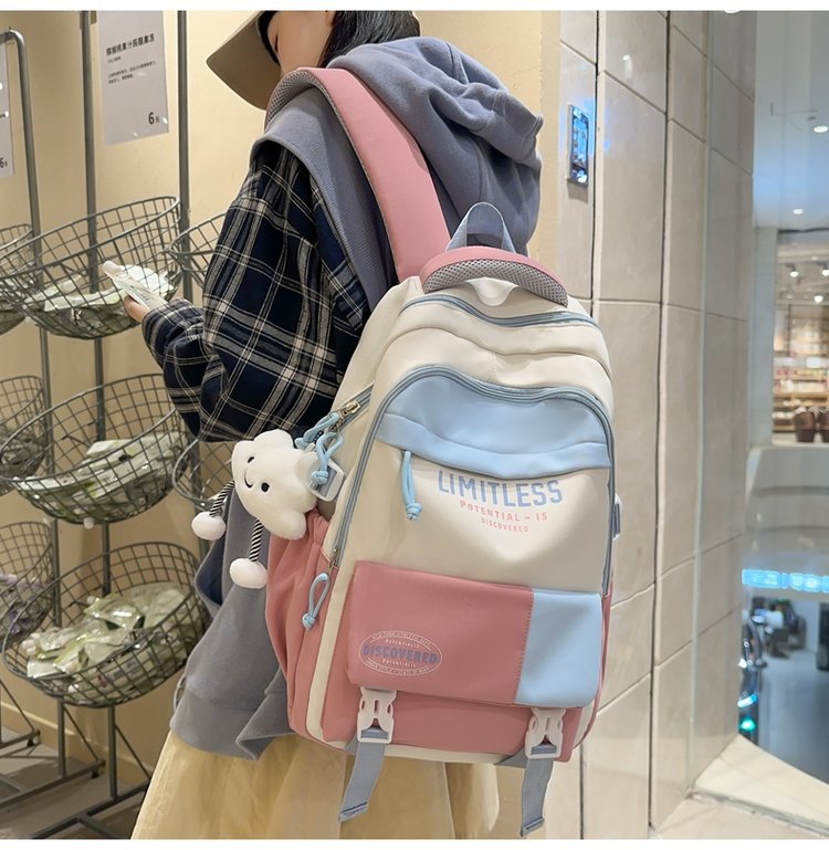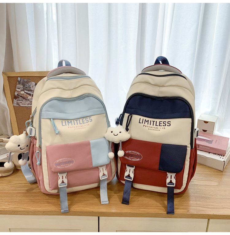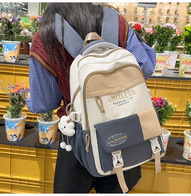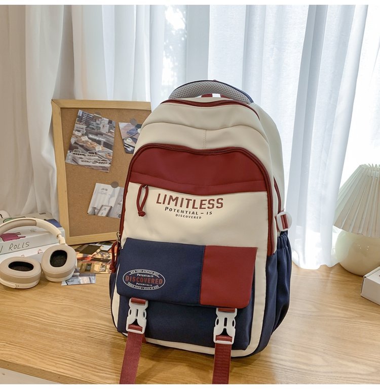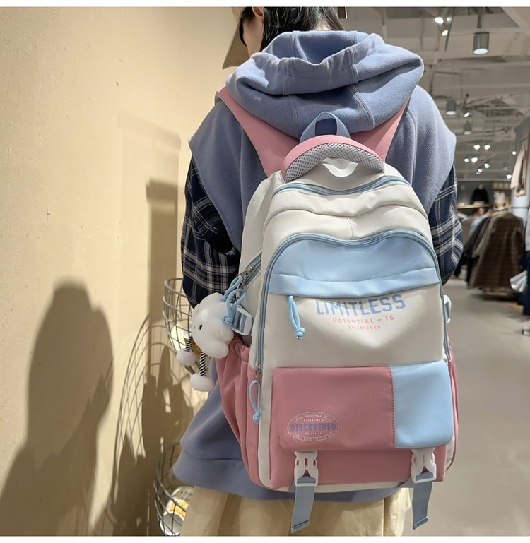 书包女ins风大学生背包高中森系学院风旅行撞色双肩包
