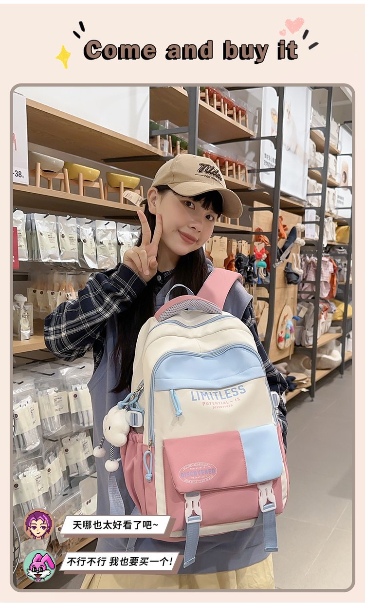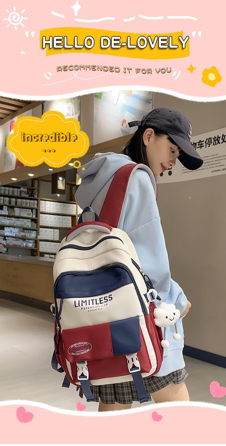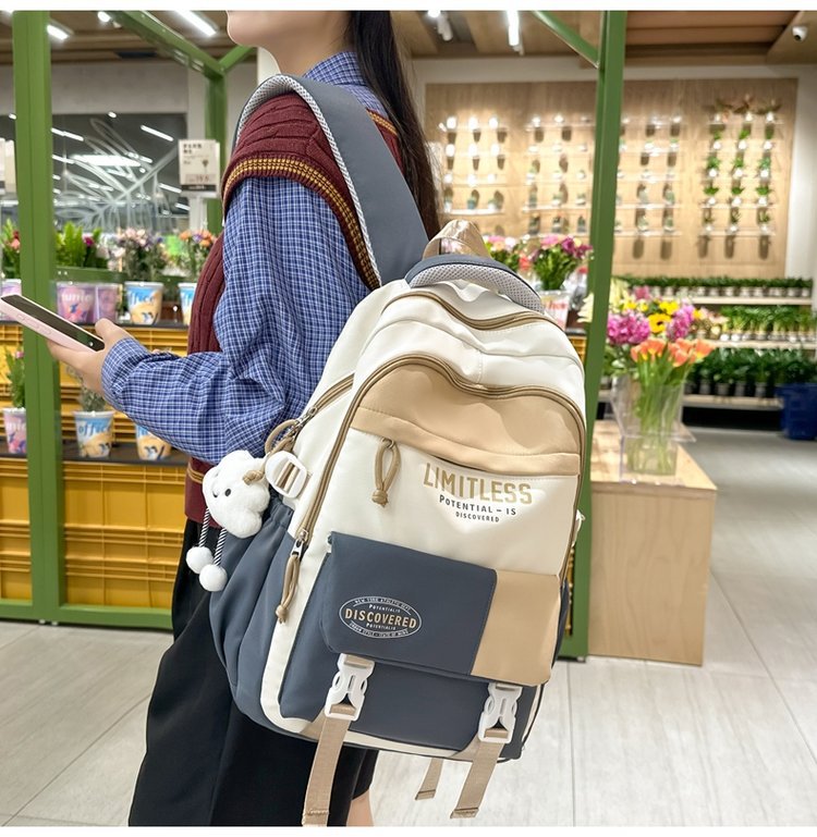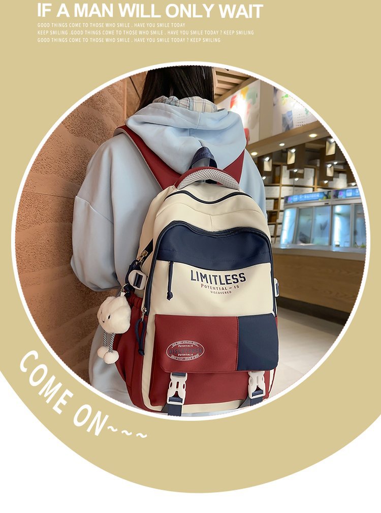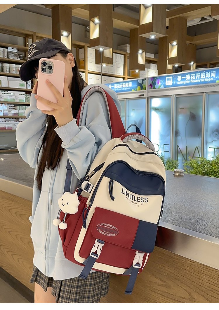 书包女ins风大学生背包高中森系学院风旅行撞色双肩包