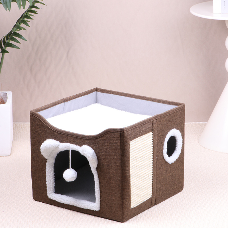 宠物四季窝猫狗双层中型折叠窝别墅宠物收纳窝猫折叠房子猫抓板窝