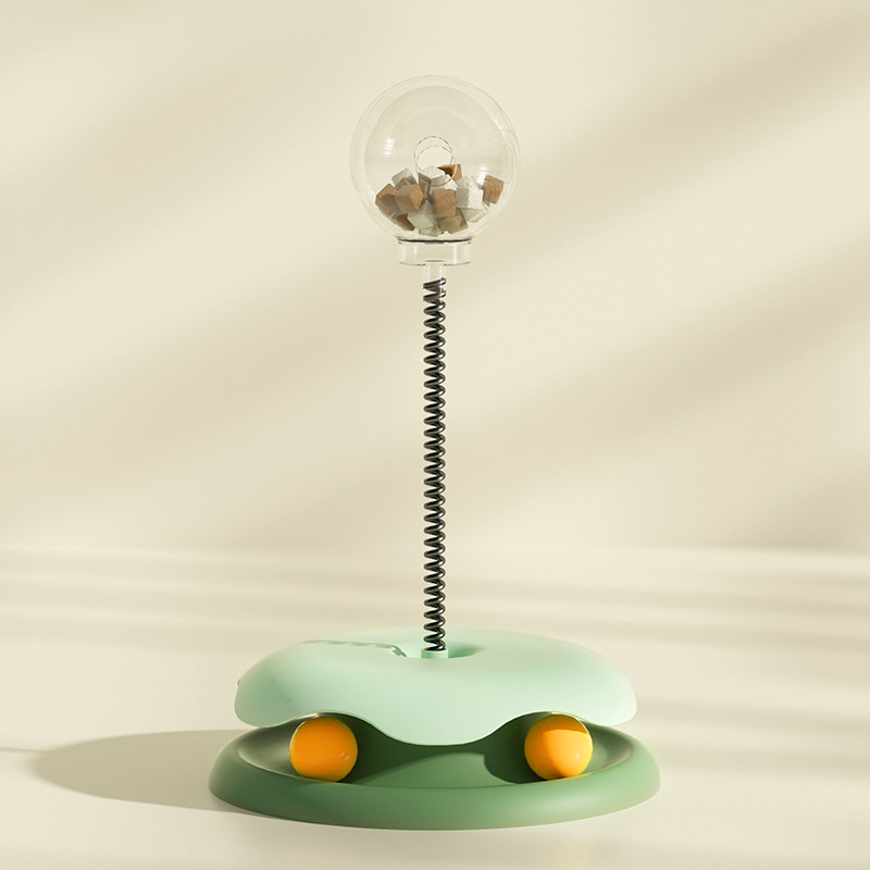 跨境逗猫玩具猫转盘带弹簧漏食球猫咪游乐盘自嗨解闷宠物漏食玩具