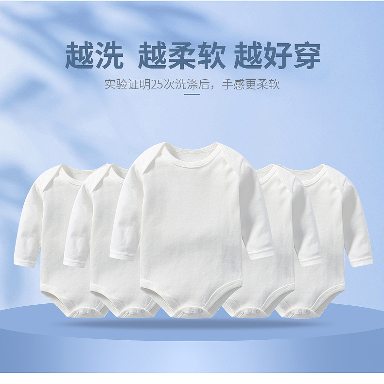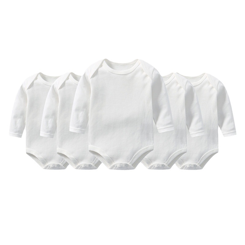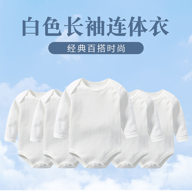 婴儿长袖纯白连体衣棉秋冬季睡衣打底衫男女宝宝包屁衣5件套批发