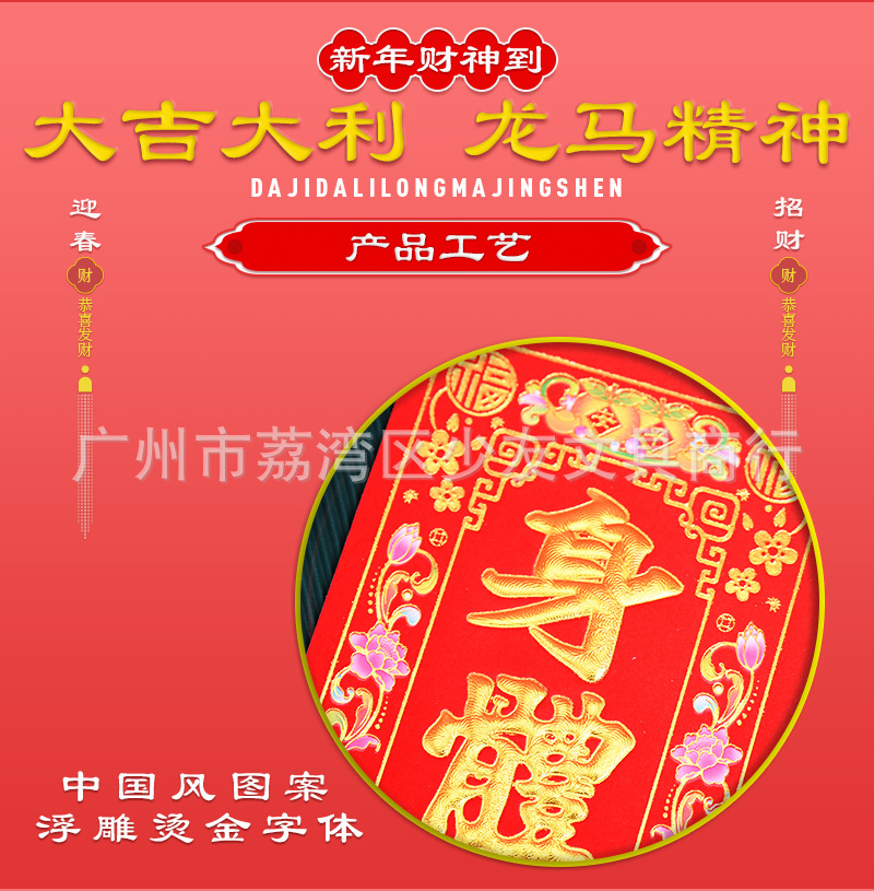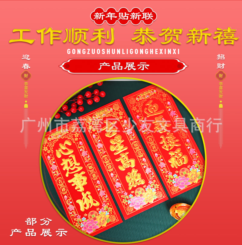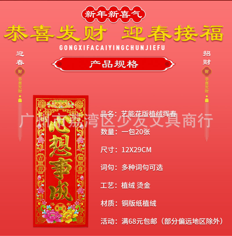 春节用品植绒烫金挥春牡丹花版竖联门贴门条春节用品批发