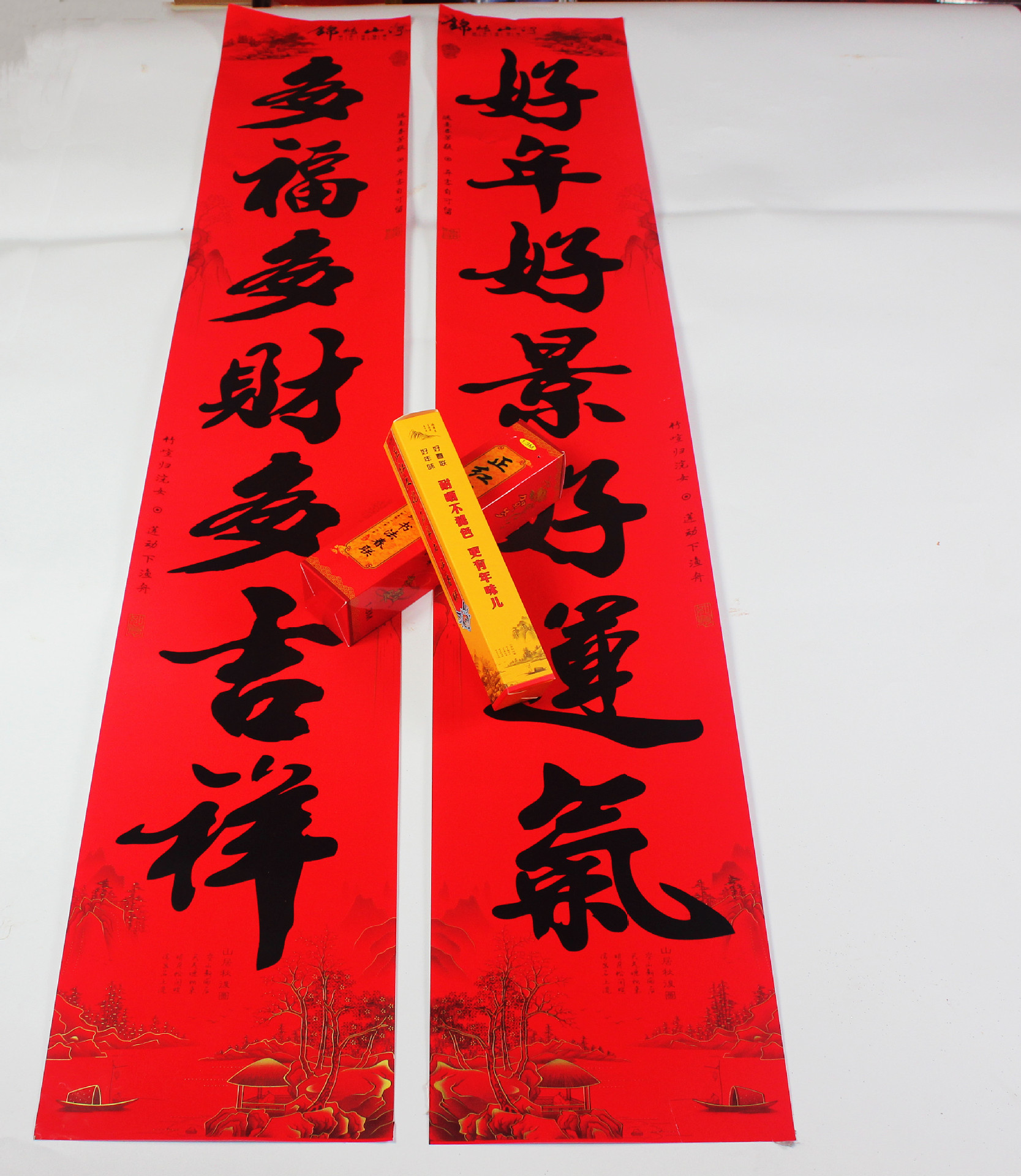 对联批发书法不褪色春联 铜版纸盒装对联11言书法对联批发