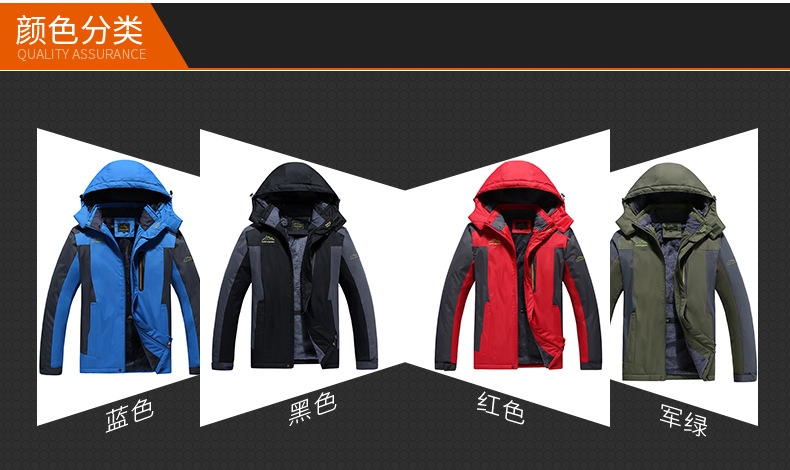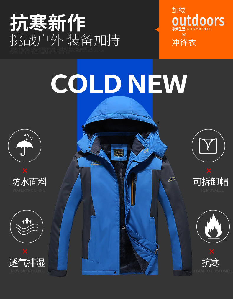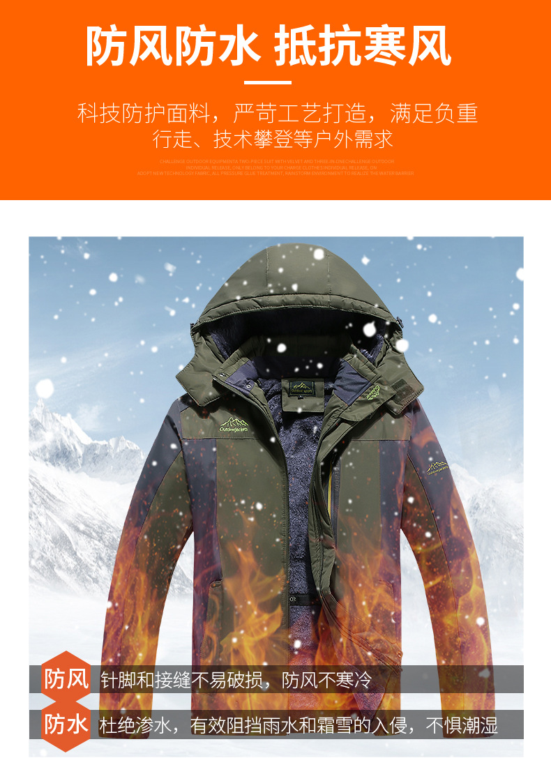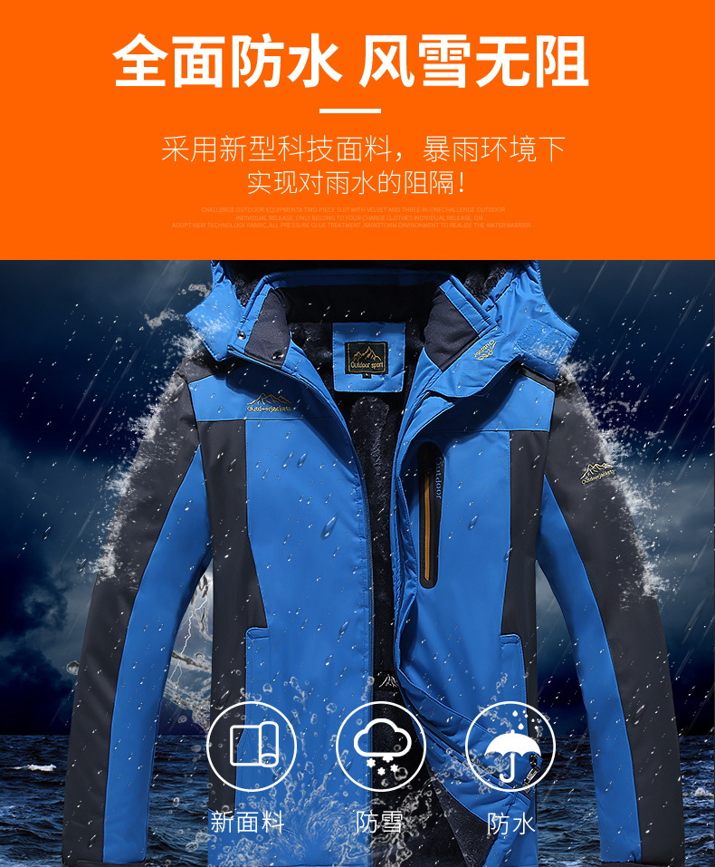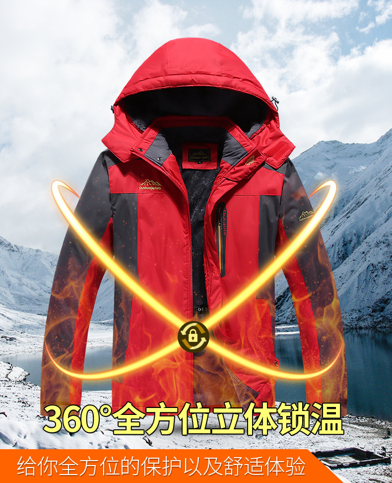 外贸亚马逊大码男式加绒加厚冲锋衣户外防寒服棉衣防水保暖登山服