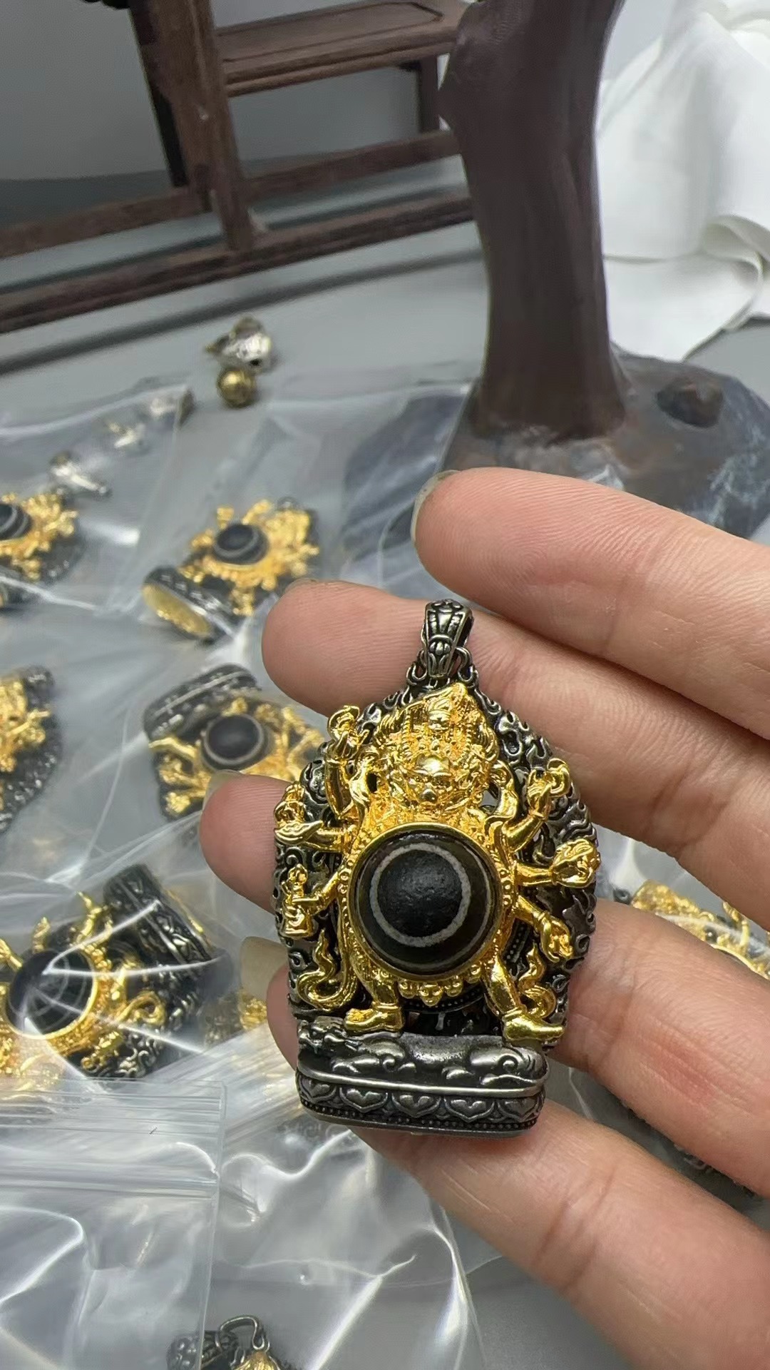 西藏天珠吊坠藏传大威德金刚一眼挂件文玩配饰法眼男女款挂坠文玩