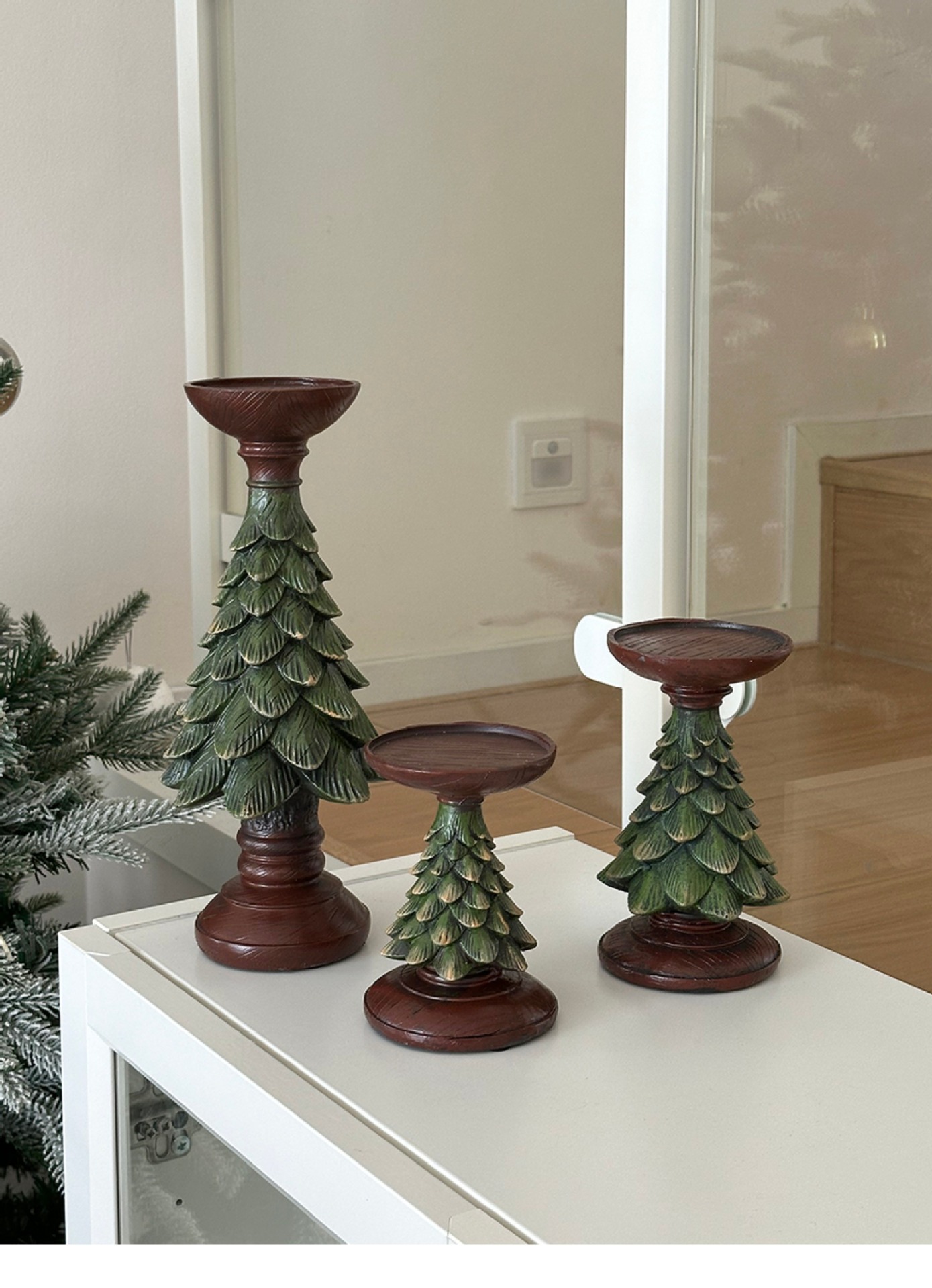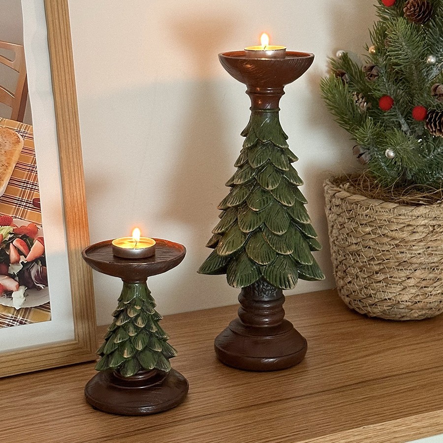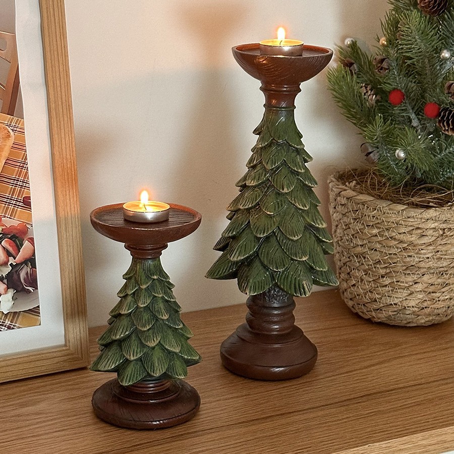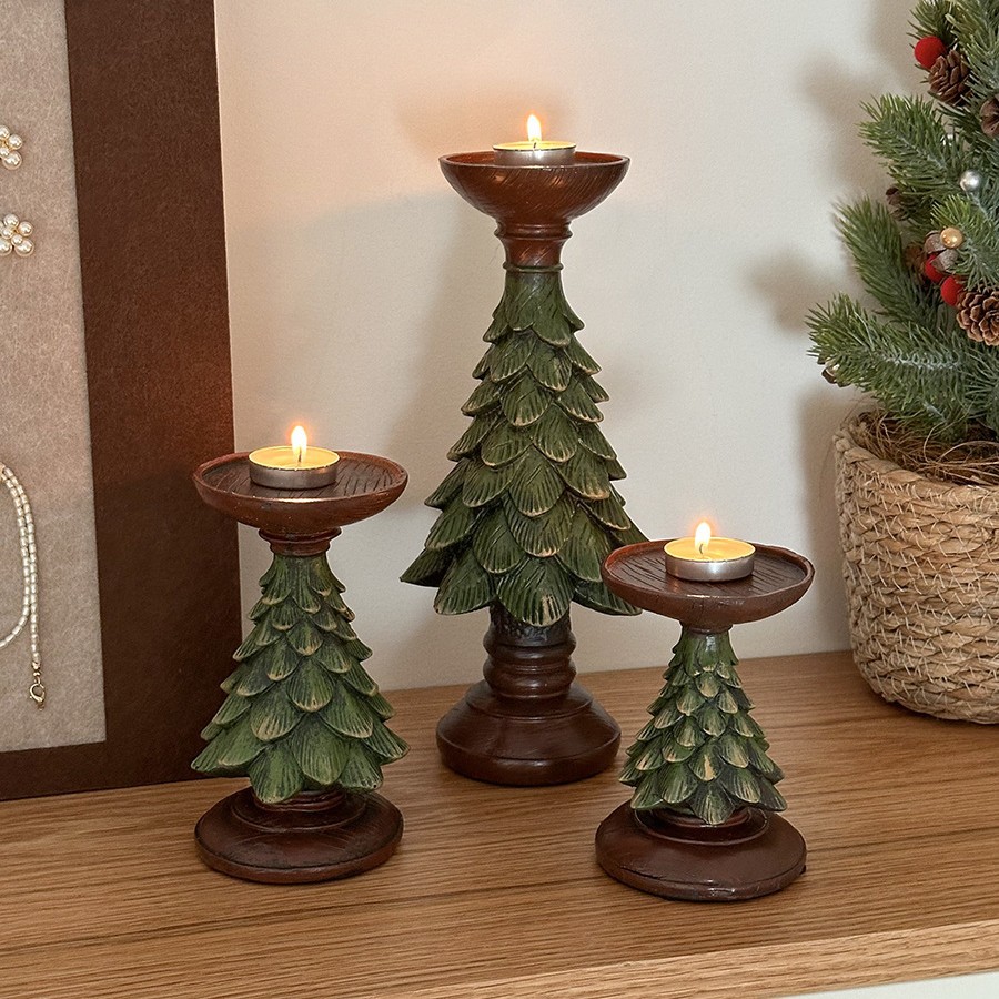 复古ins圣诞树烛台蜡烛台座树脂摆件装饰桌面餐桌玄关拍照道具
