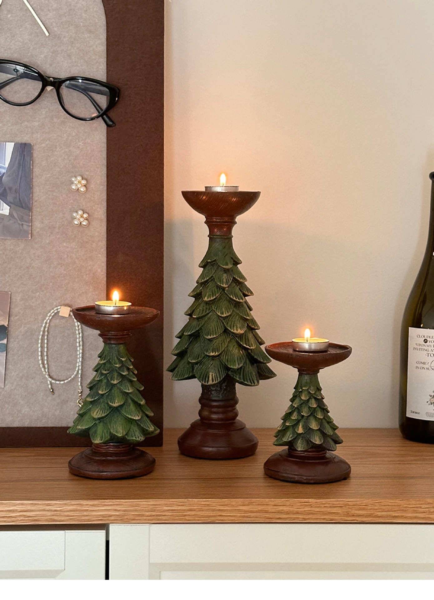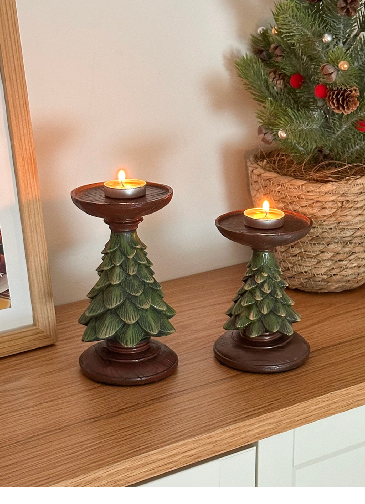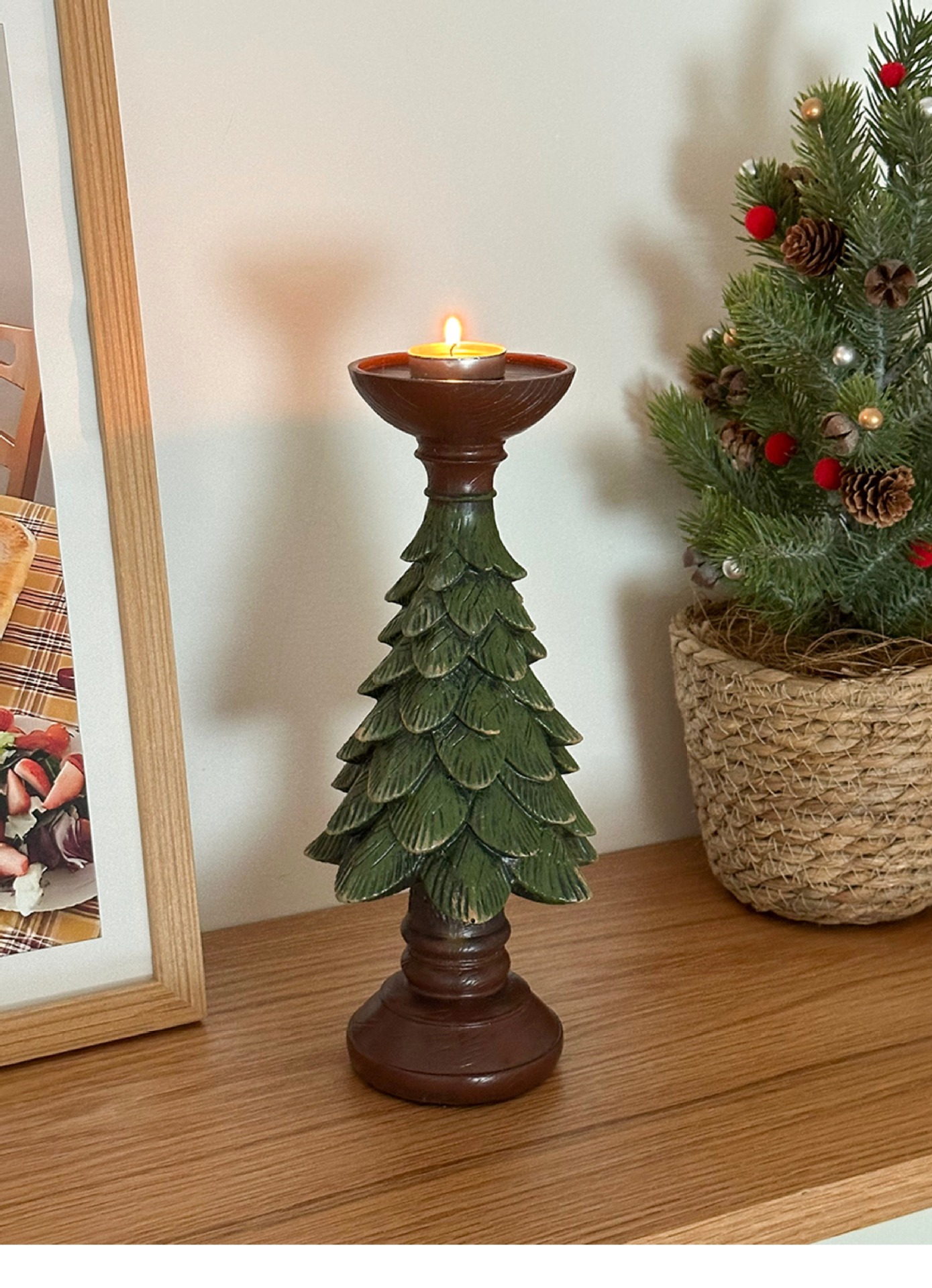 复古ins圣诞树烛台蜡烛台座树脂摆件装饰桌面餐桌玄关拍照道具