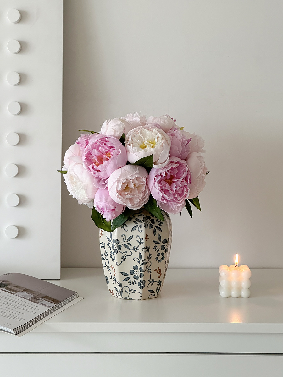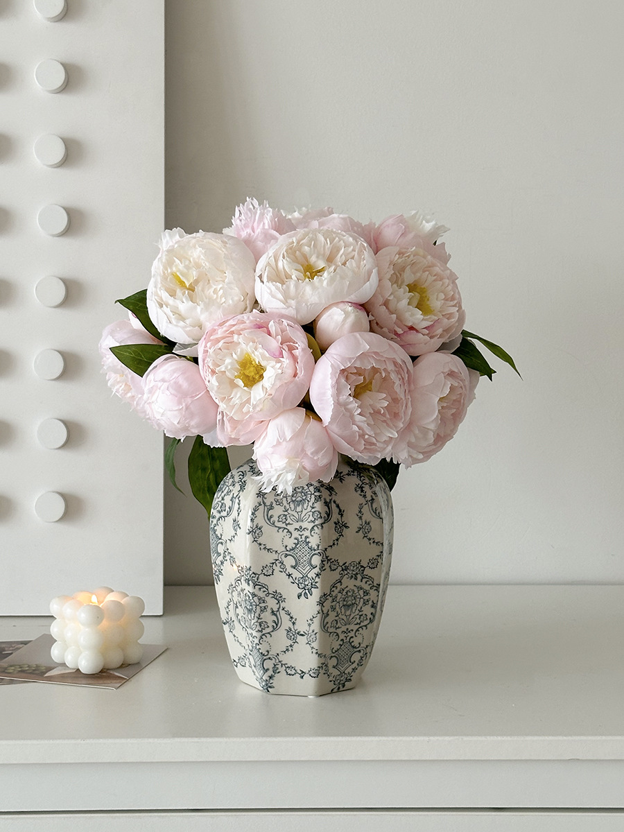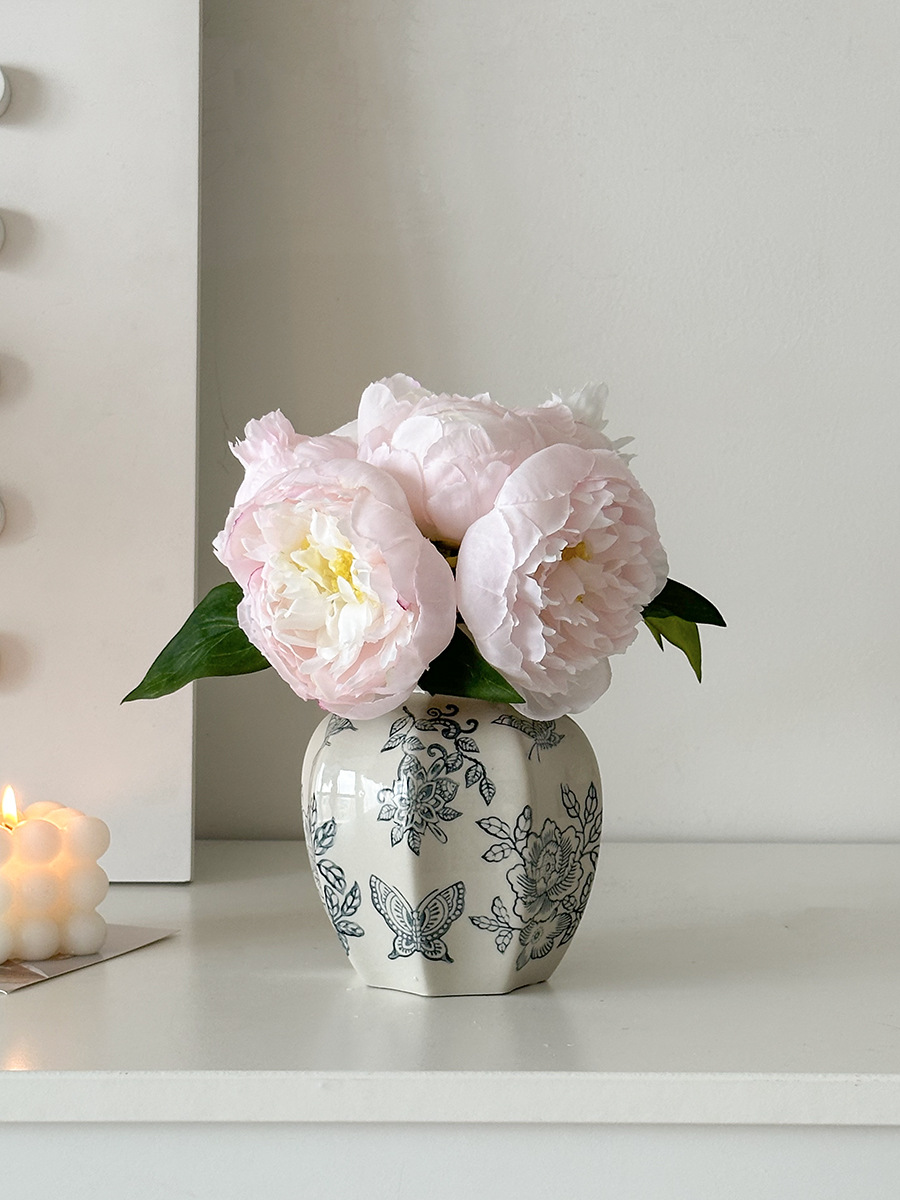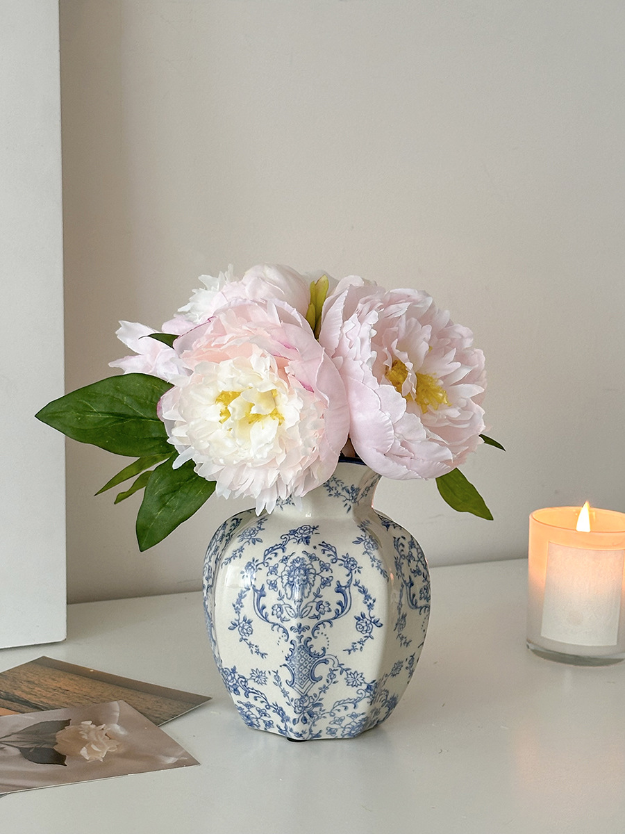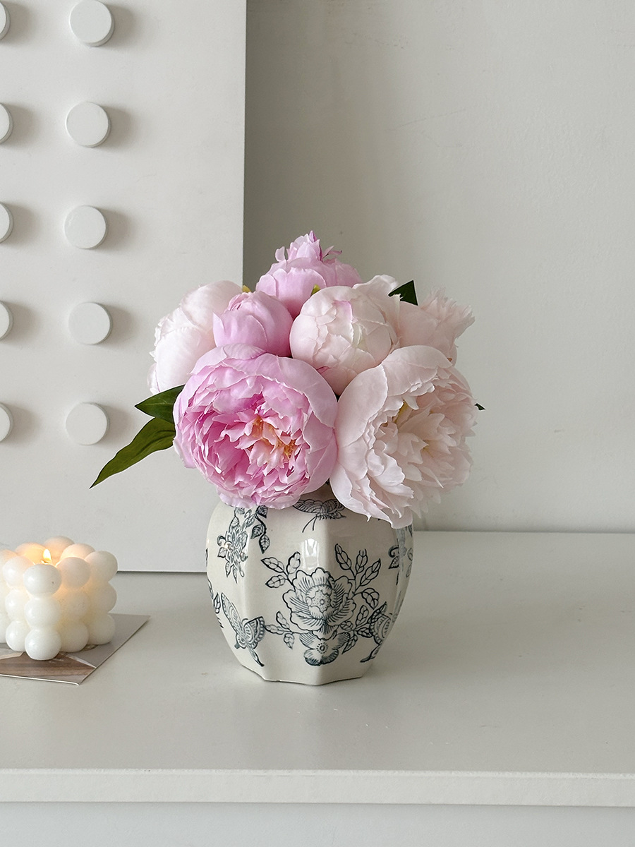 新款青花瓷陶瓷花瓶新中式摆件客厅插花玄关装饰品古风芍药插花